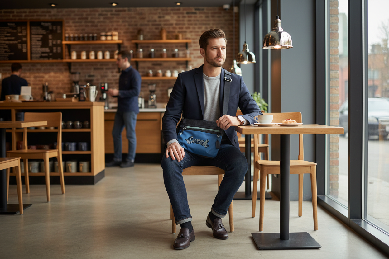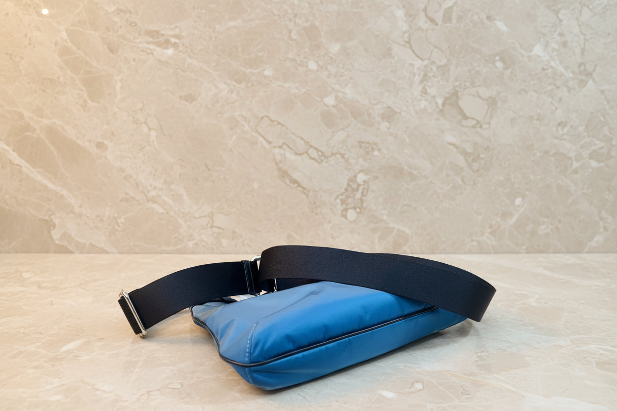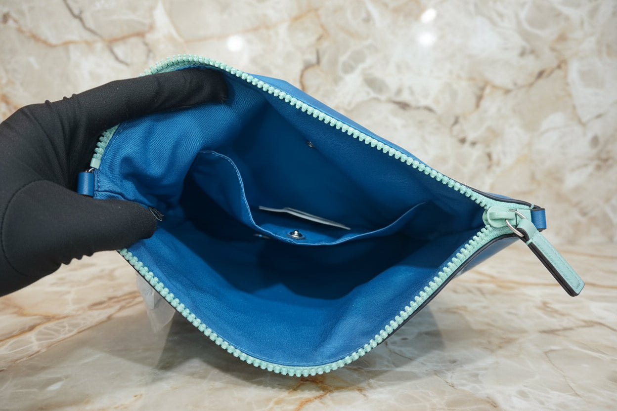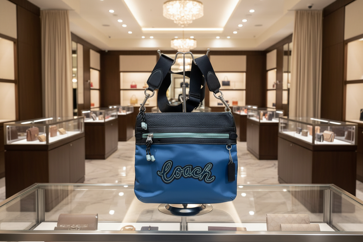 حقيبة كروسبودي من كوتش فال فايل - نايلون/جلد محبب، لون أزرق سماوي متعدد الألوان