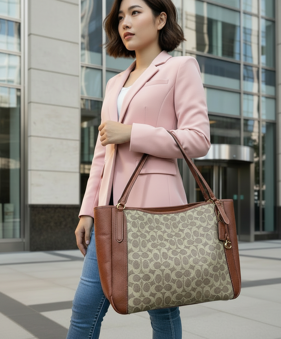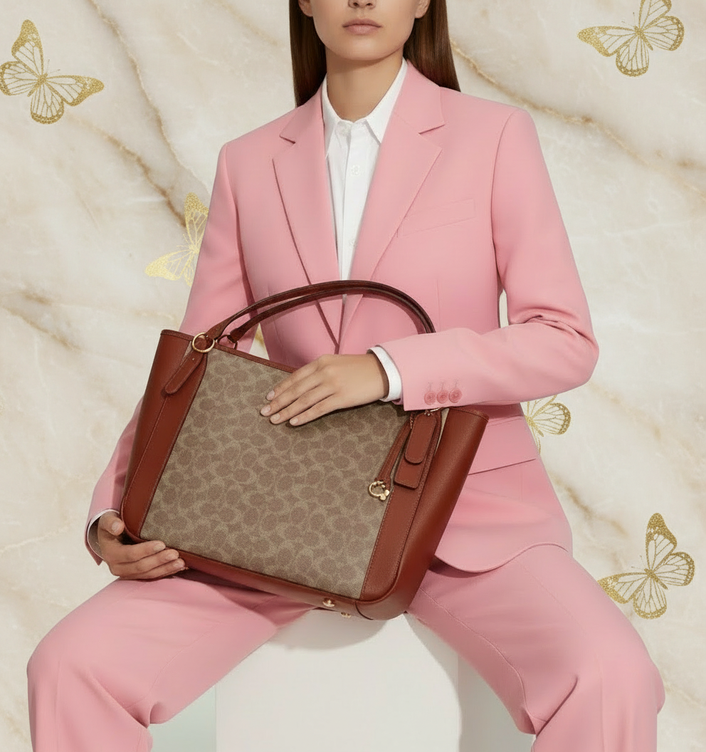 حقيبة كوتش ألانا بسحاب من قماش مميز - لون بني صدئ