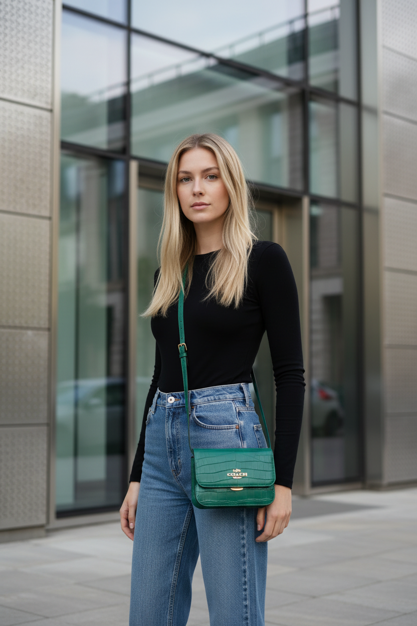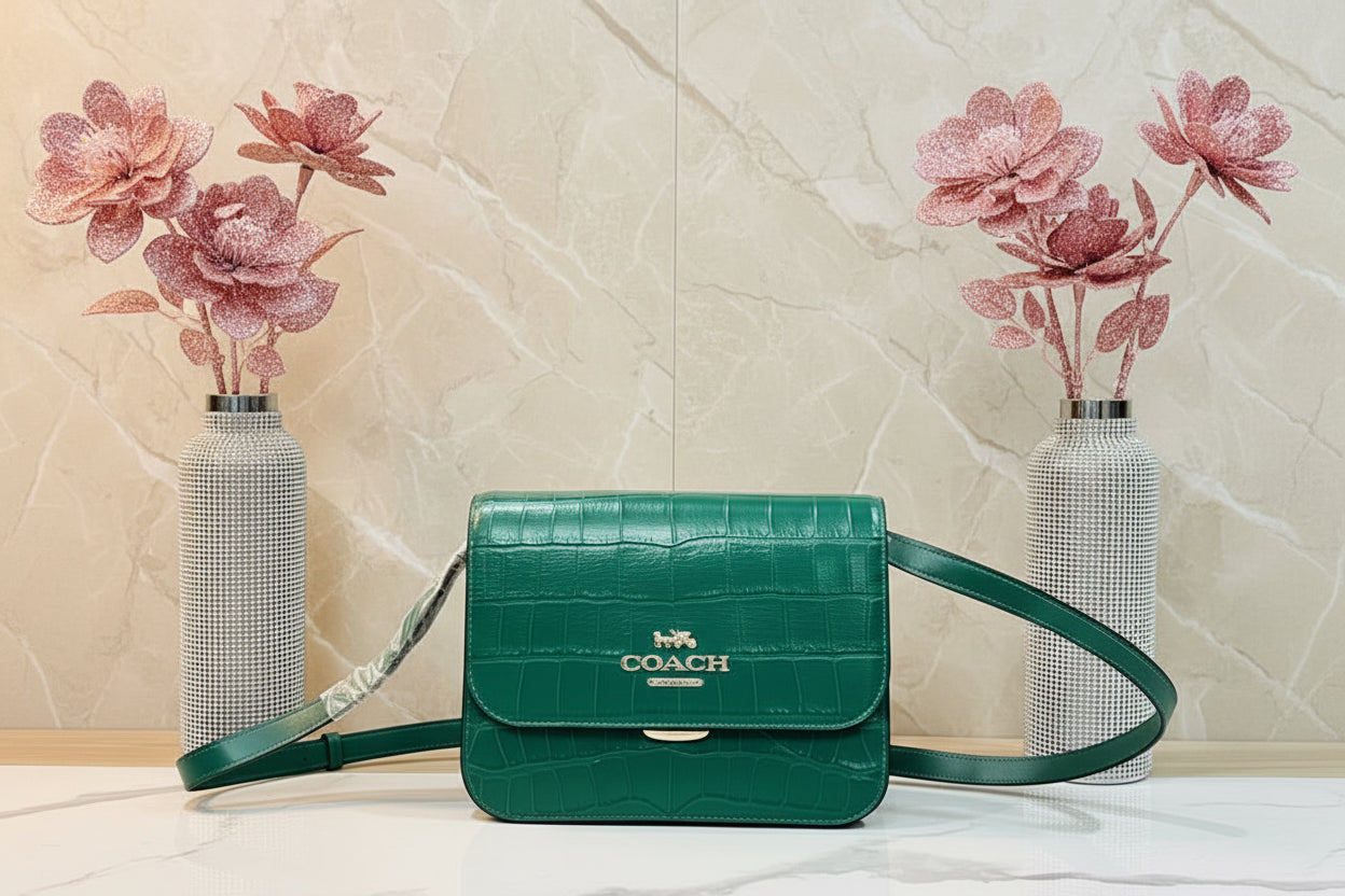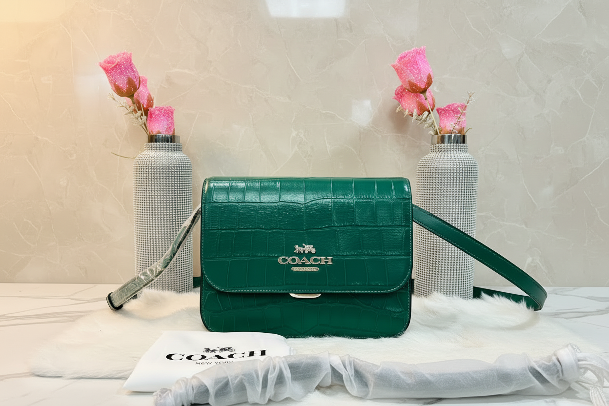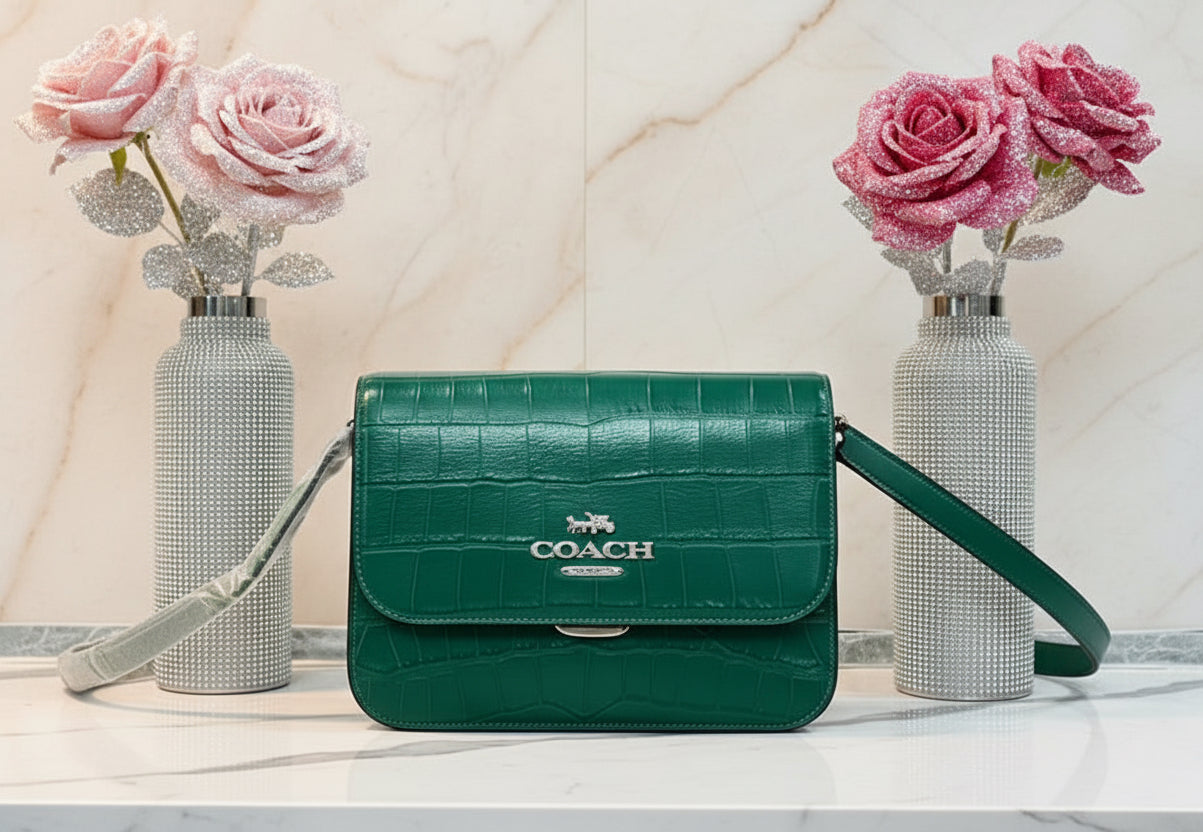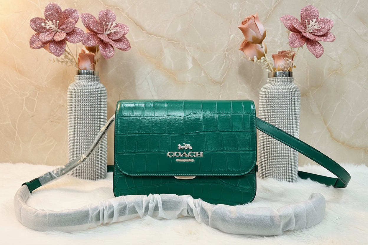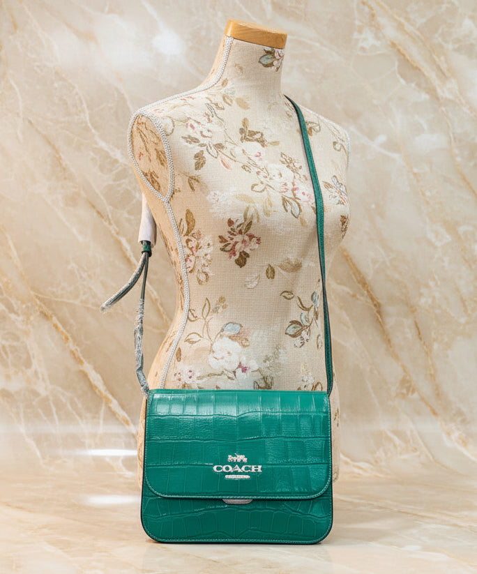 حقيبة كروسبودي كوتش برين ذات غطاء قلاب - لون اليشم