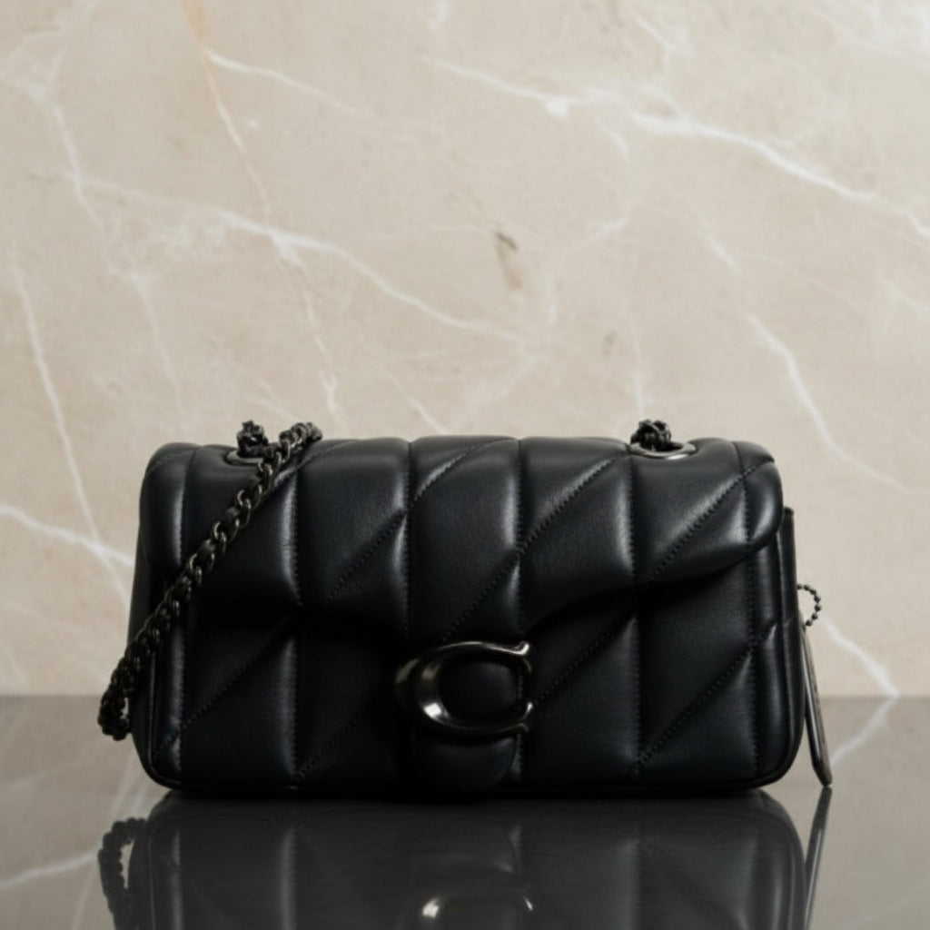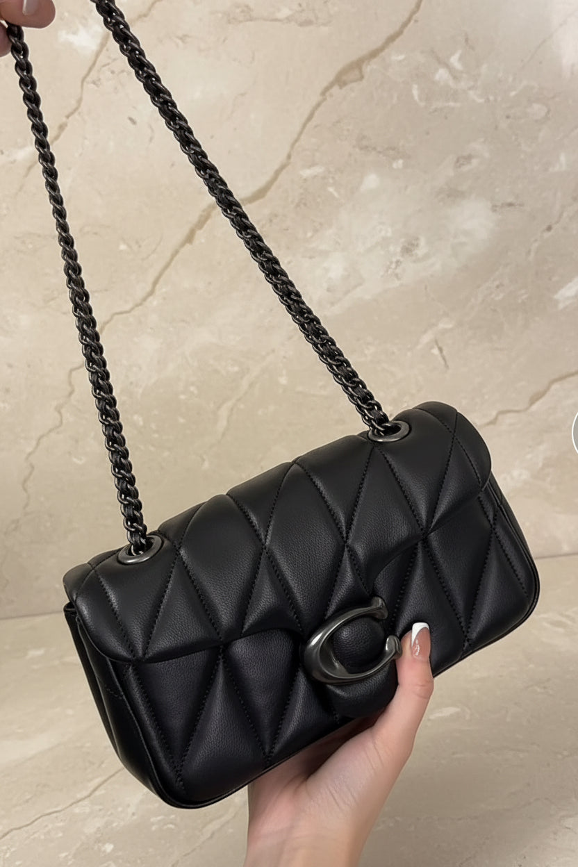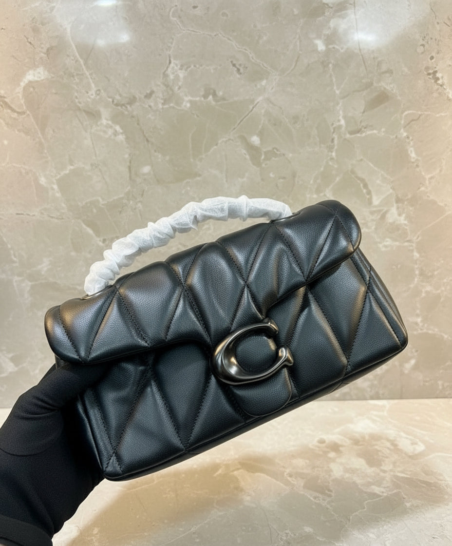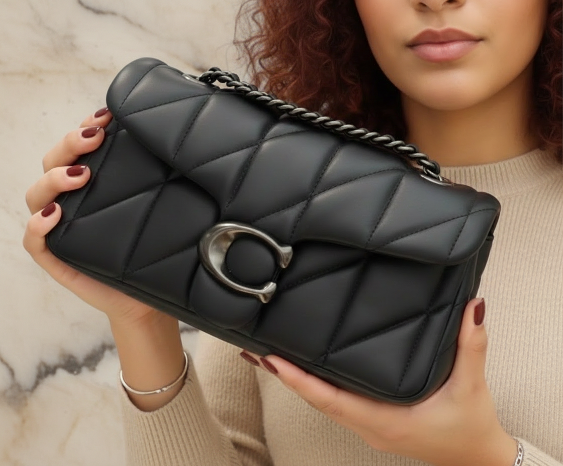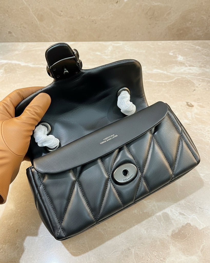 حقيبة كوتش مبطنة بنقشة تابي 20 - جلد نابا - أسود