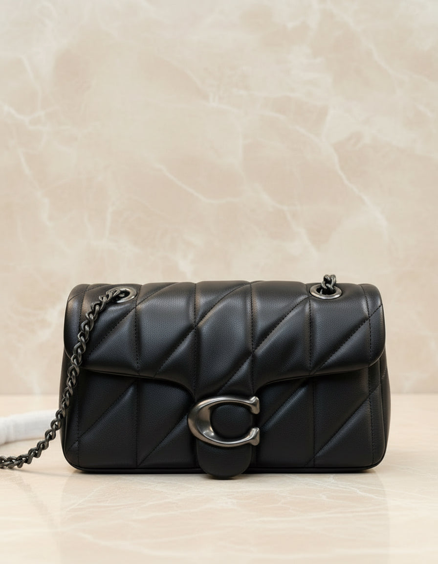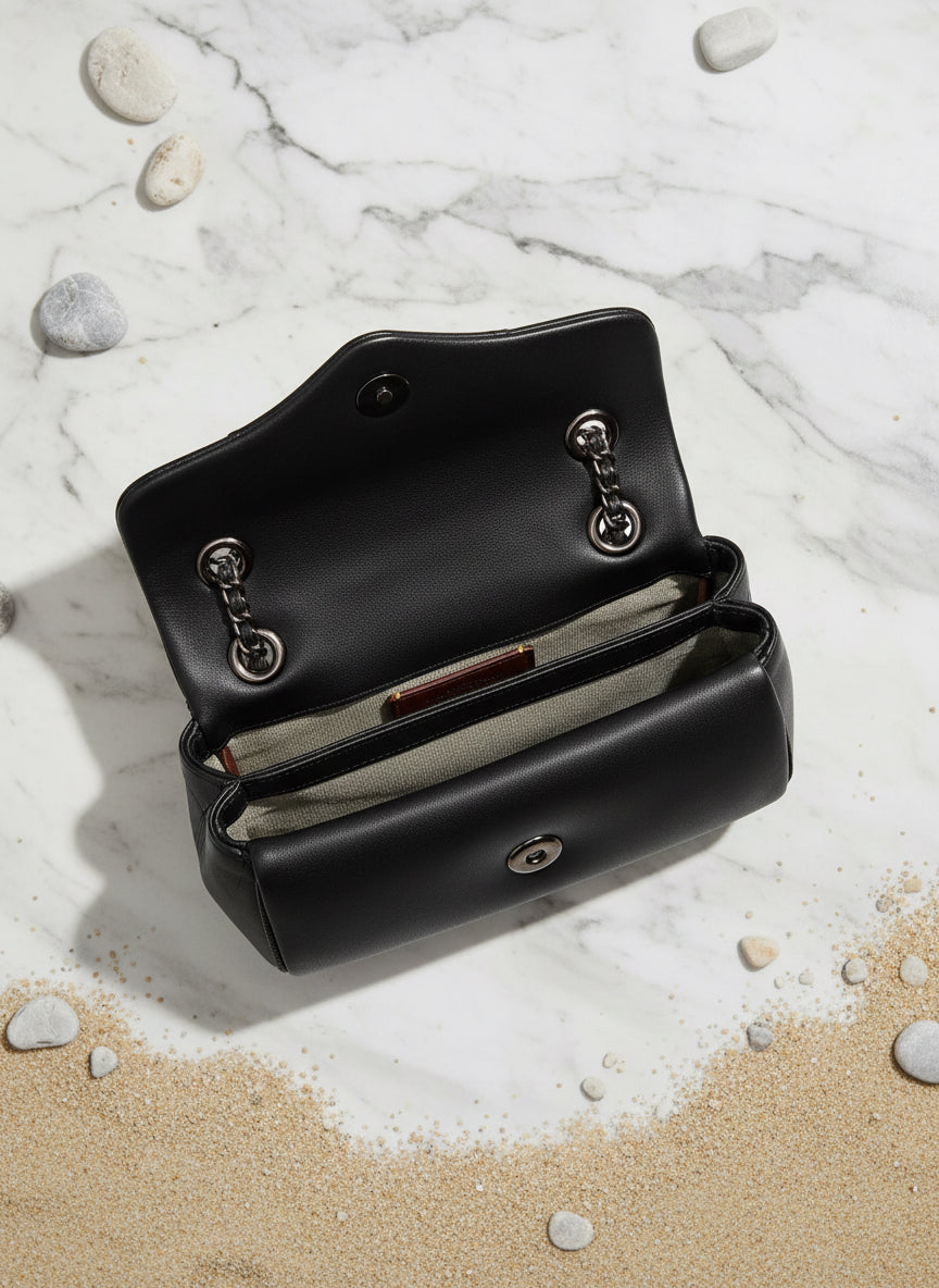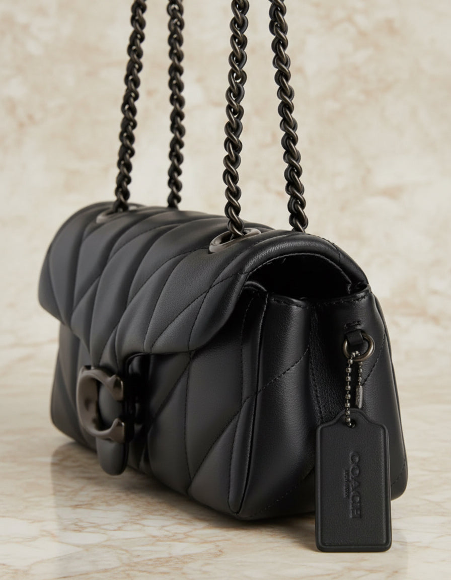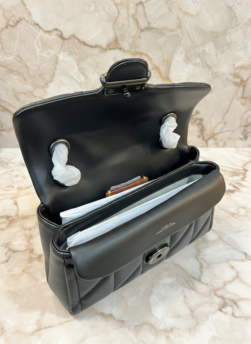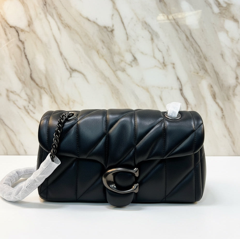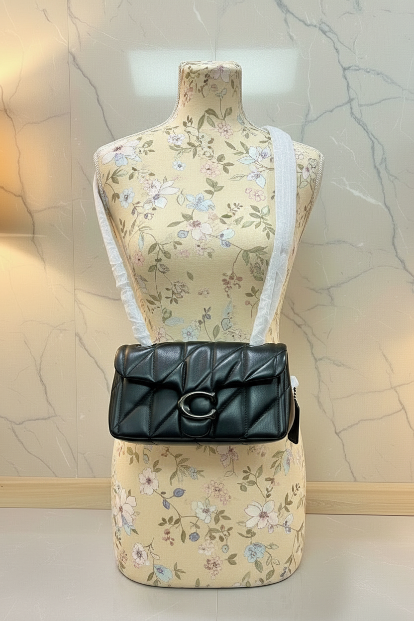 حقيبة كوتش مبطنة بنقشة تابي 20 - جلد نابا - أسود