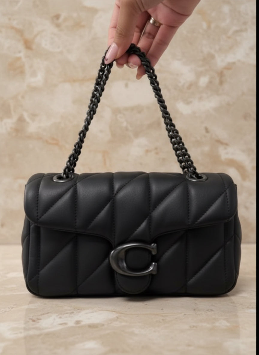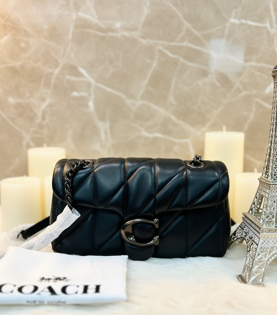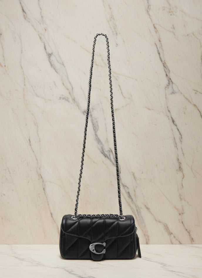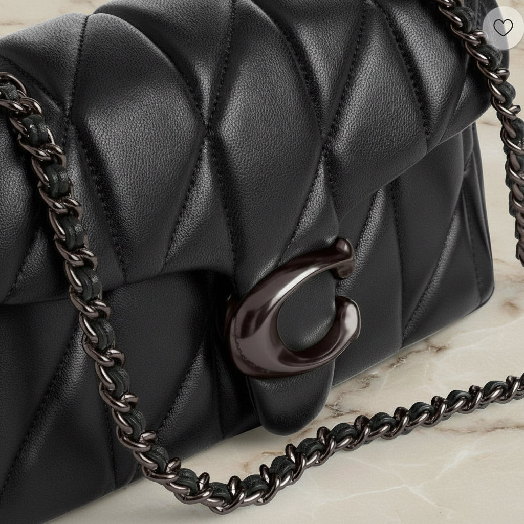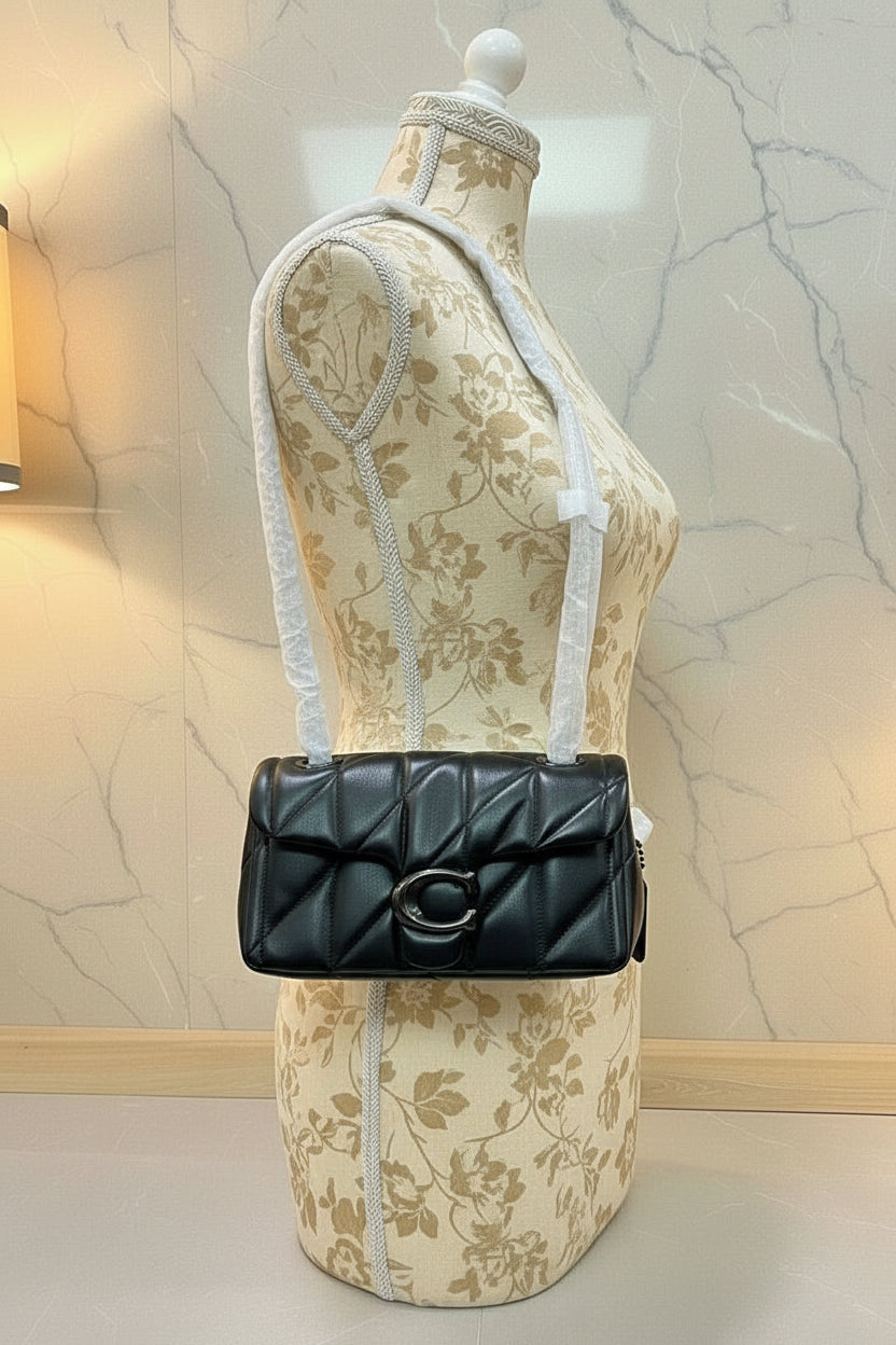 حقيبة كوتش مبطنة بنقشة تابي 20 - جلد نابا - أسود