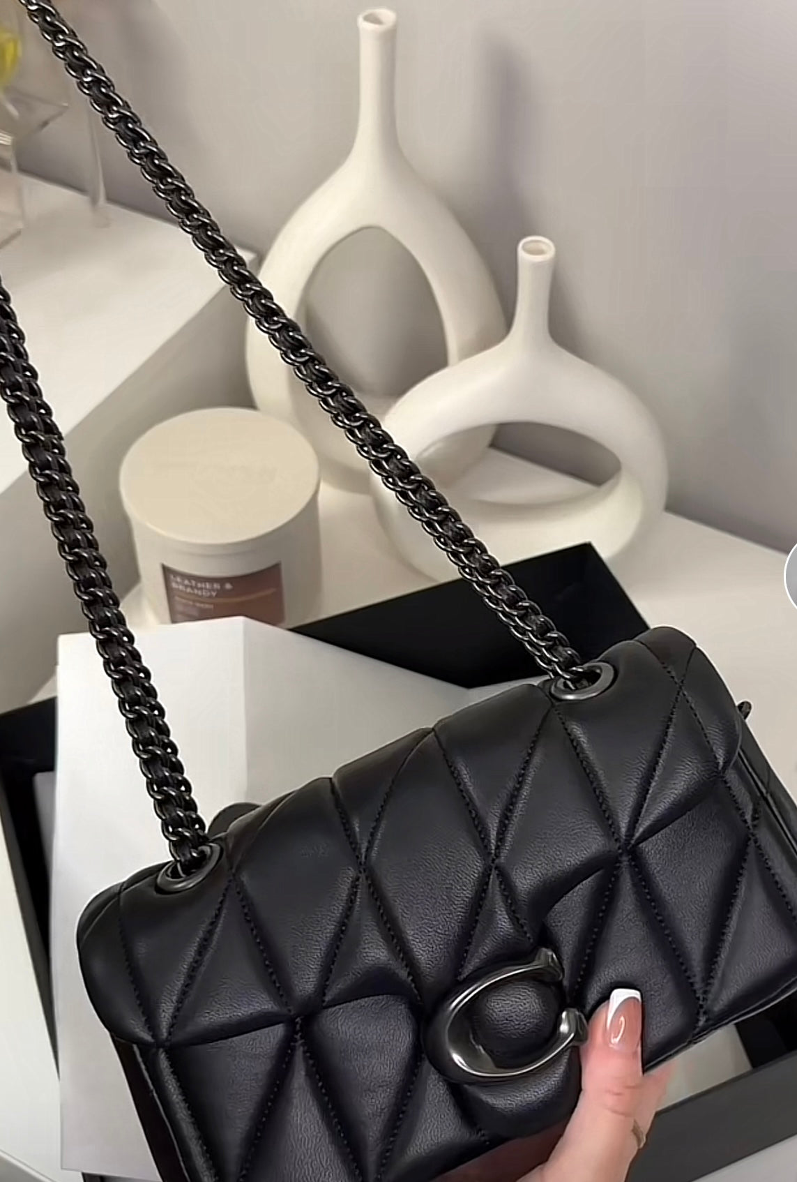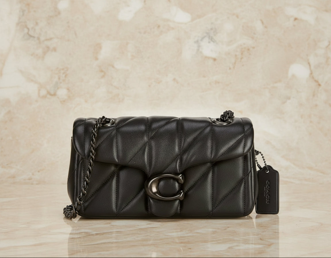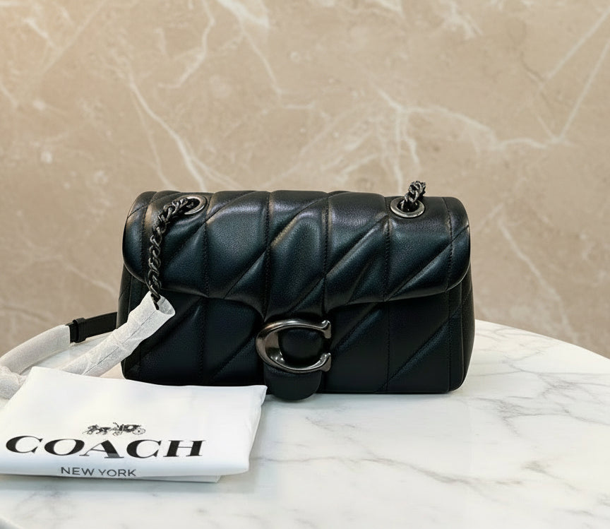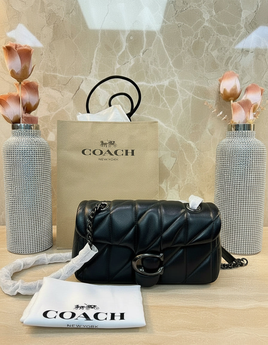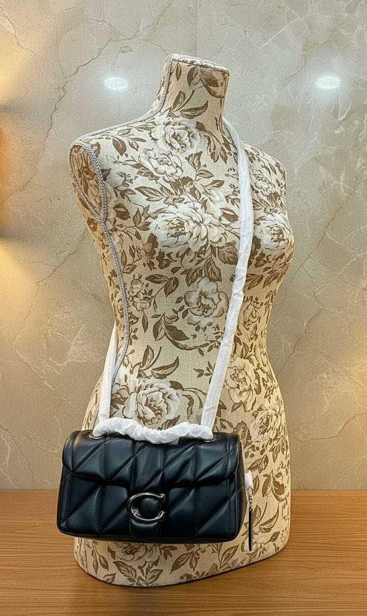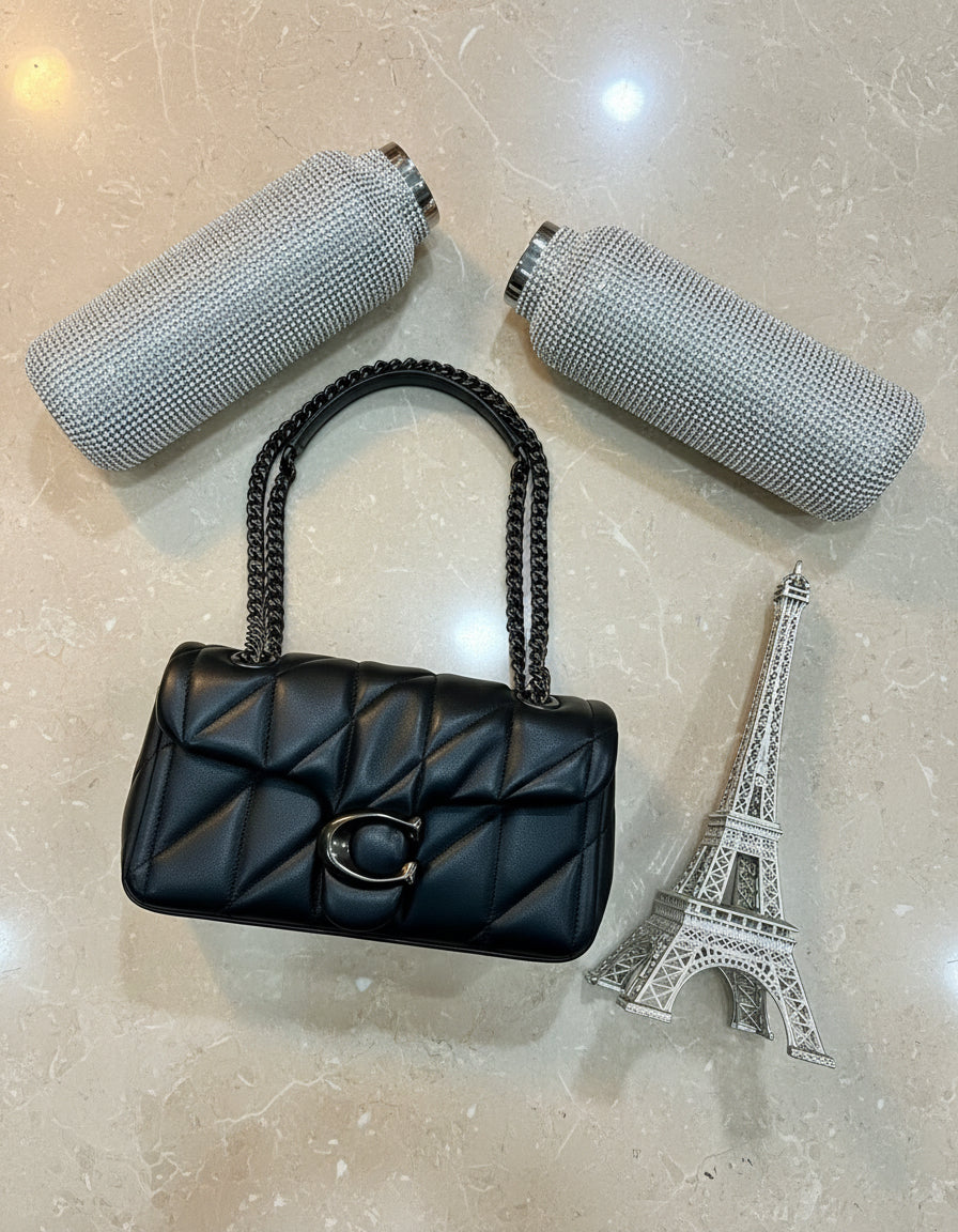 حقيبة كوتش مبطنة بنقشة تابي 20 - جلد نابا - أسود