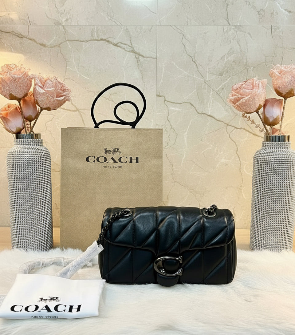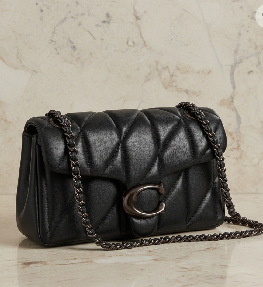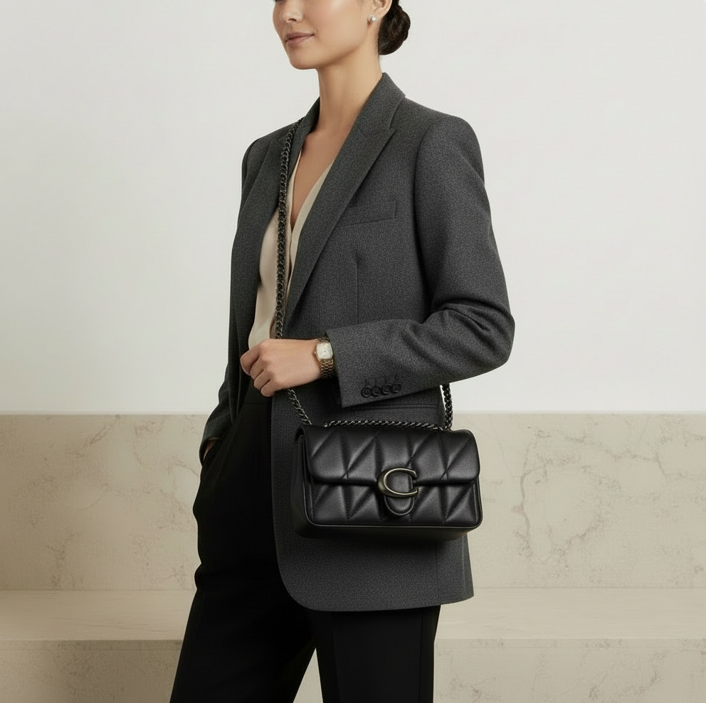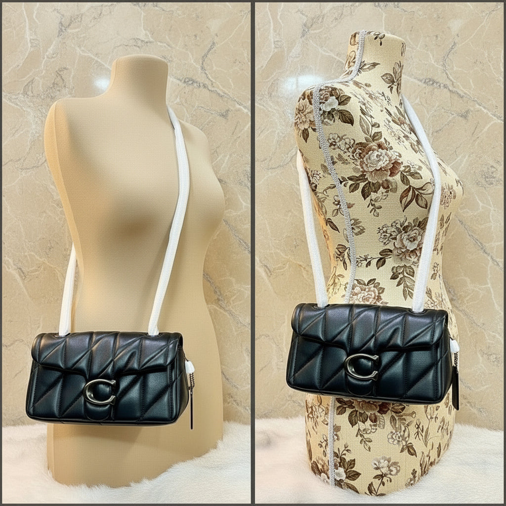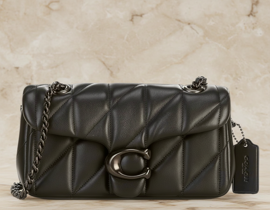 حقيبة كوتش مبطنة بنقشة تابي 20 - جلد نابا - أسود