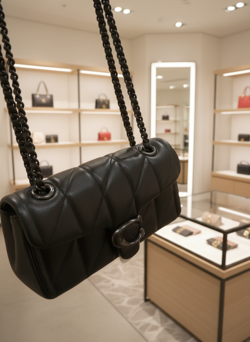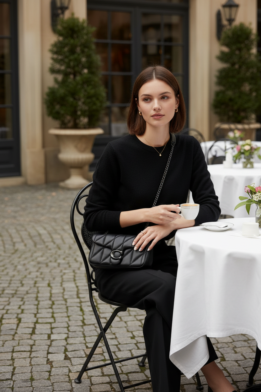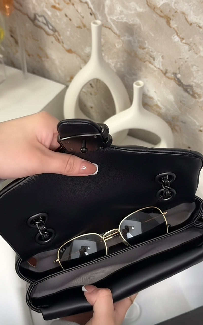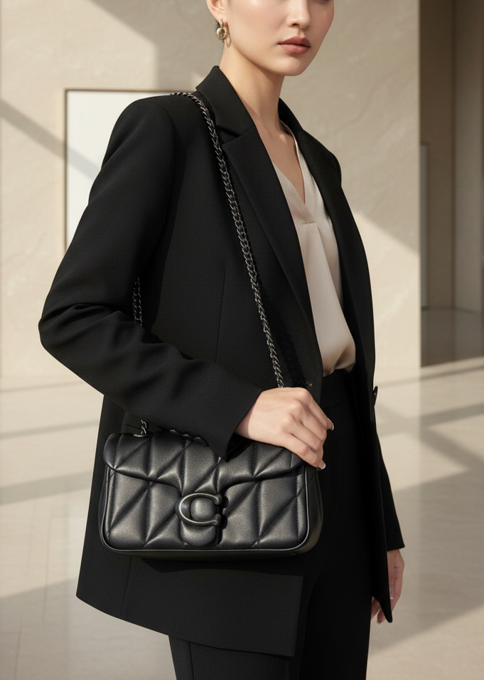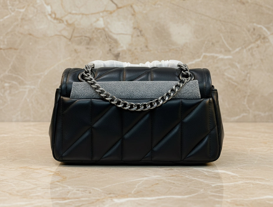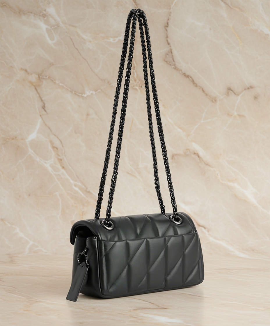 حقيبة كوتش مبطنة بنقشة تابي 20 - جلد نابا - أسود