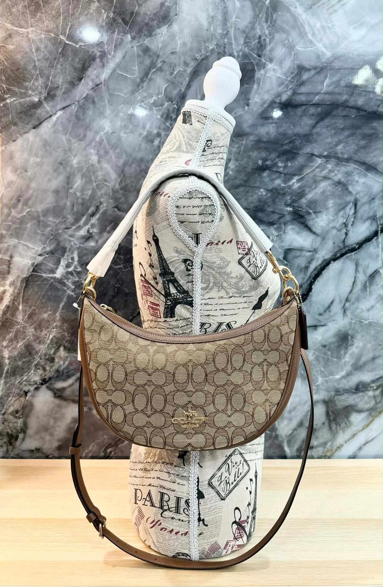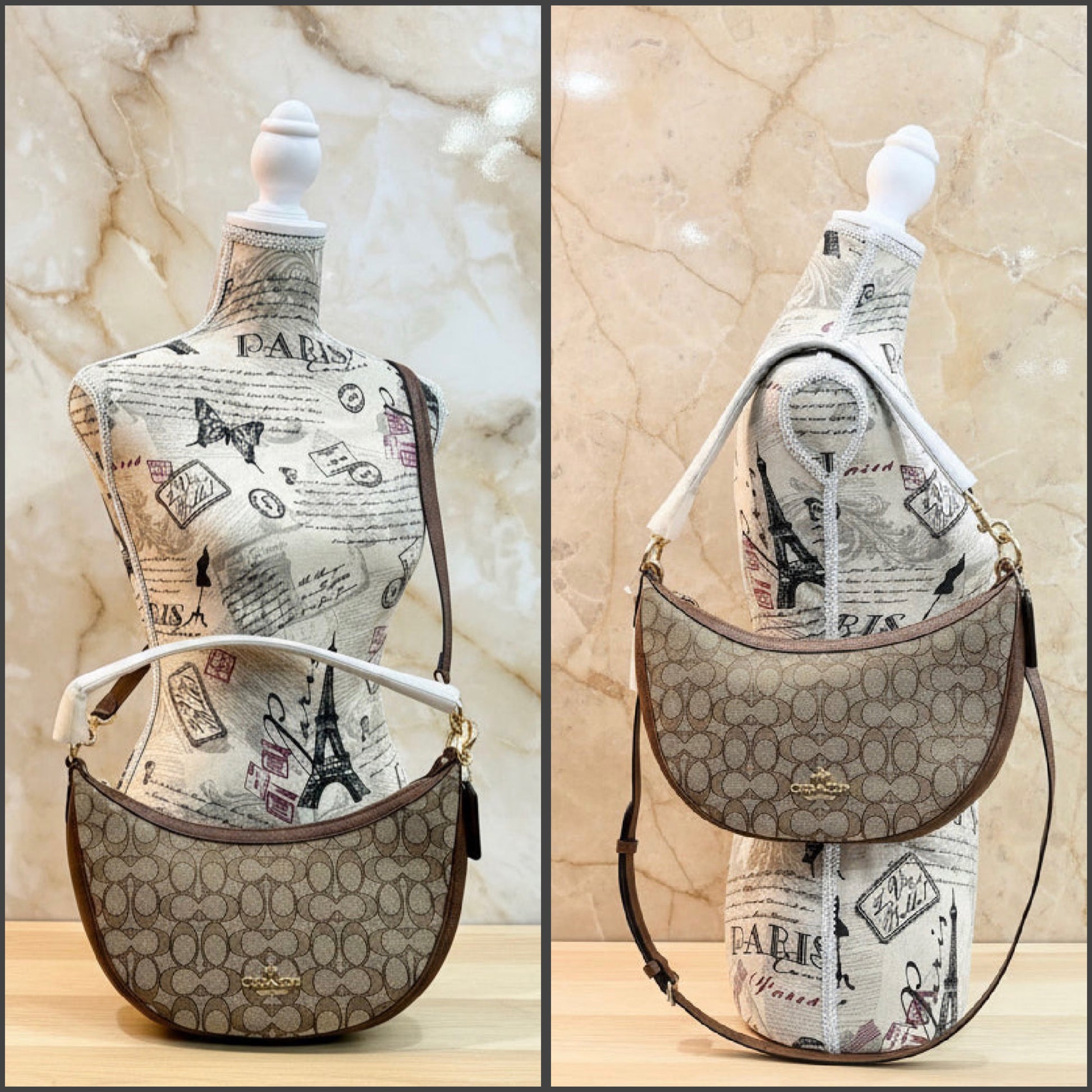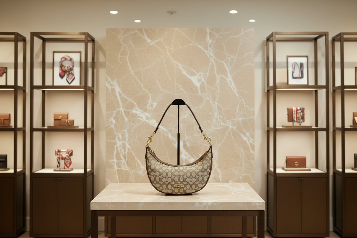 حقيبة كتف/حقيبة كروس بودي من كوتش آريا بنقشة جاكار مميزة باللون الكاكي
