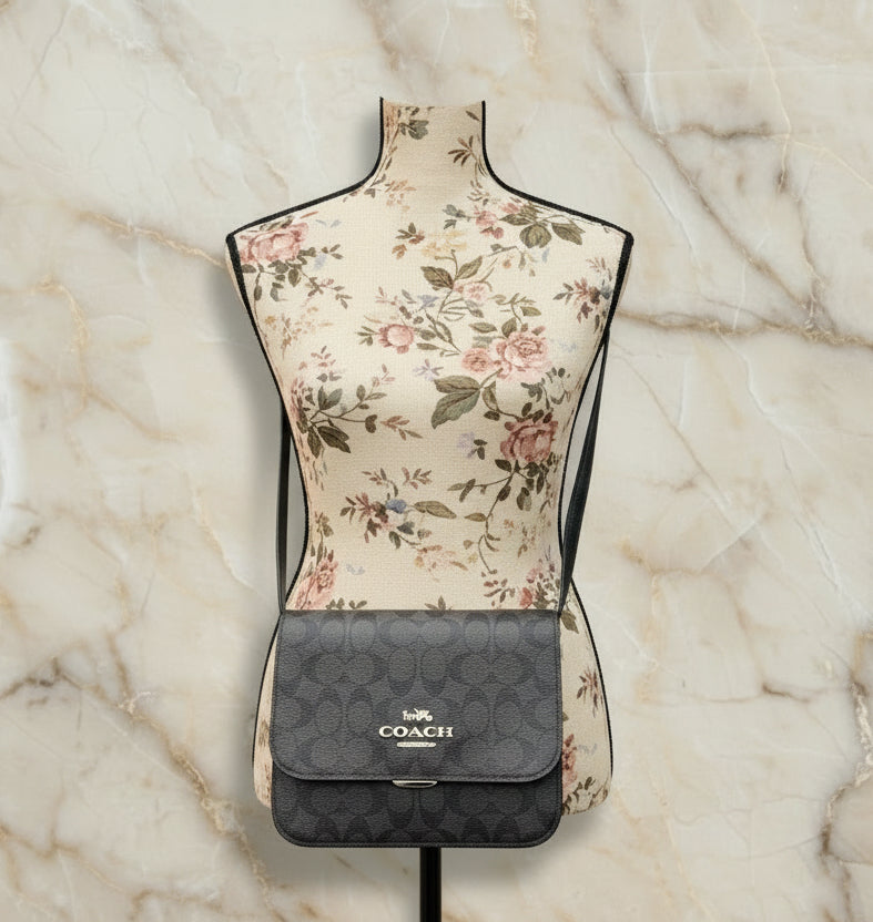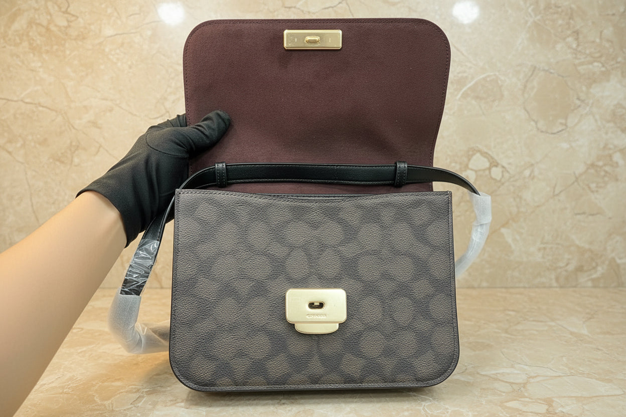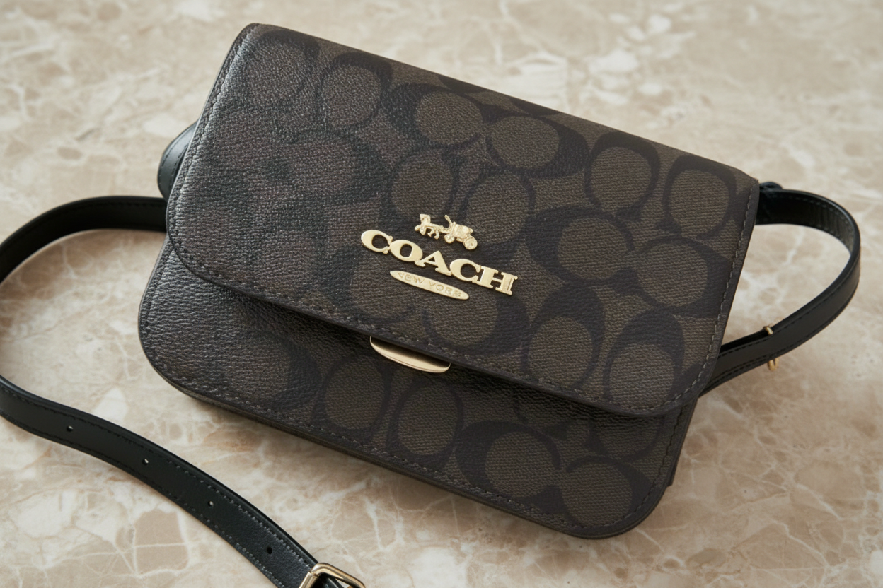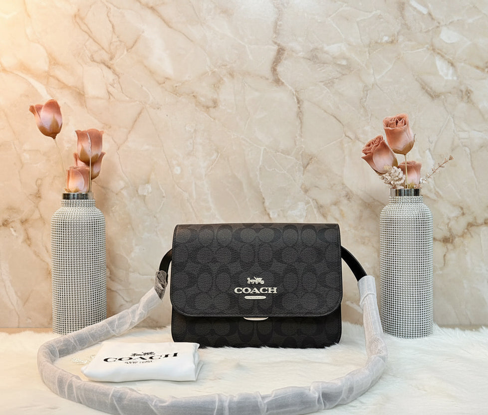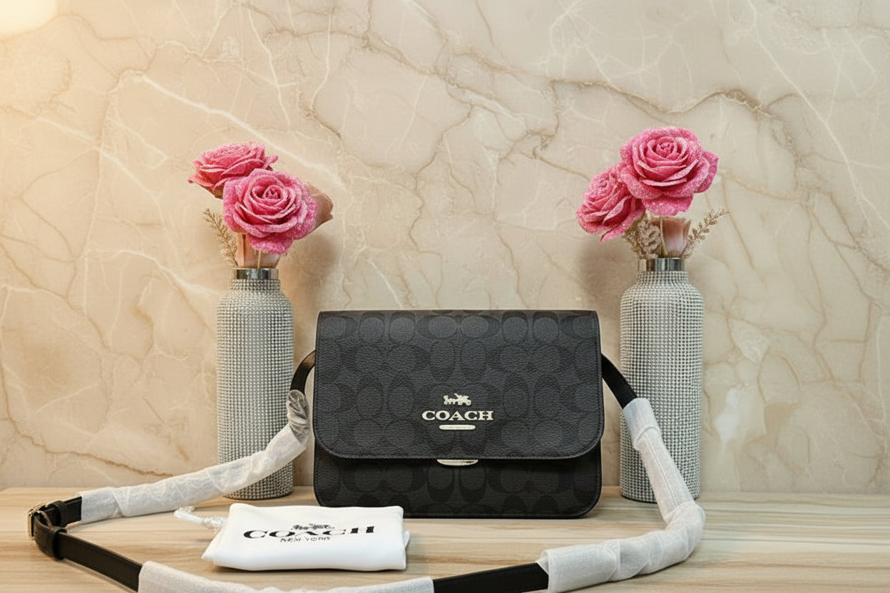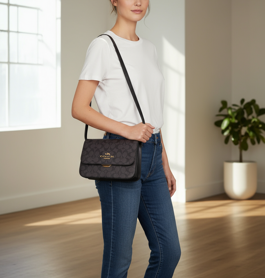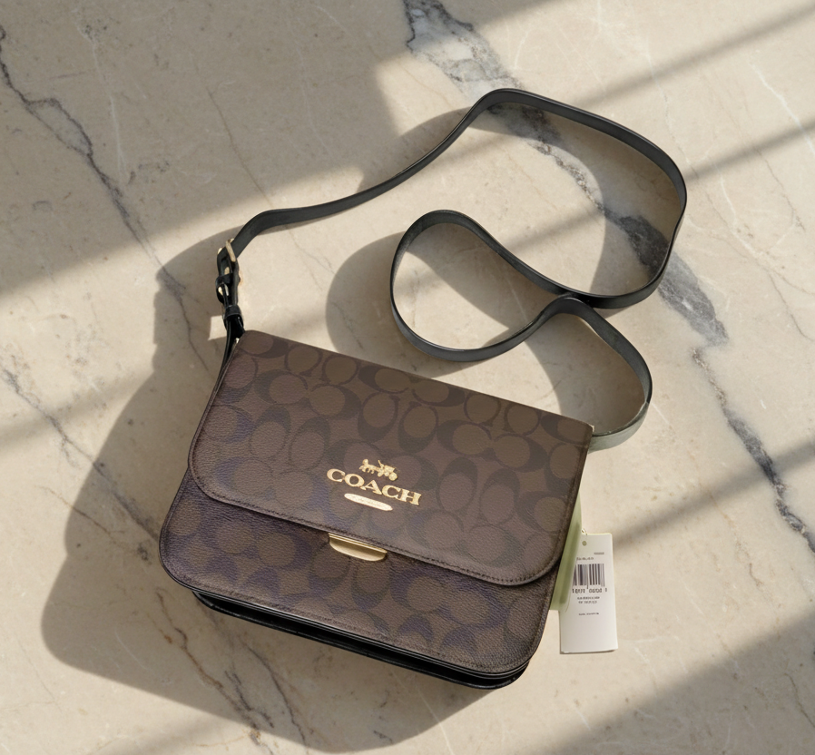 حقيبة كوتش برين فليب من قماش الكانفاس المميز باللونين البني والأسود