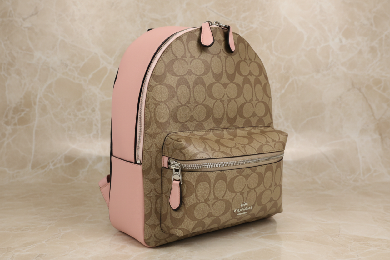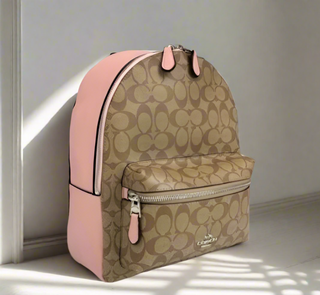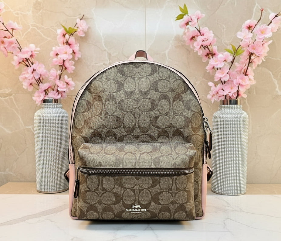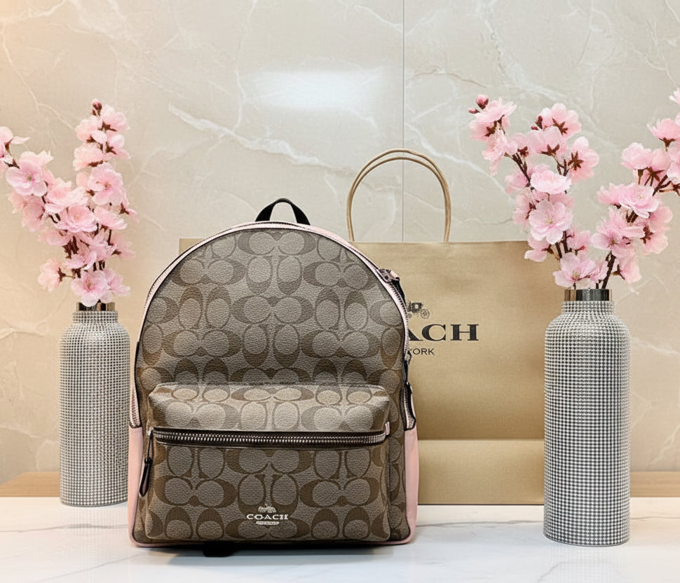 حقيبة ظهر متوسطة الحجم من كوتش تشارلي - لون بني/وردي مميز