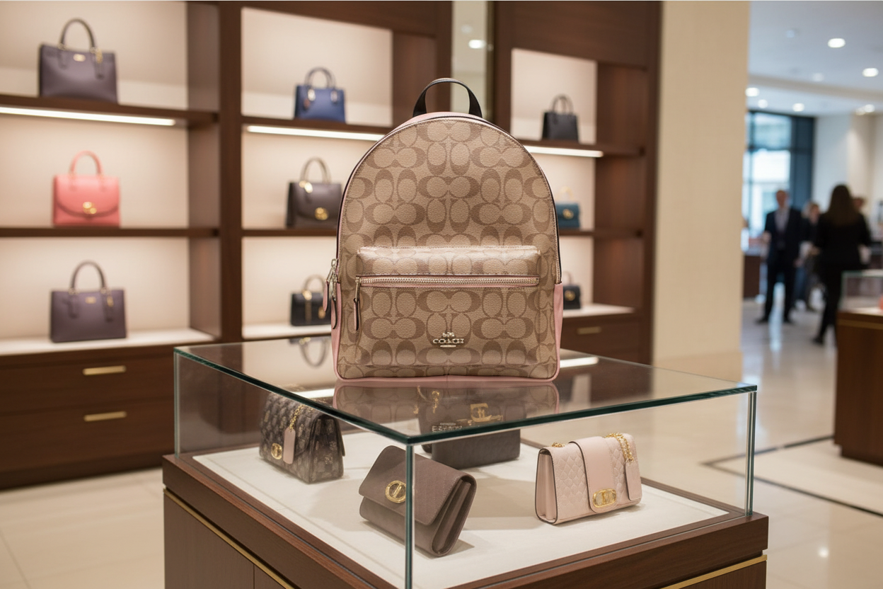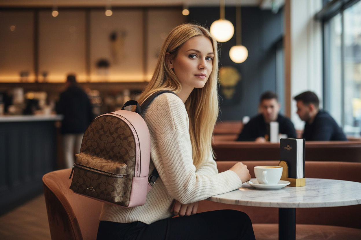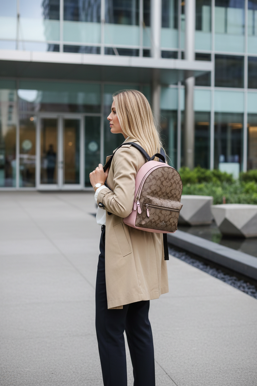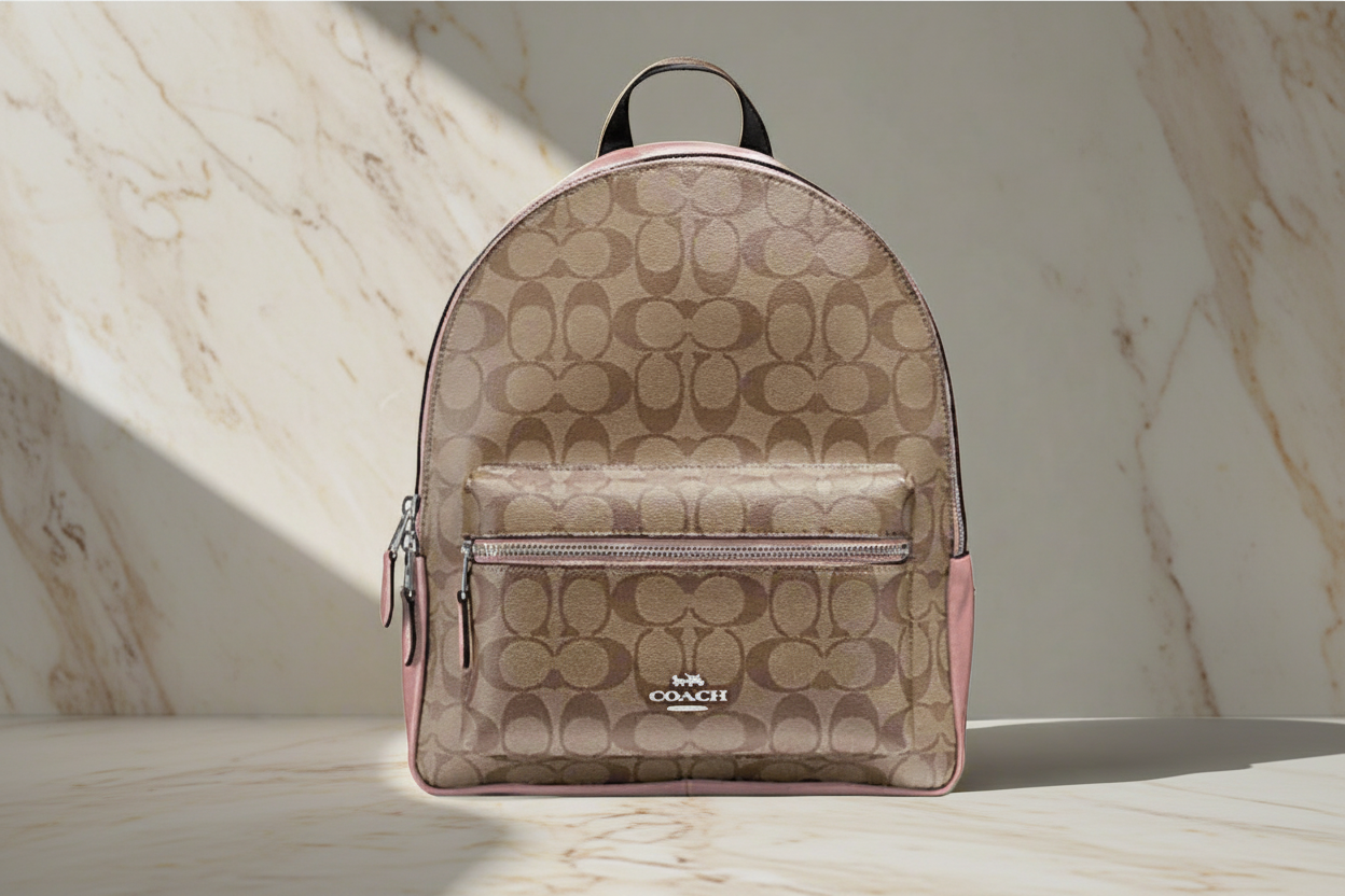 حقيبة ظهر متوسطة الحجم من كوتش تشارلي - لون بني/وردي مميز