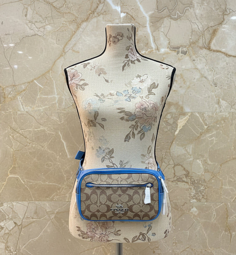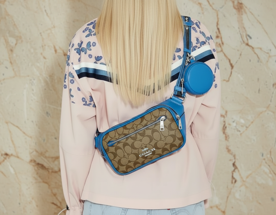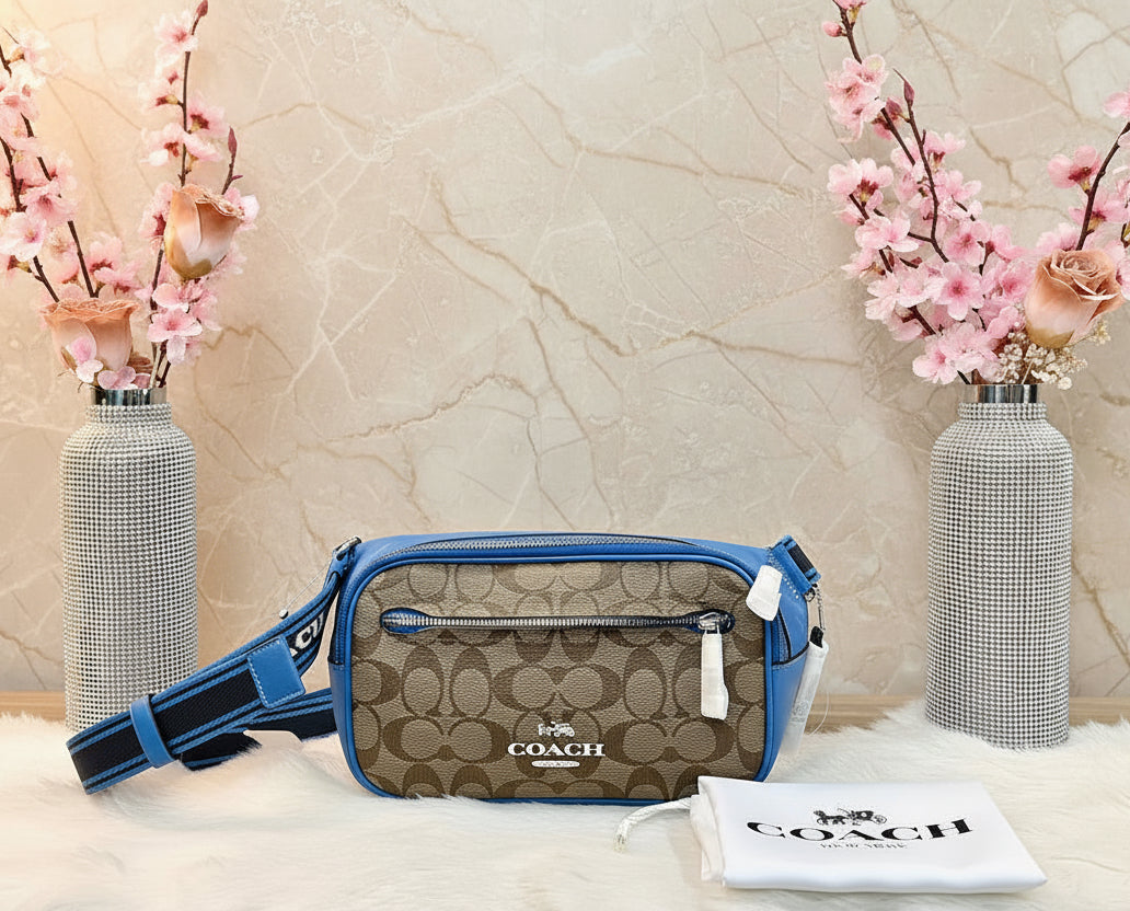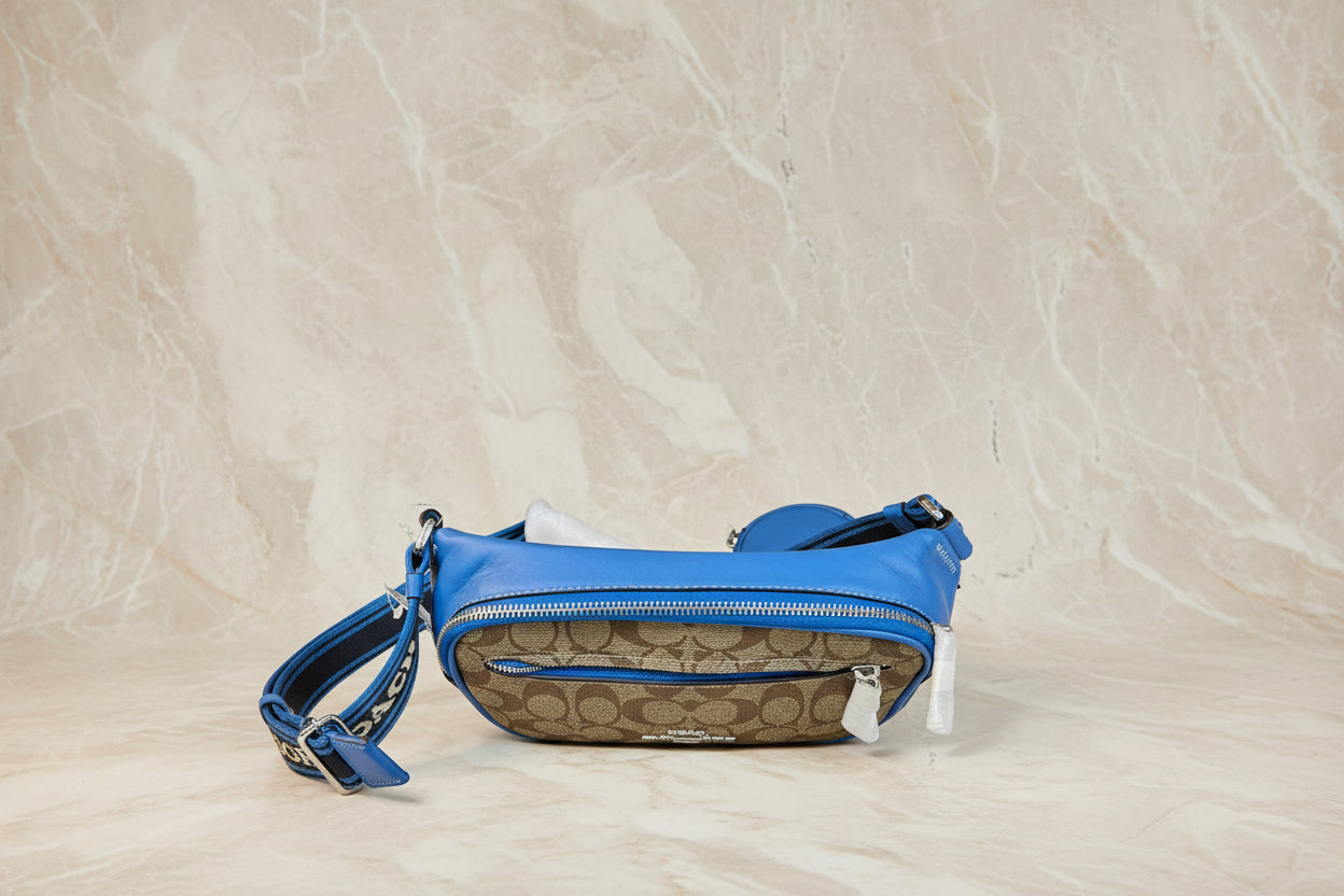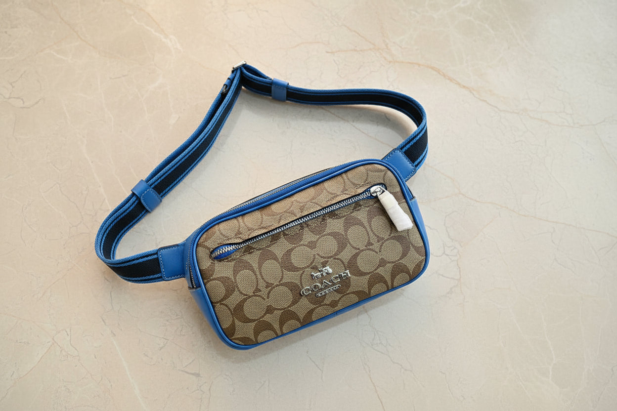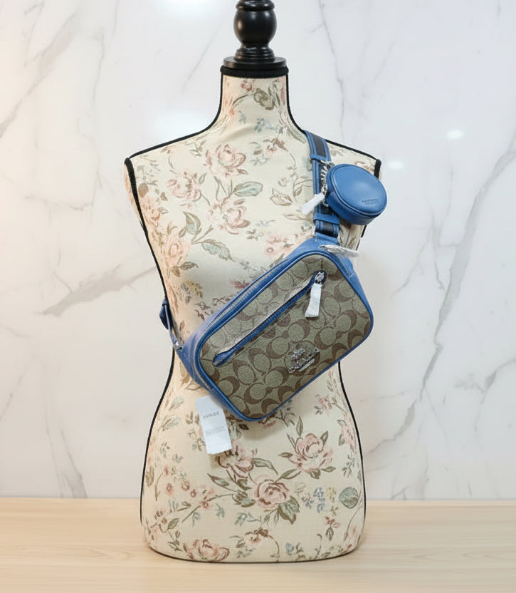 حقيبة خصر/حقيبة صدر/حقيبة جسم من كوتش إلياس، مصنوعة من قماش مميز بألوان متداخلة - كاكي/أزرق سباق
