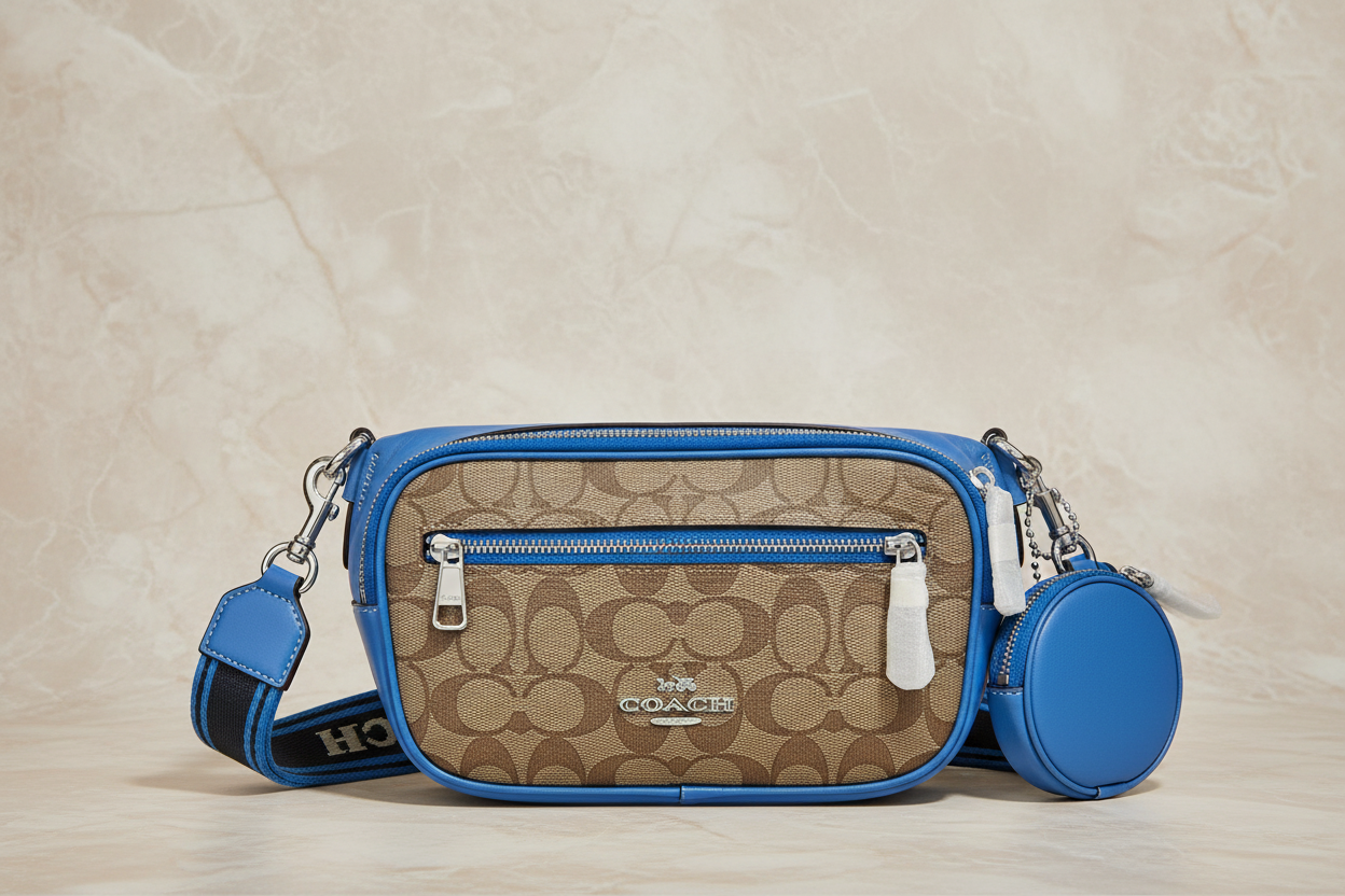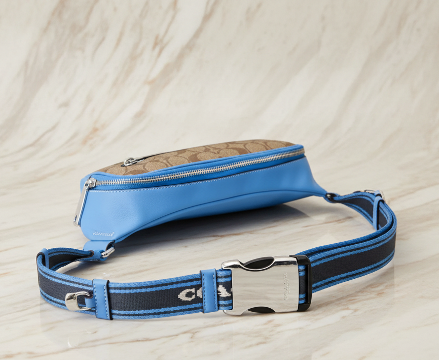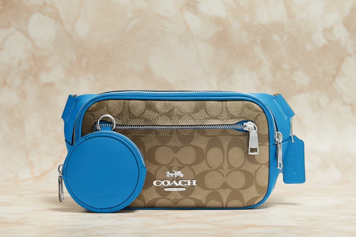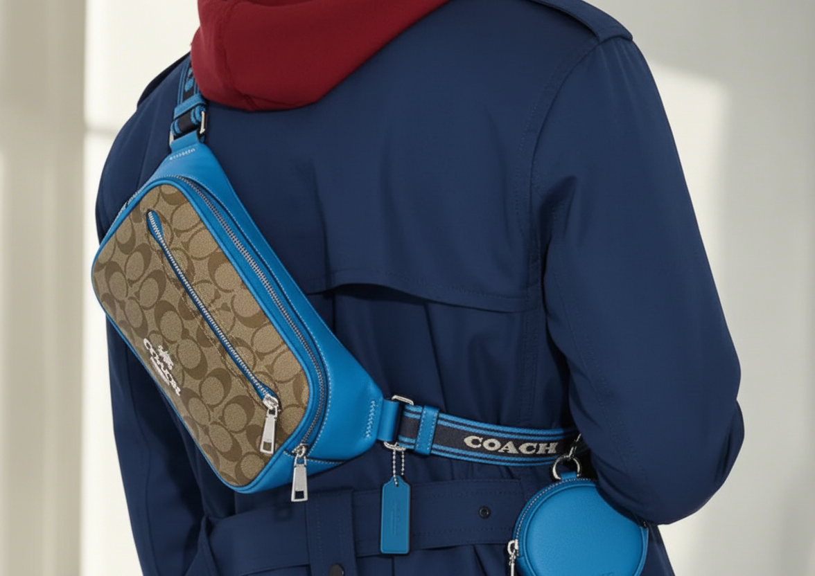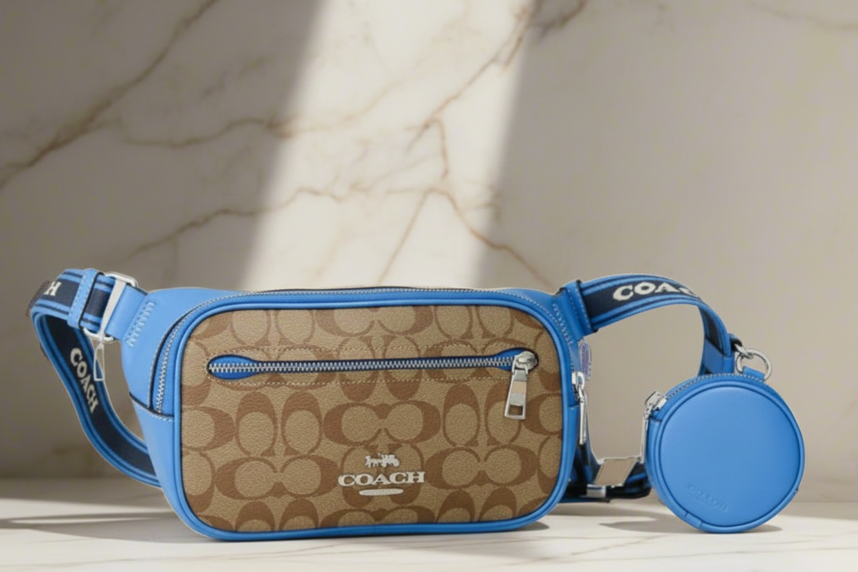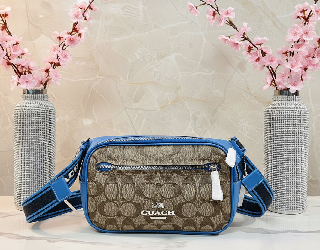 حقيبة خصر/حقيبة صدر/حقيبة جسم من كوتش إلياس، مصنوعة من قماش مميز بألوان متداخلة - كاكي/أزرق سباق