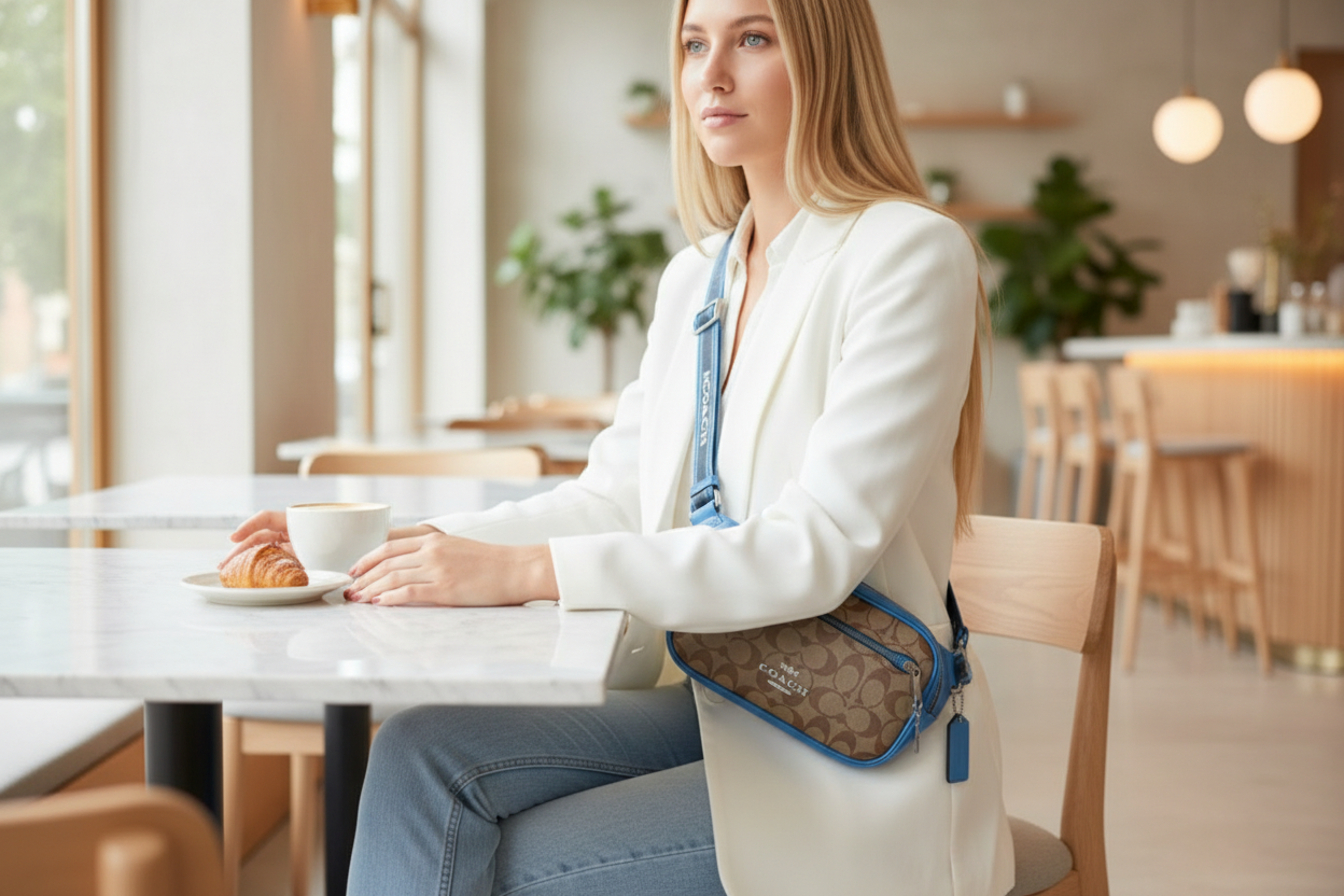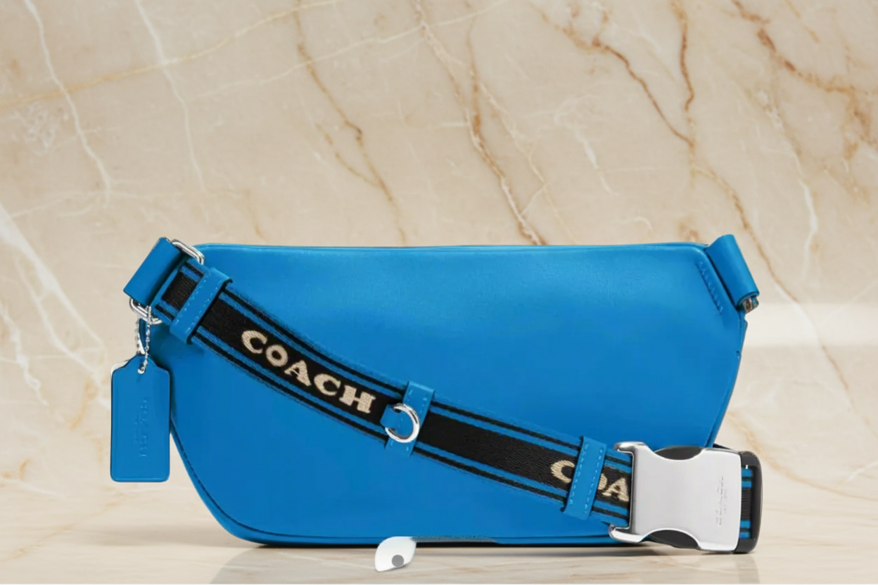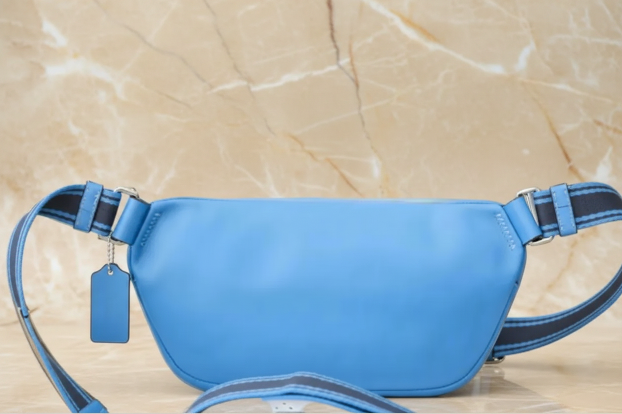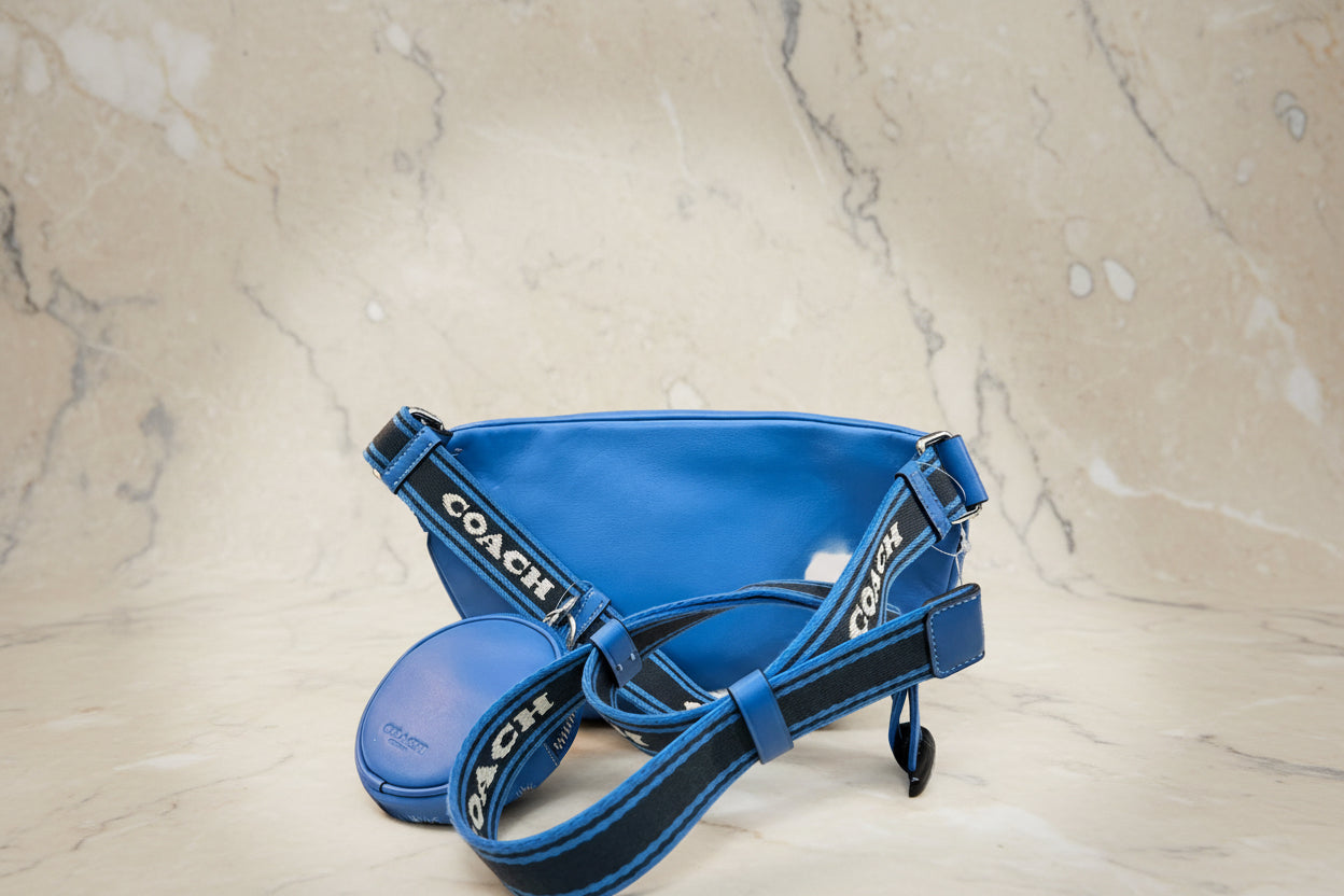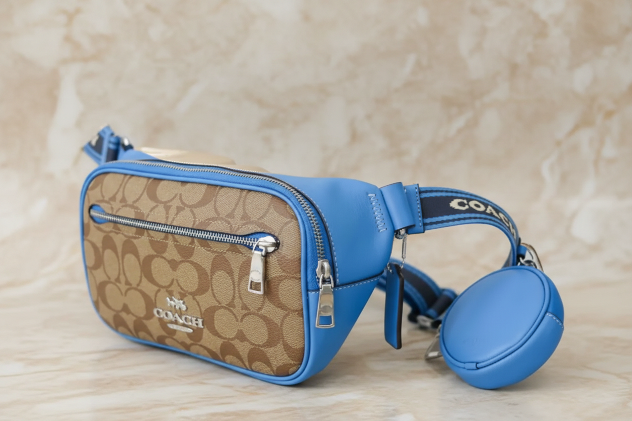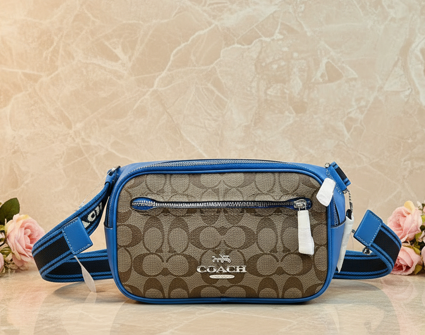 حقيبة خصر/حقيبة صدر/حقيبة جسم من كوتش إلياس، مصنوعة من قماش مميز بألوان متداخلة - كاكي/أزرق سباق