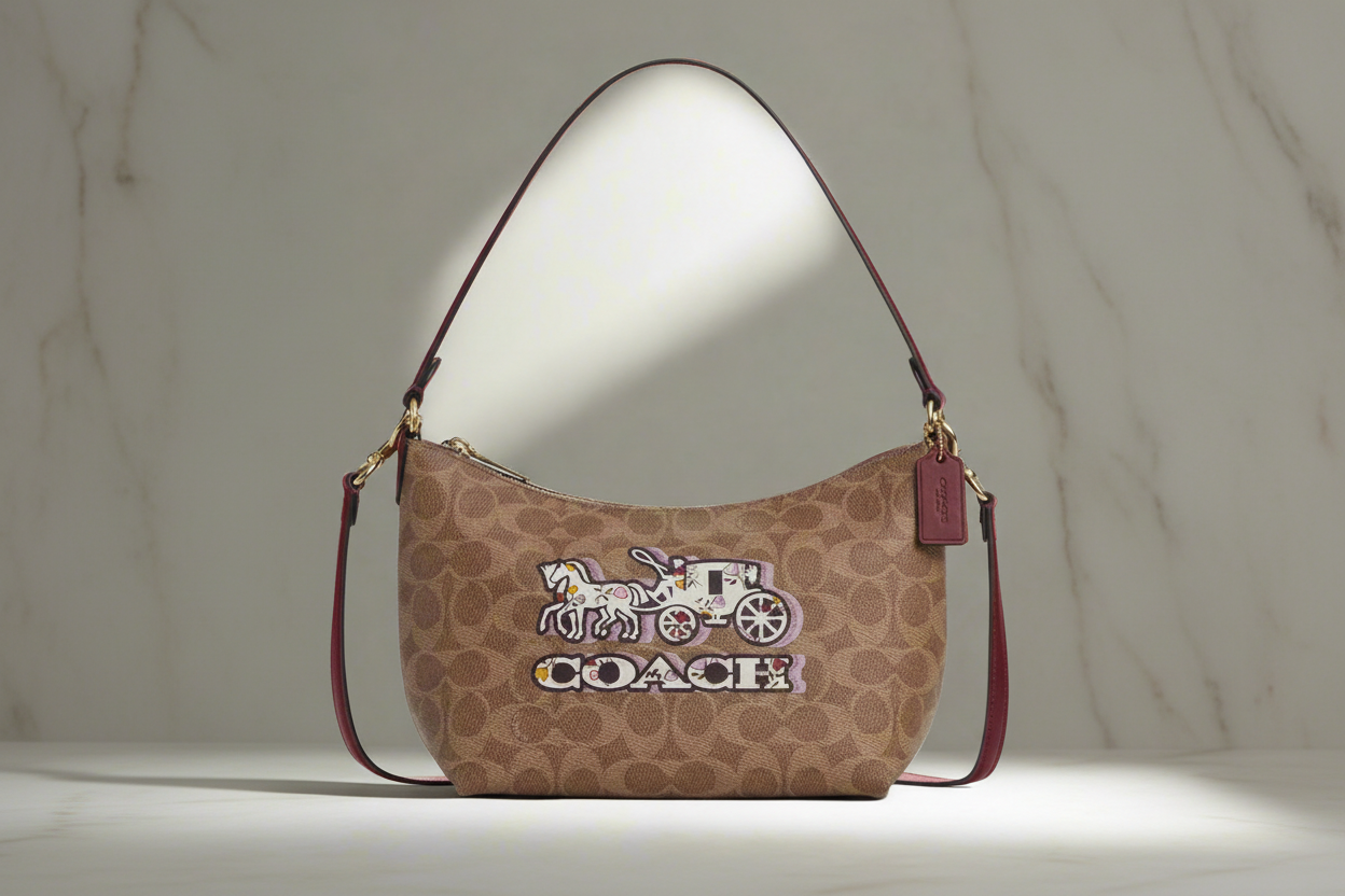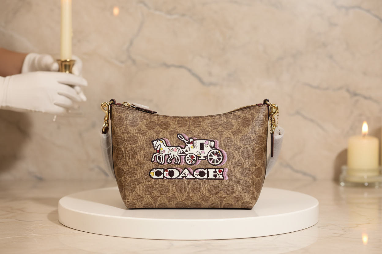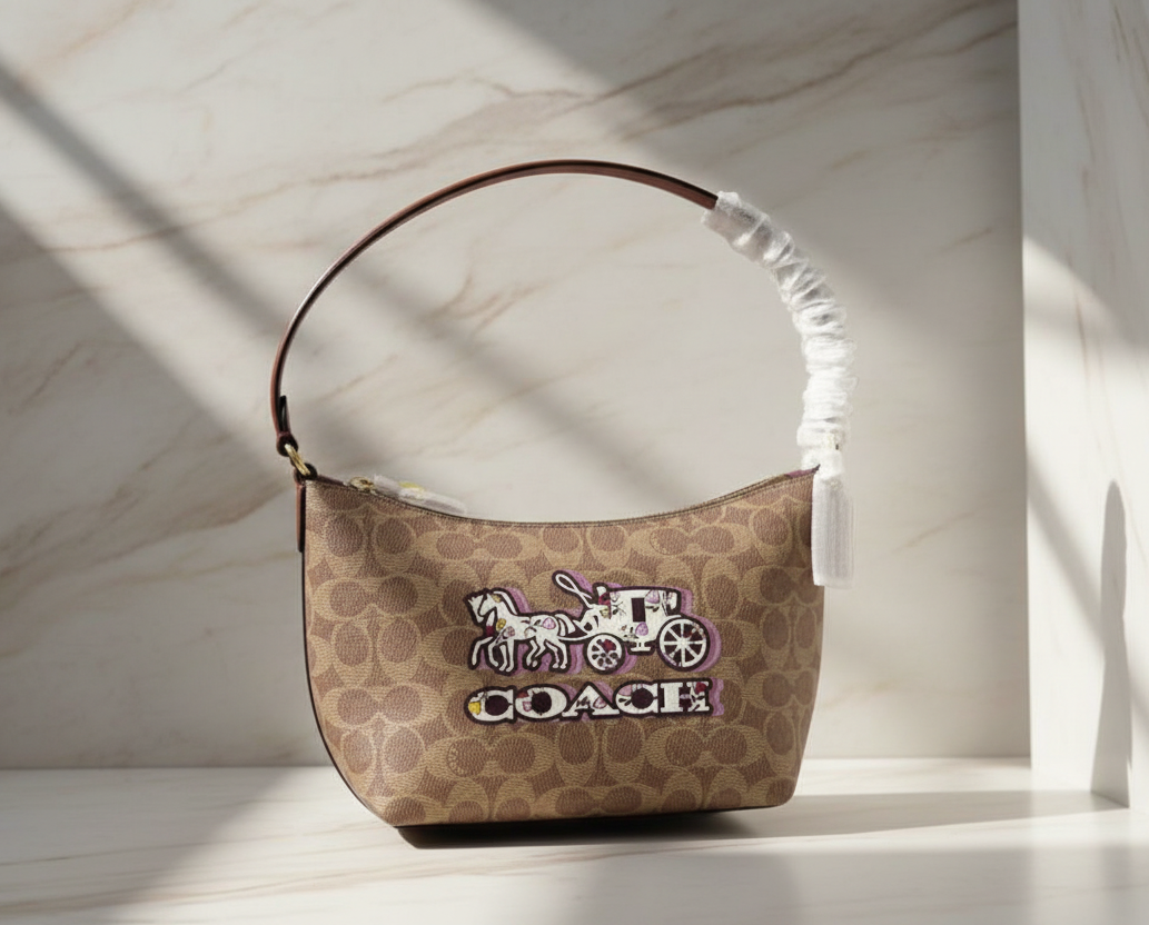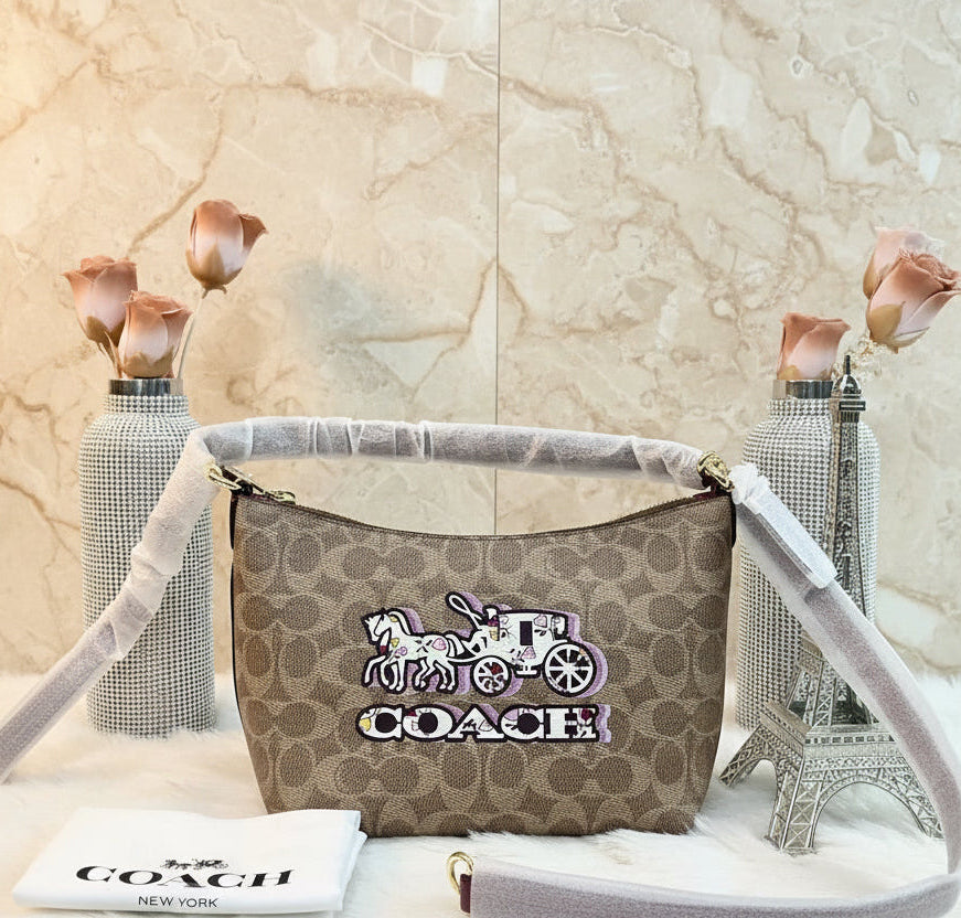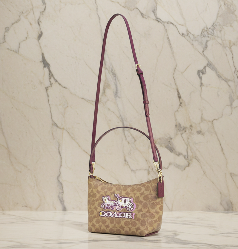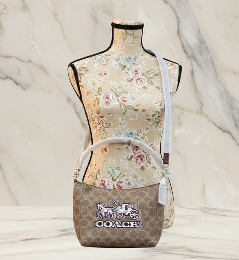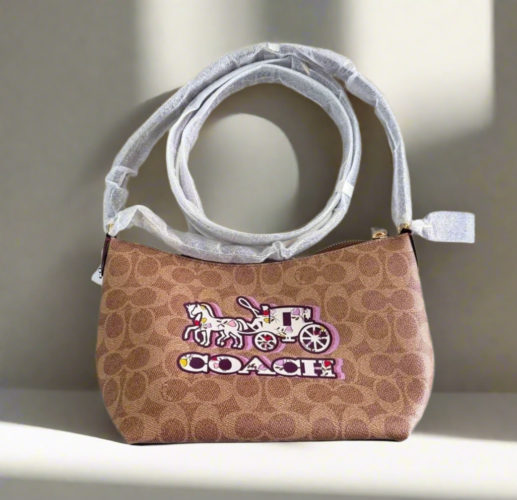 حقيبة كتف/حقيبة كروس بودي من كوتش بايتون بنقشة الحصان والعربة المميزة