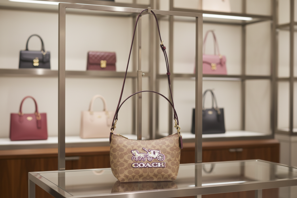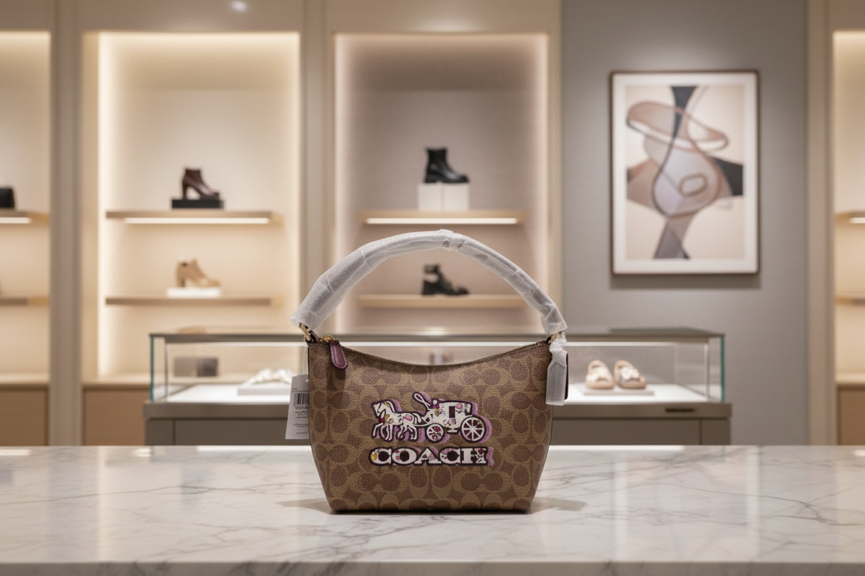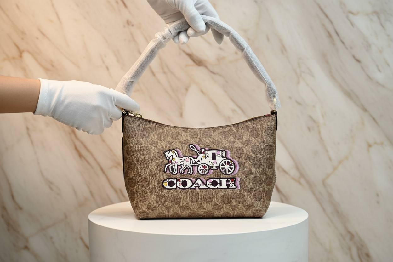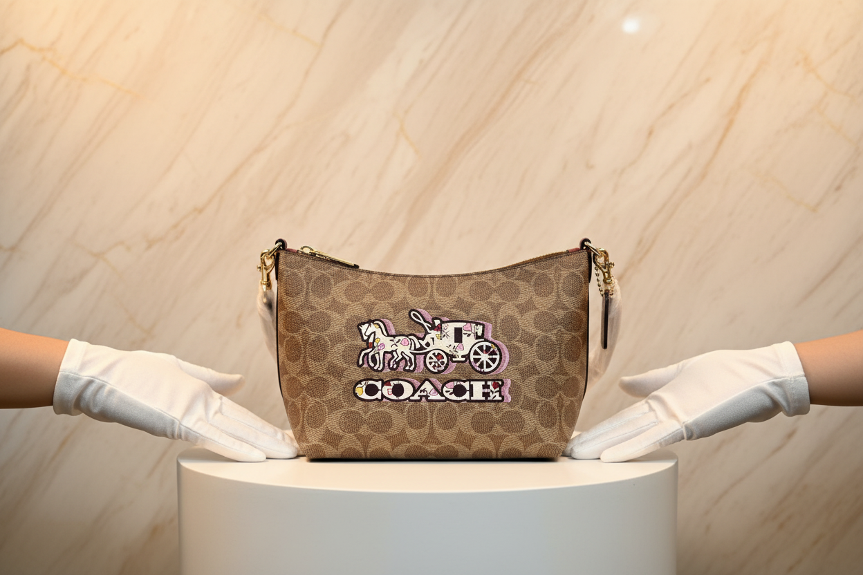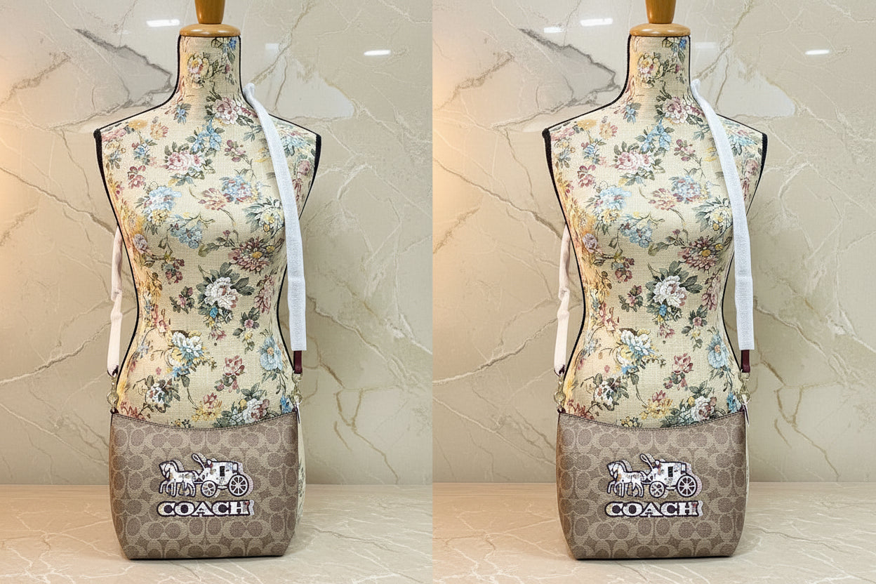 حقيبة كتف/حقيبة كروس بودي من كوتش بايتون بنقشة الحصان والعربة المميزة