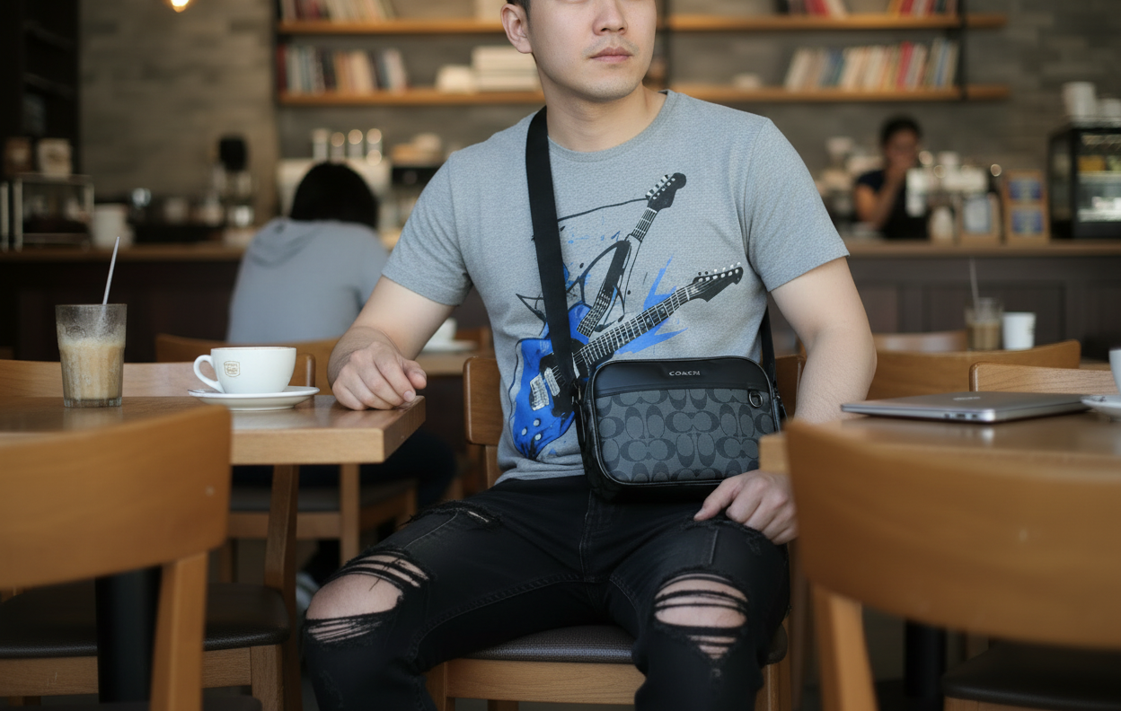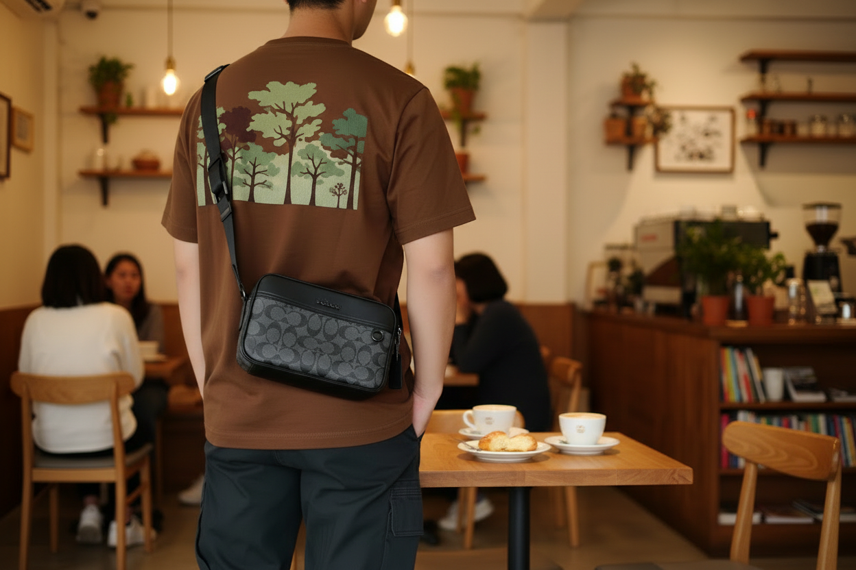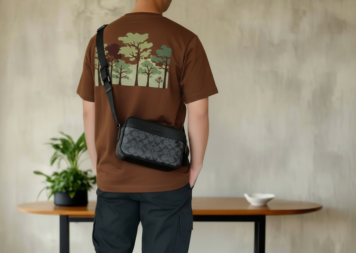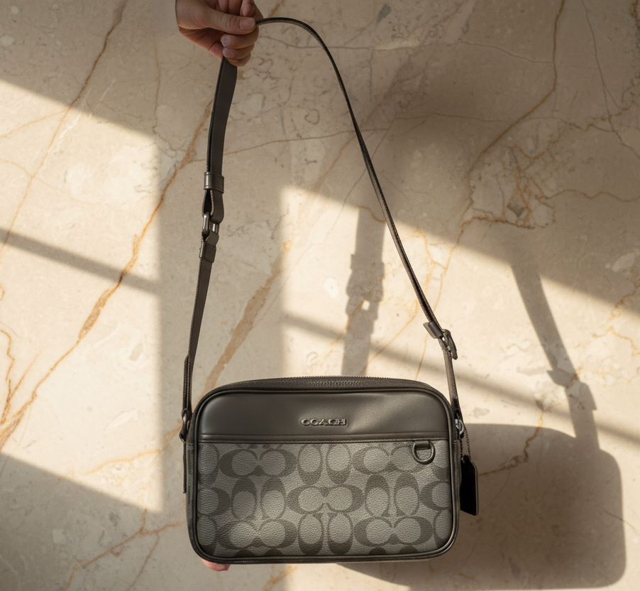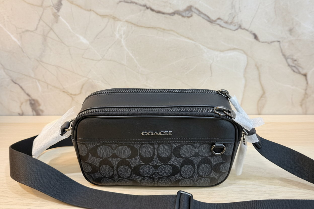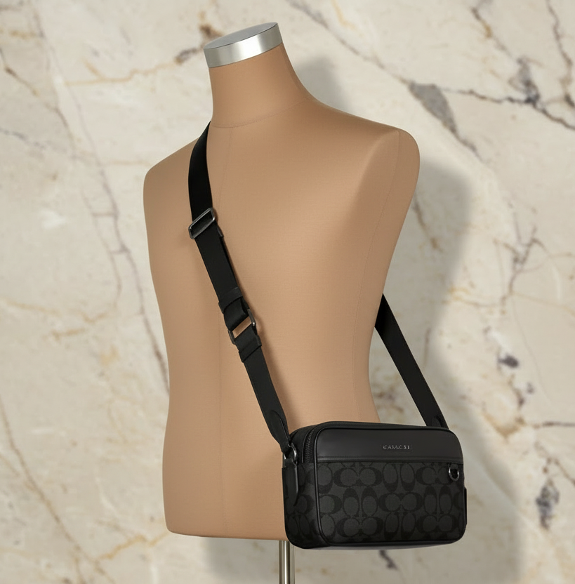 حقيبة كروس بودي من كوتش غراهام - قماش مطلي مميز/أسود فحمي