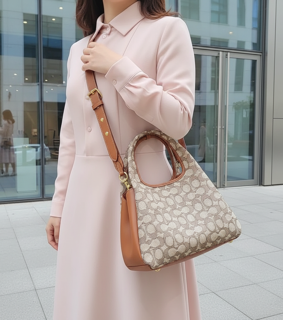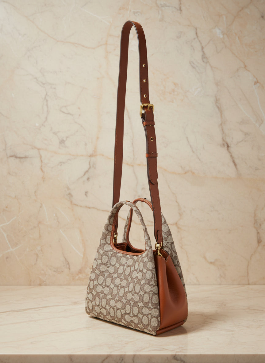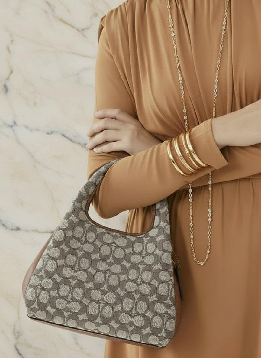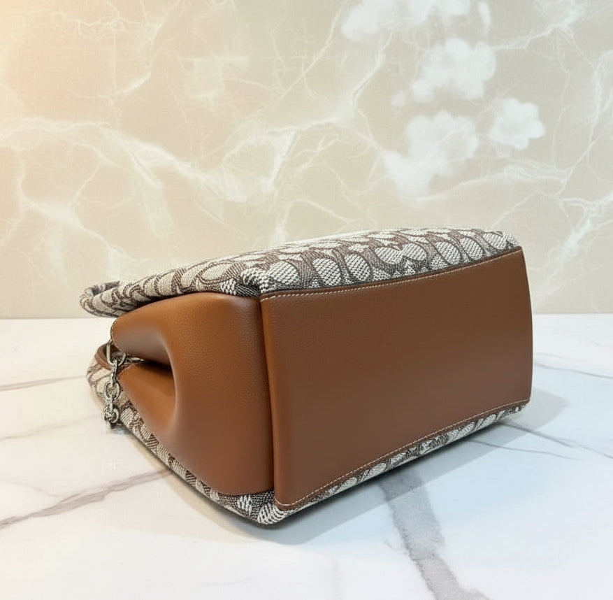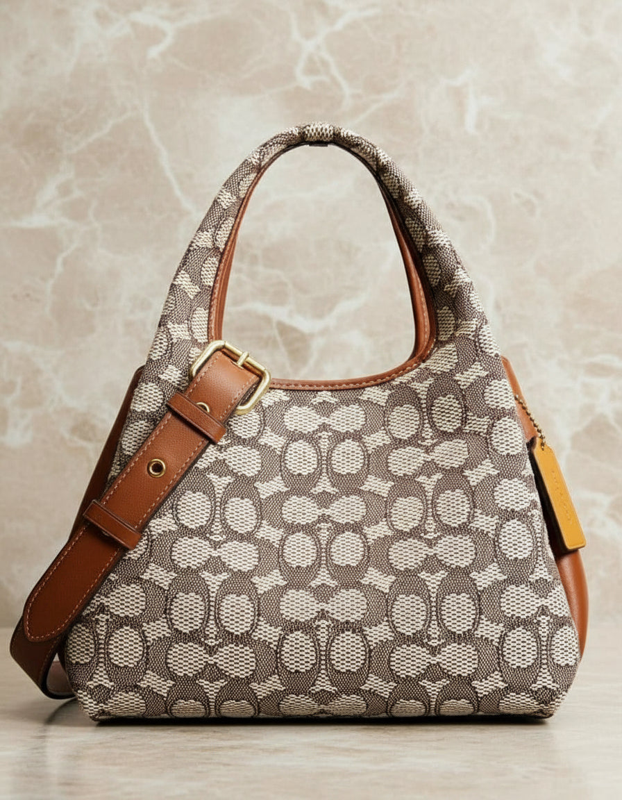 🫶 تجمع حقيبة لانا بين سهولة التنظيم والمظهر الأنيق. تتميز حقيبة الكتف لانا 23، المصنوعة من قماش الجاكار المميز والجلد المدبوغ، بتفاصيل معدنية تحمل شعارنا، وتحتوي على جيب مركزي مفتوح لحفظ الأغراض، وجيبين مفتوحين، وحزام كتف قابل للفصل لتعدد استخداماتها. إنها أنيقة، واسعة، عصرية، وعملية.