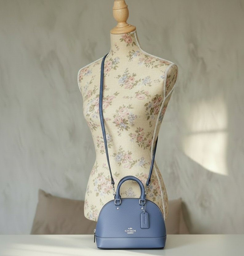 * مصنوع من الجلد الأزرق الخزامي المتقاطع