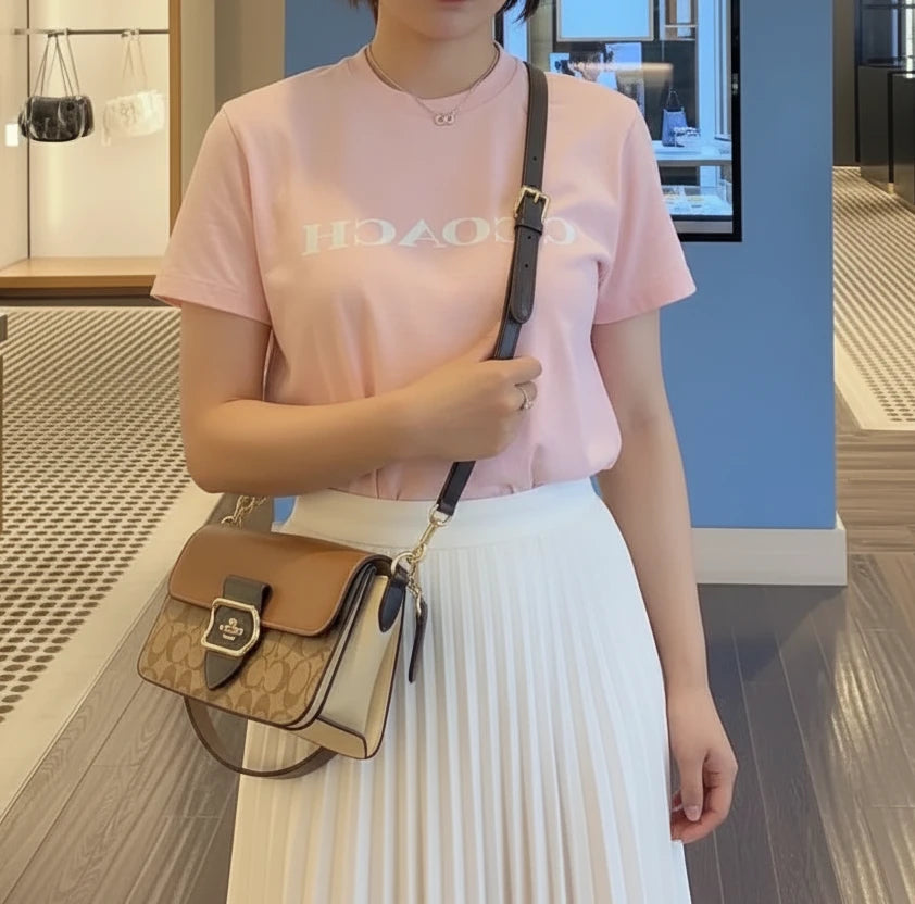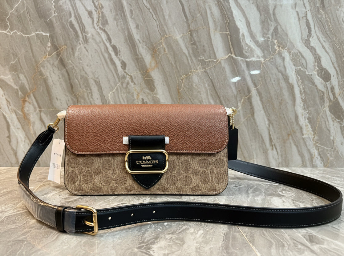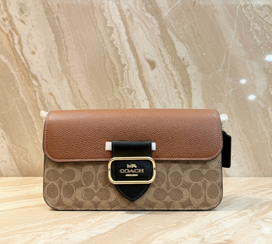 حقيبة كتف كوتش مورغان من قماش الكانفاس المميز بألوان متداخلة ذهبية/كاكي متعددة