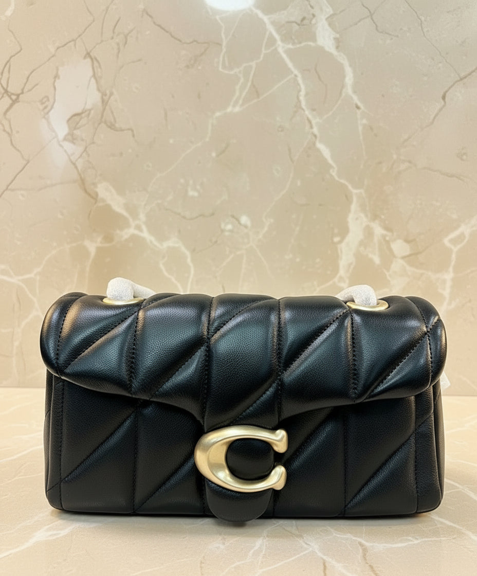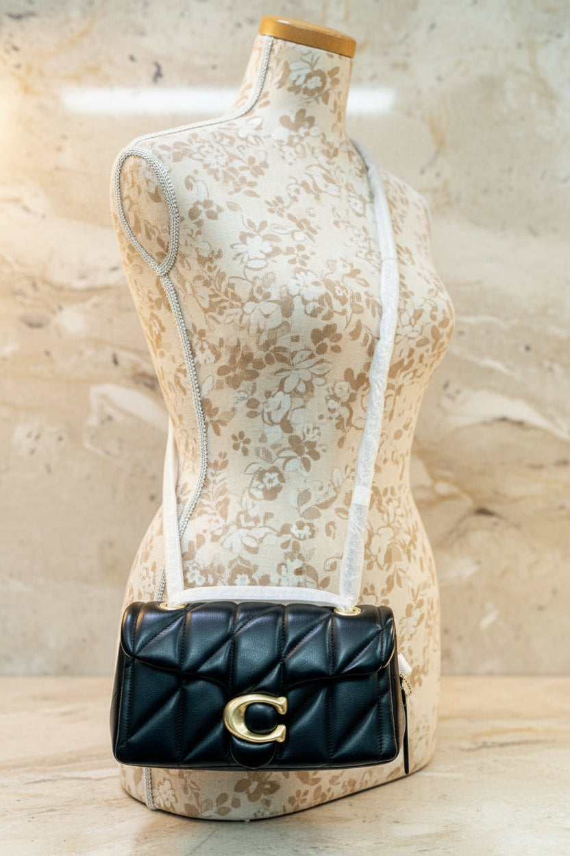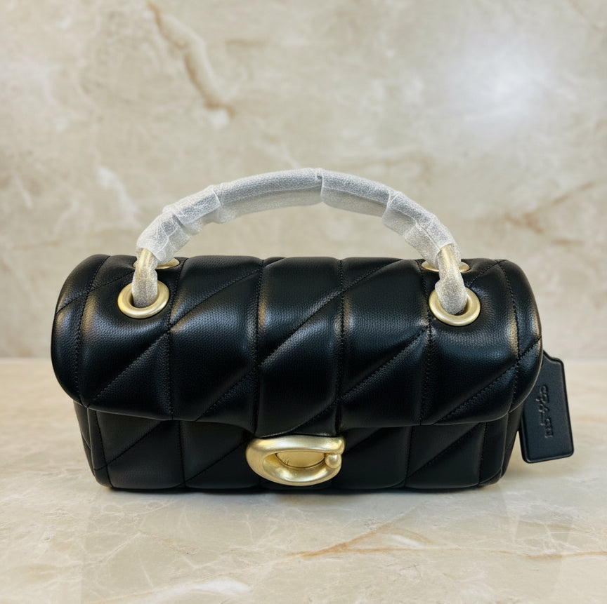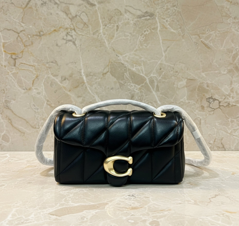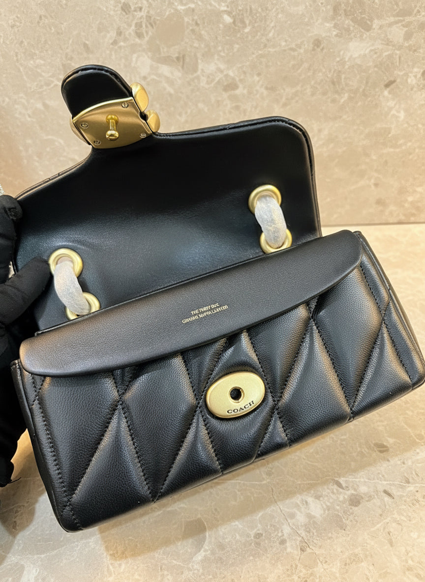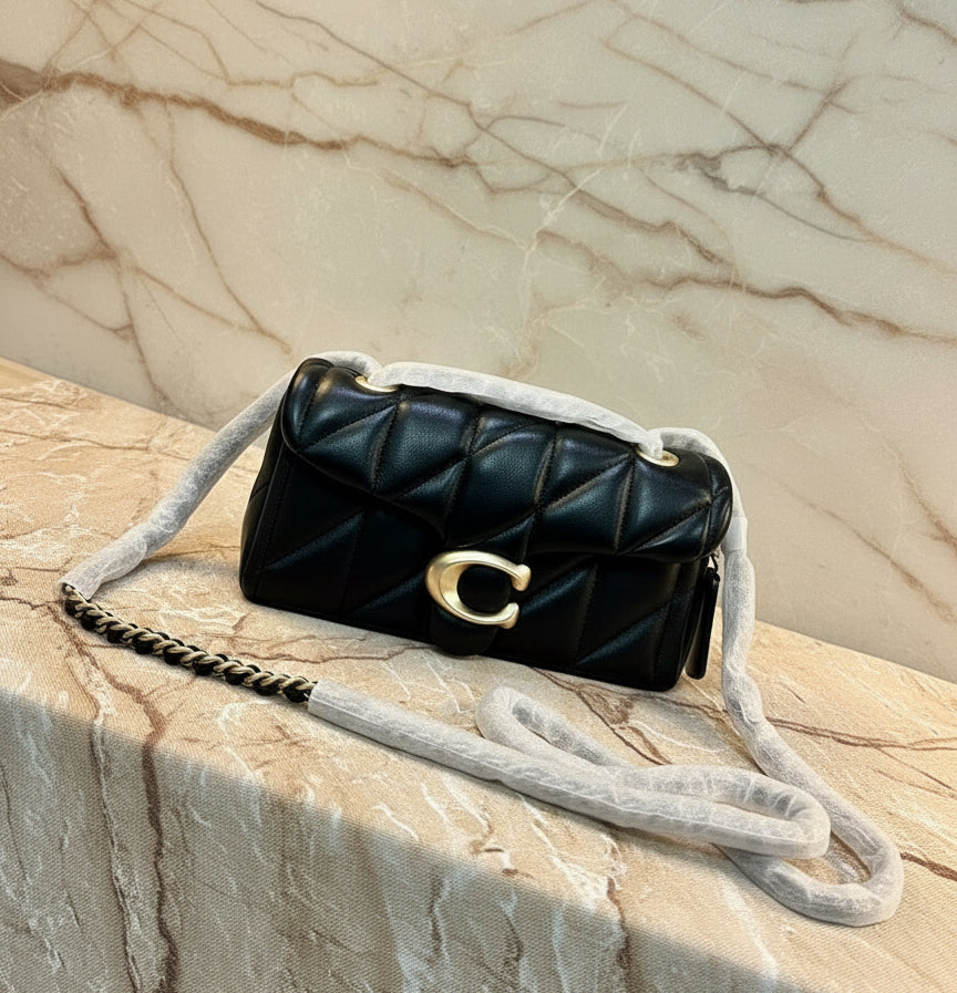 حقيبة كوتش مبطنة بنقشة تابي 20 - أسود - جلد نابا