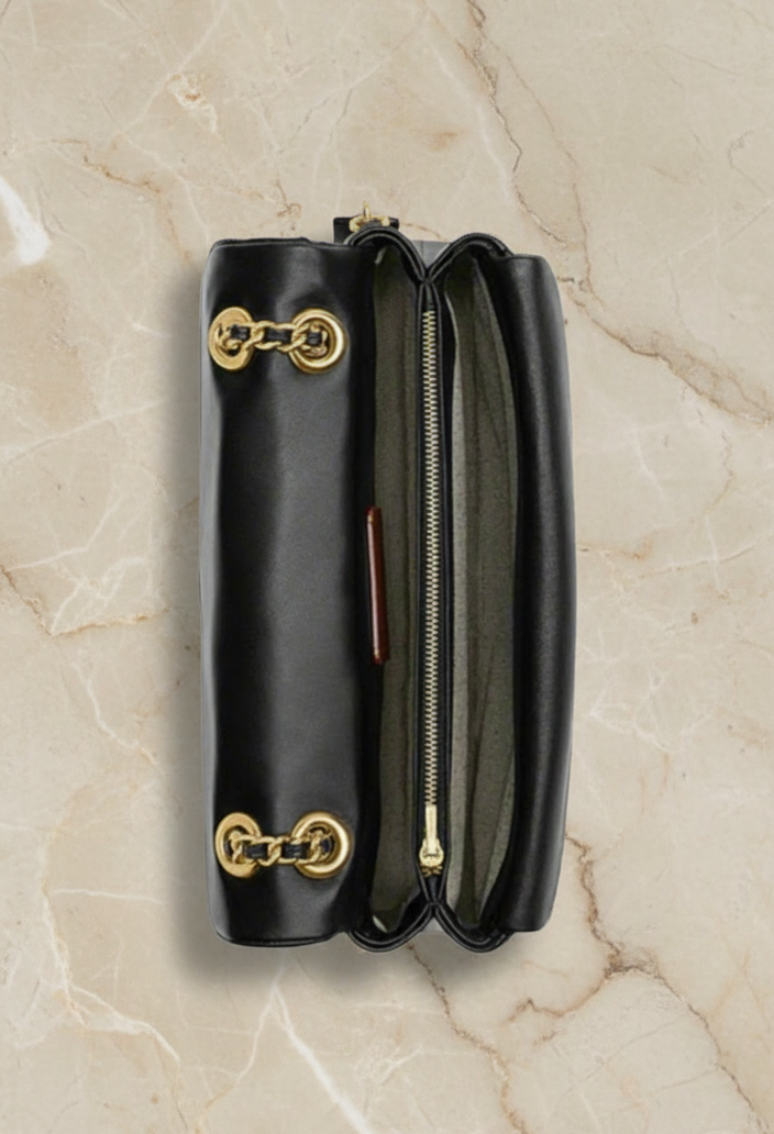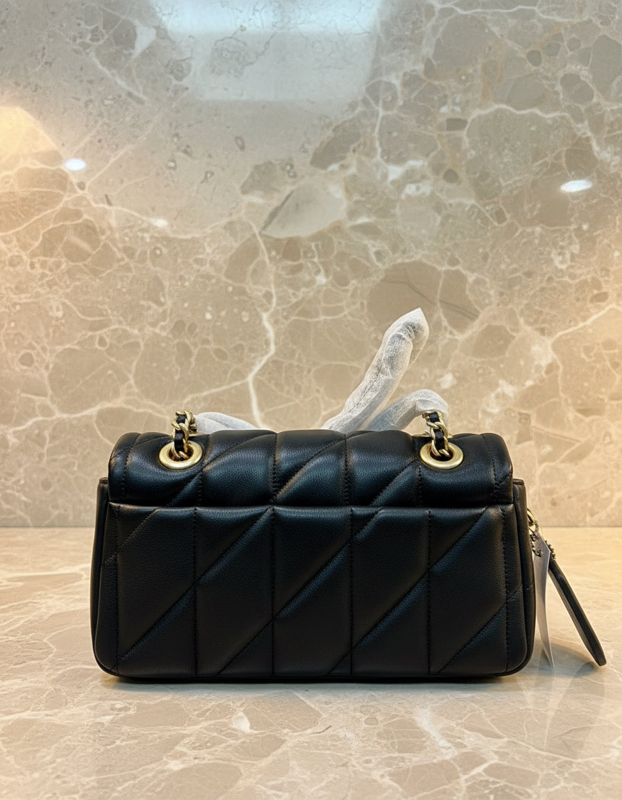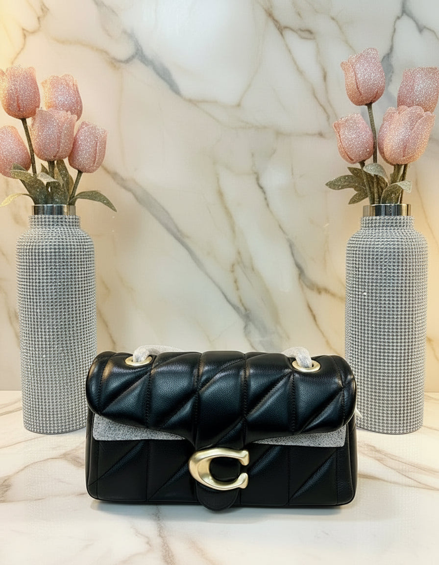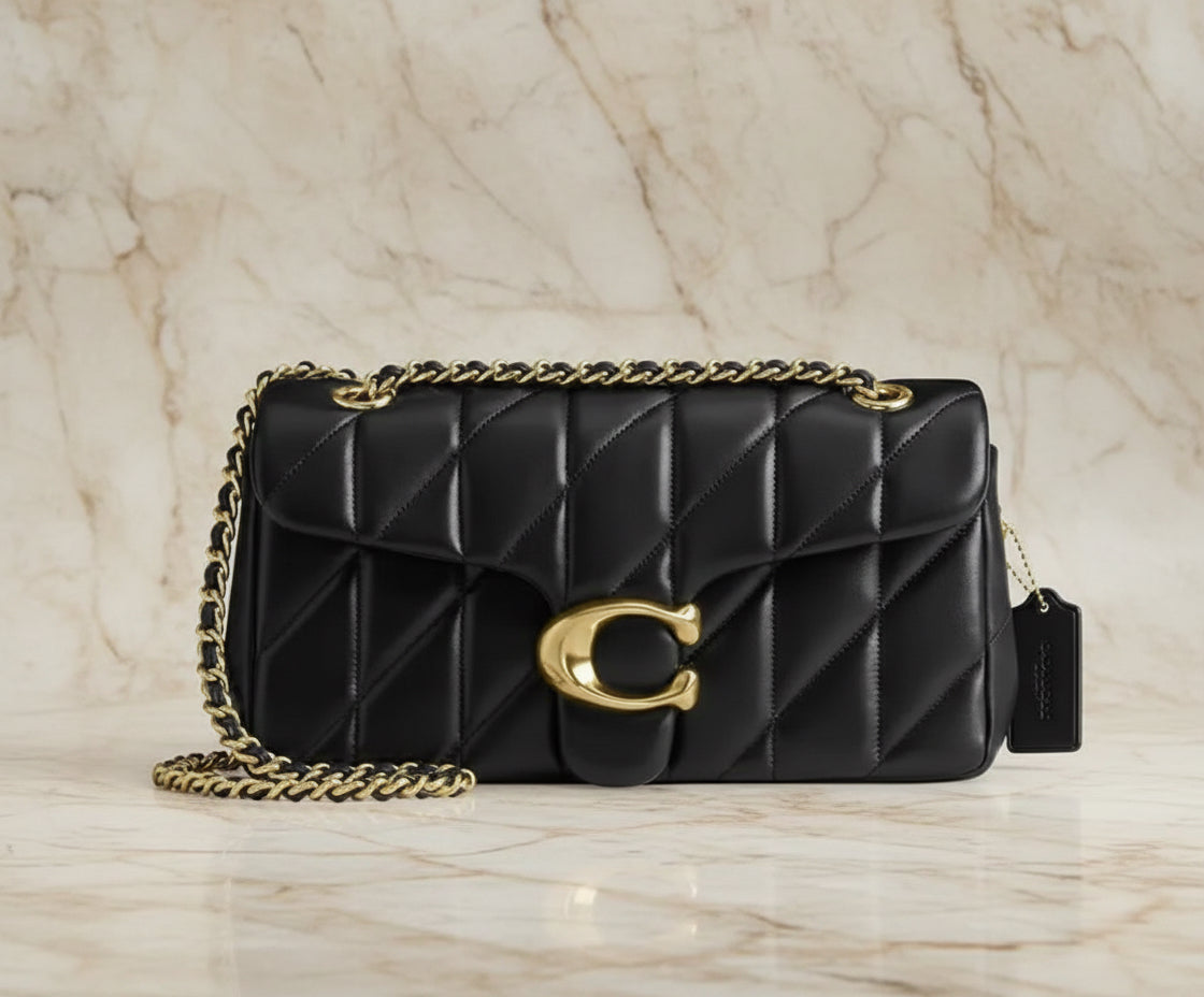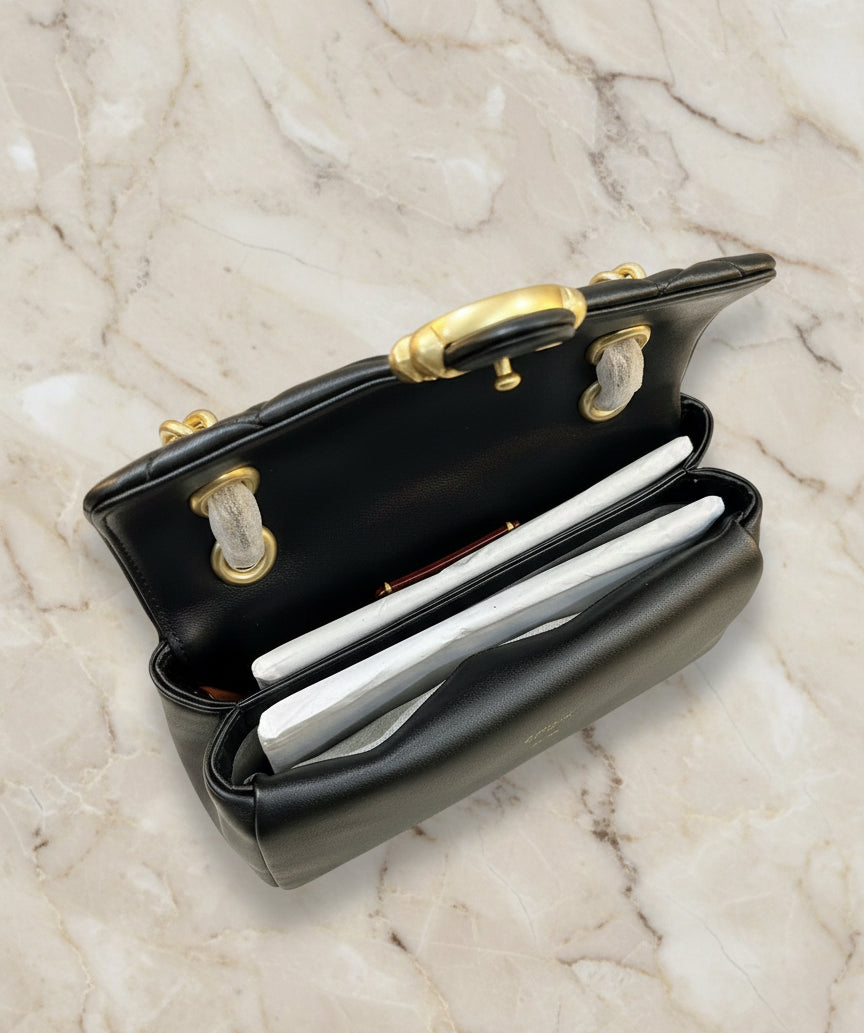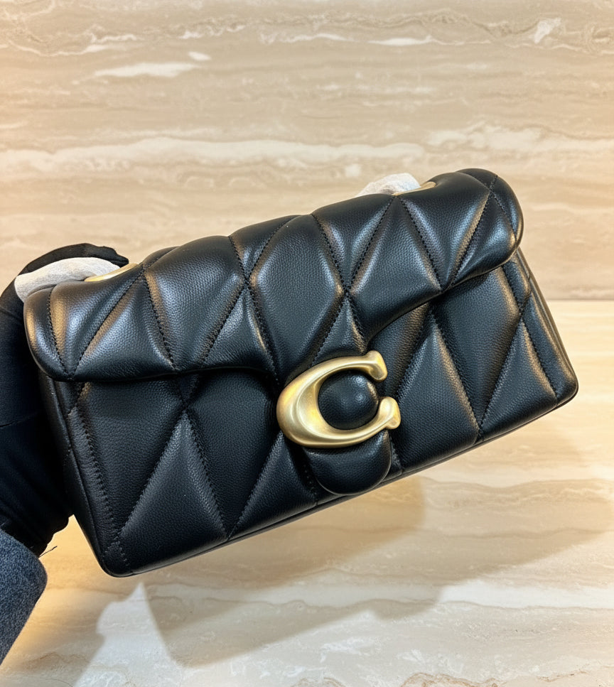 حقيبة كوتش مبطنة بنقشة تابي 20 - أسود - جلد نابا