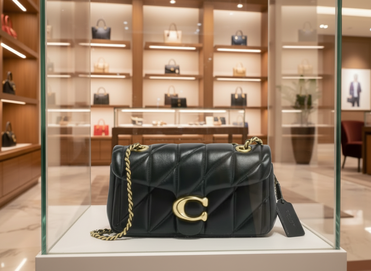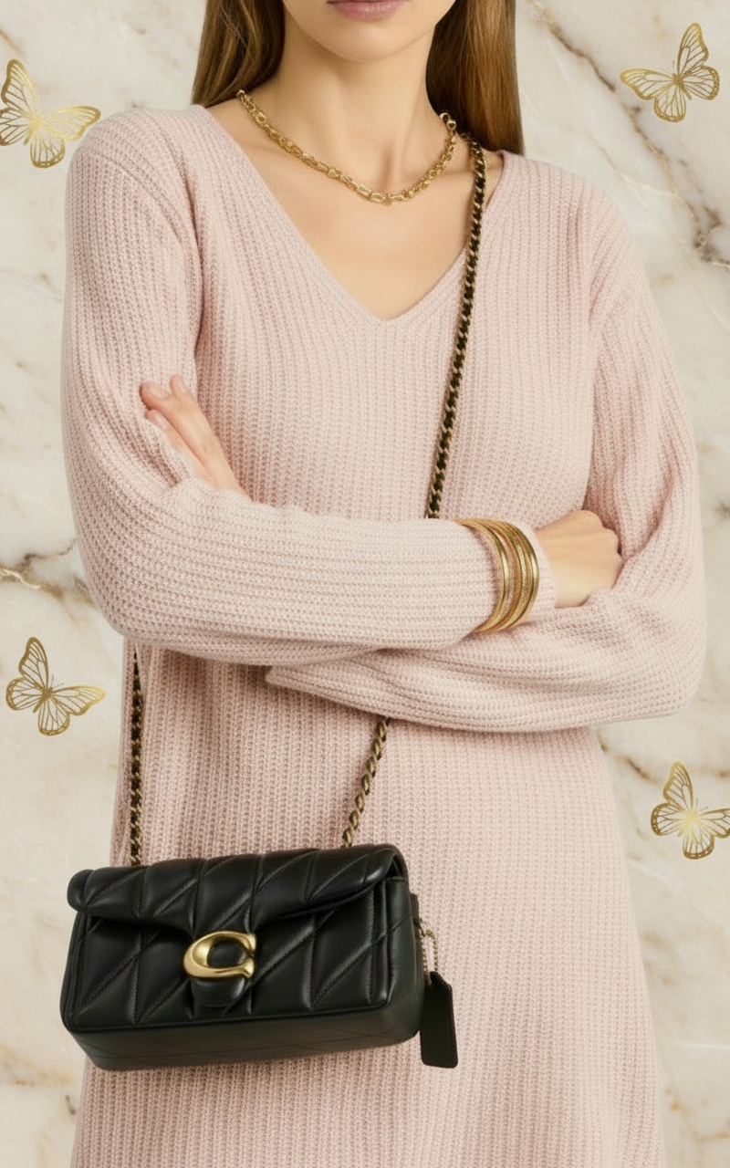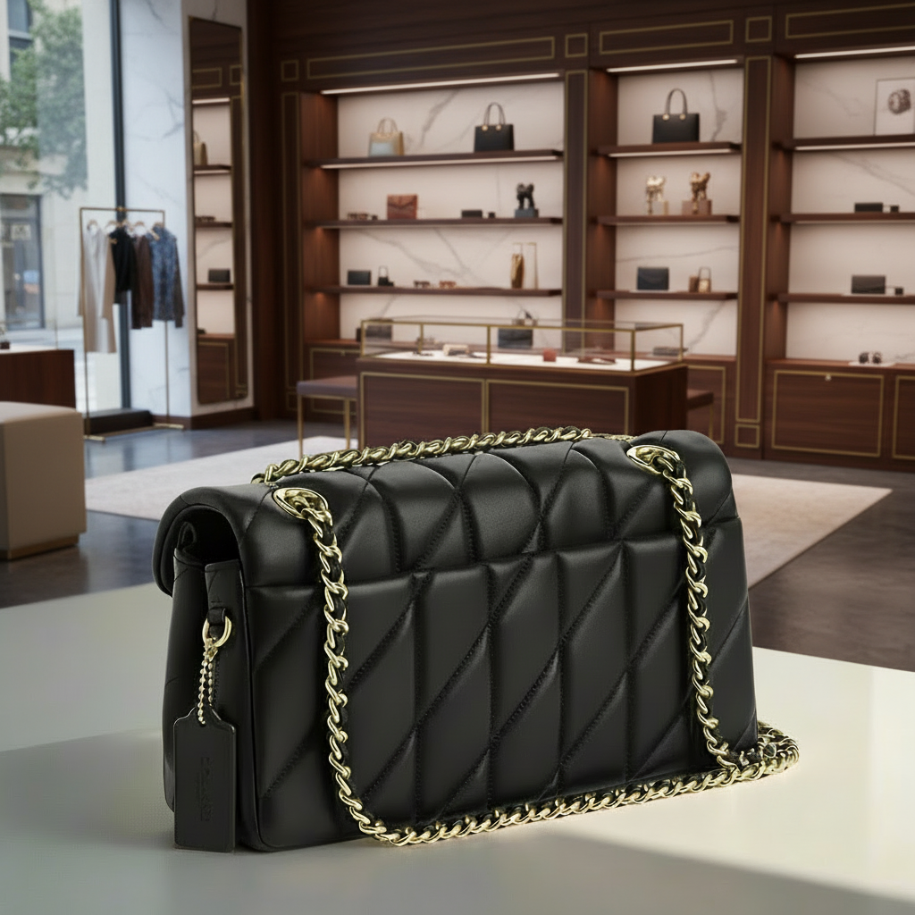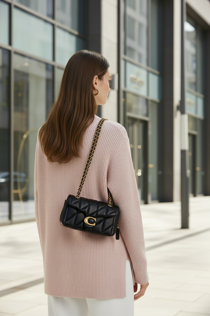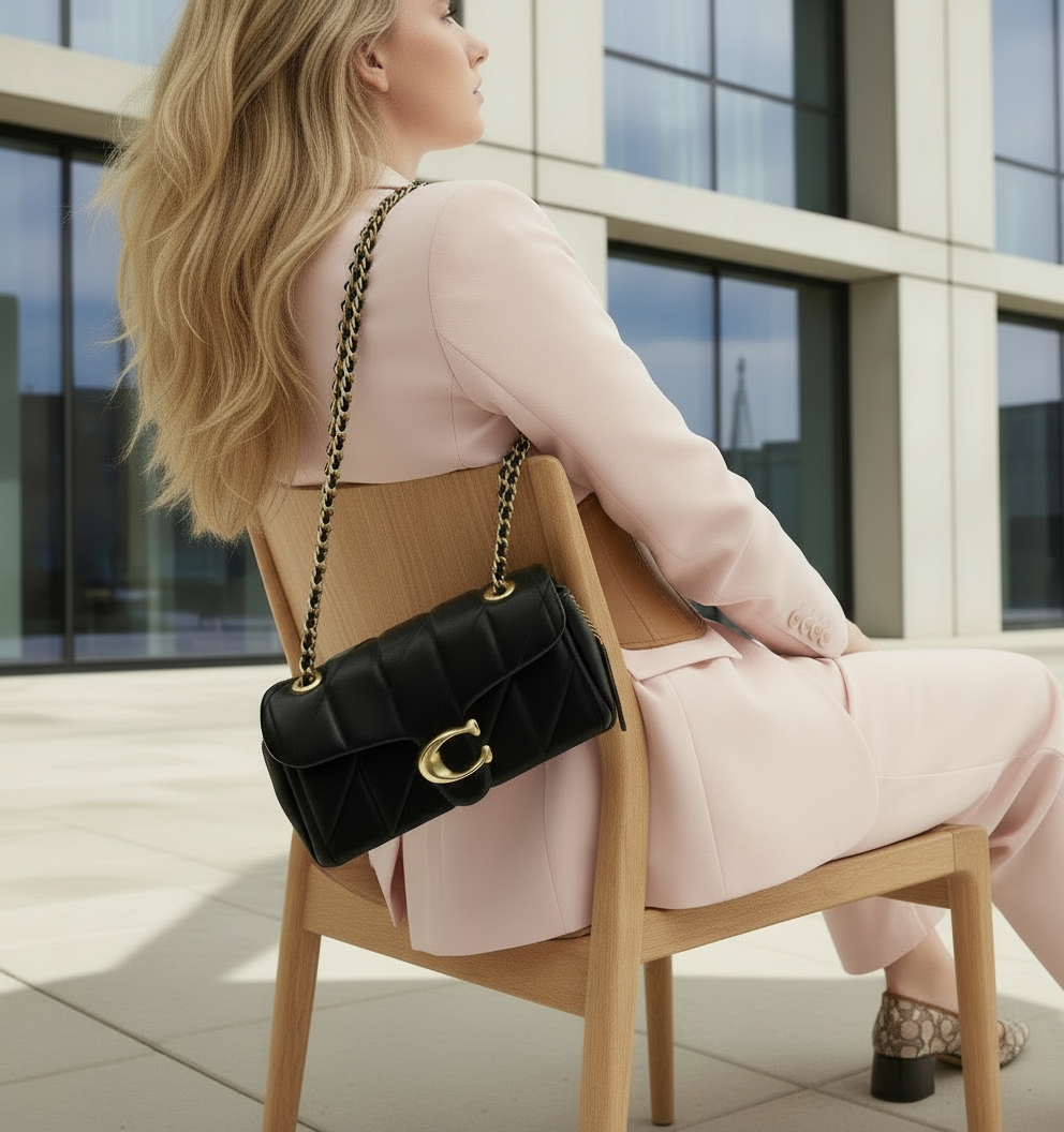 حقيبة كوتش مبطنة بنقشة تابي 20 - أسود - جلد نابا