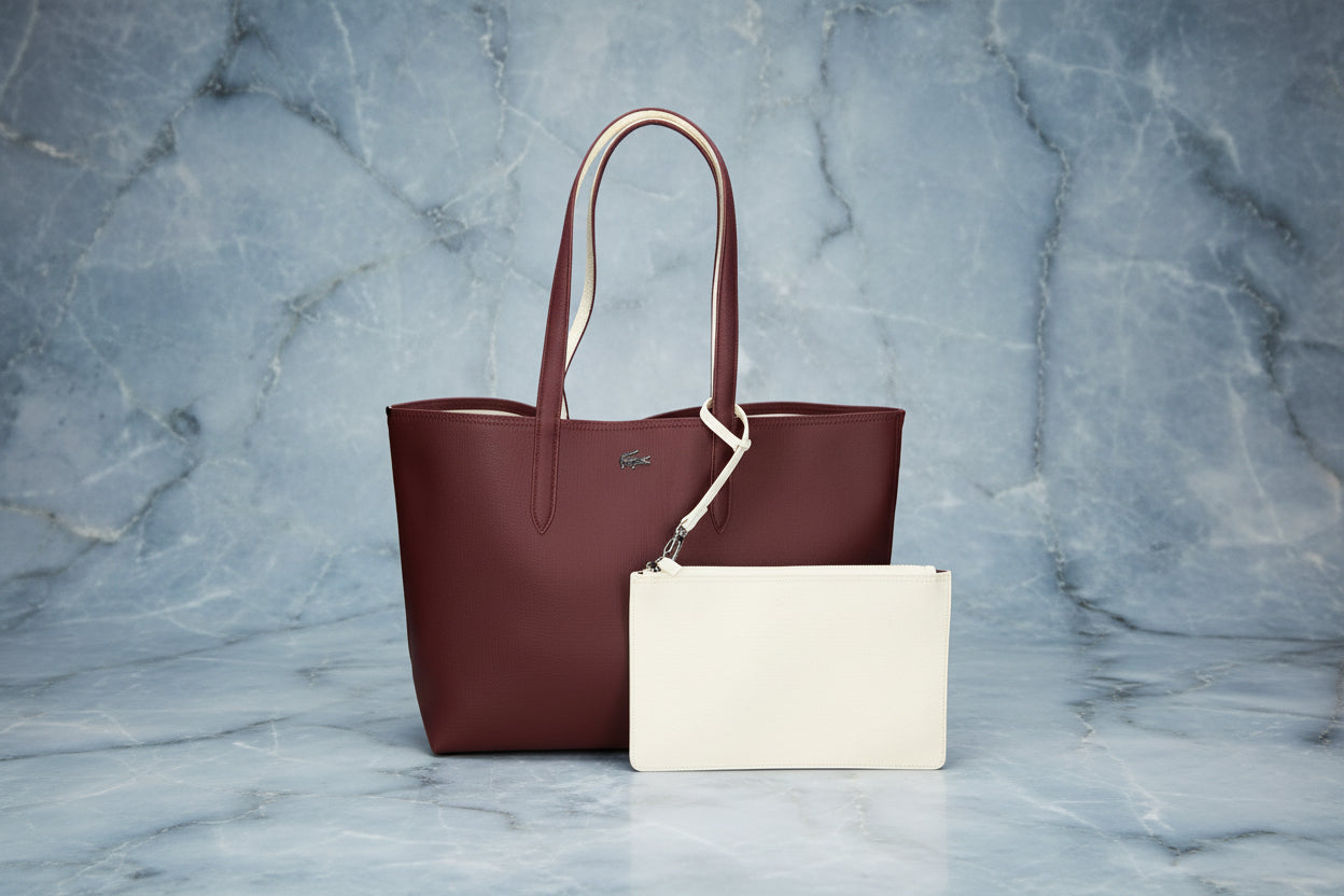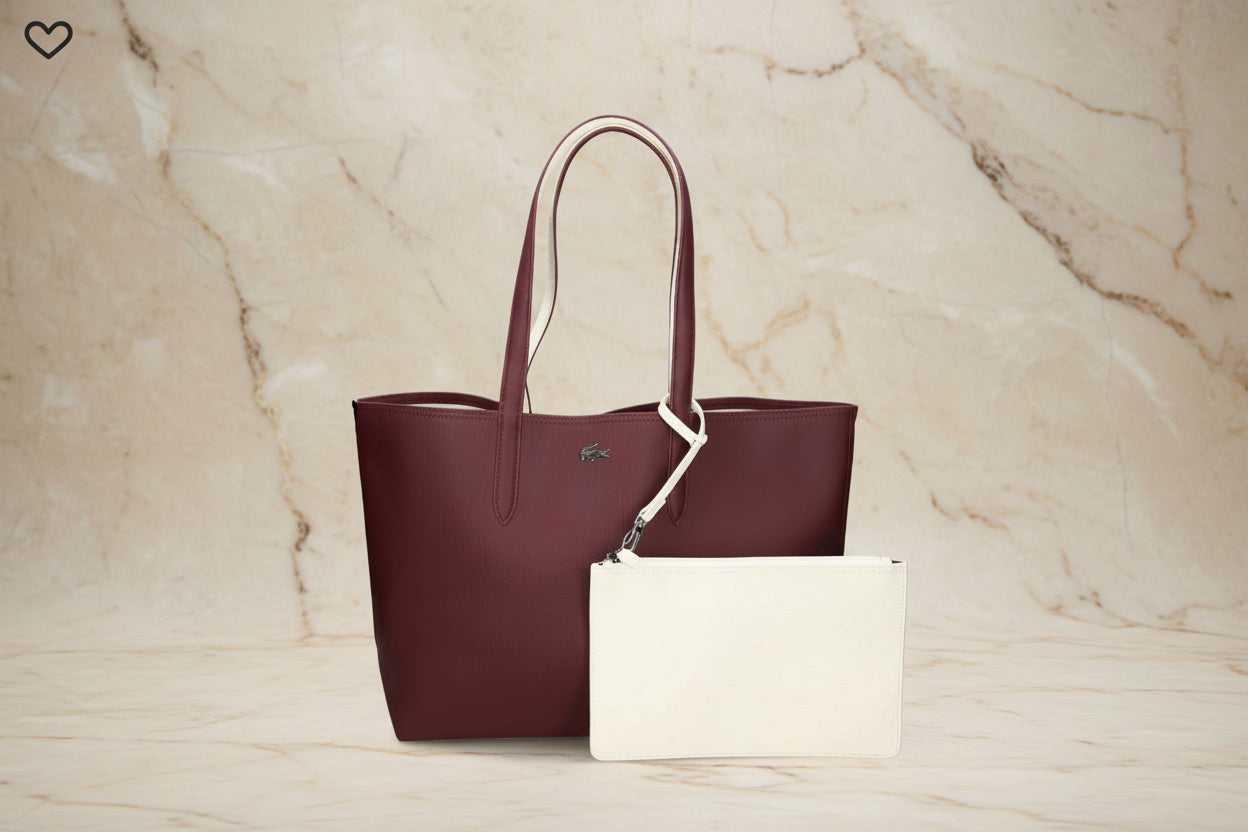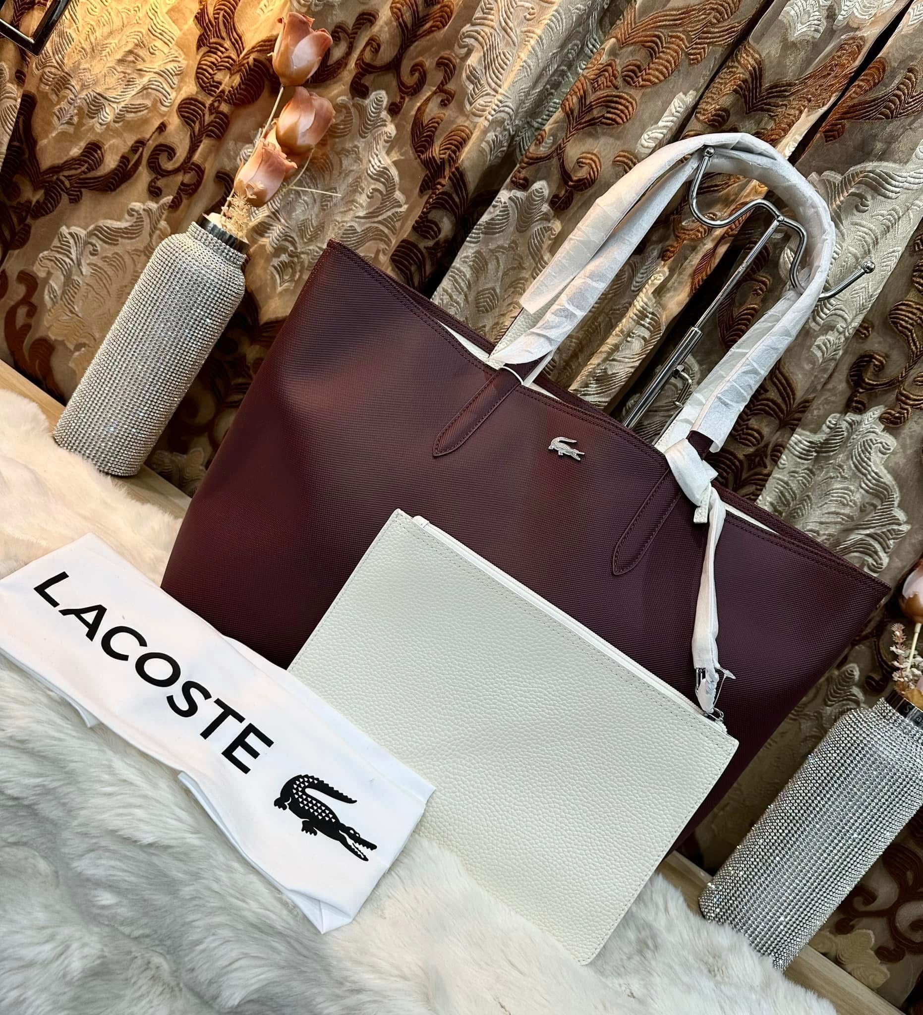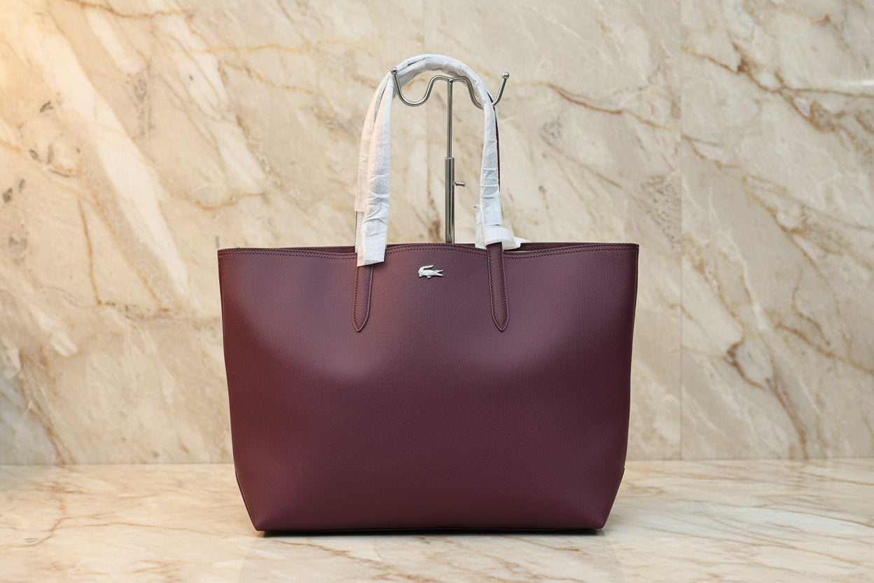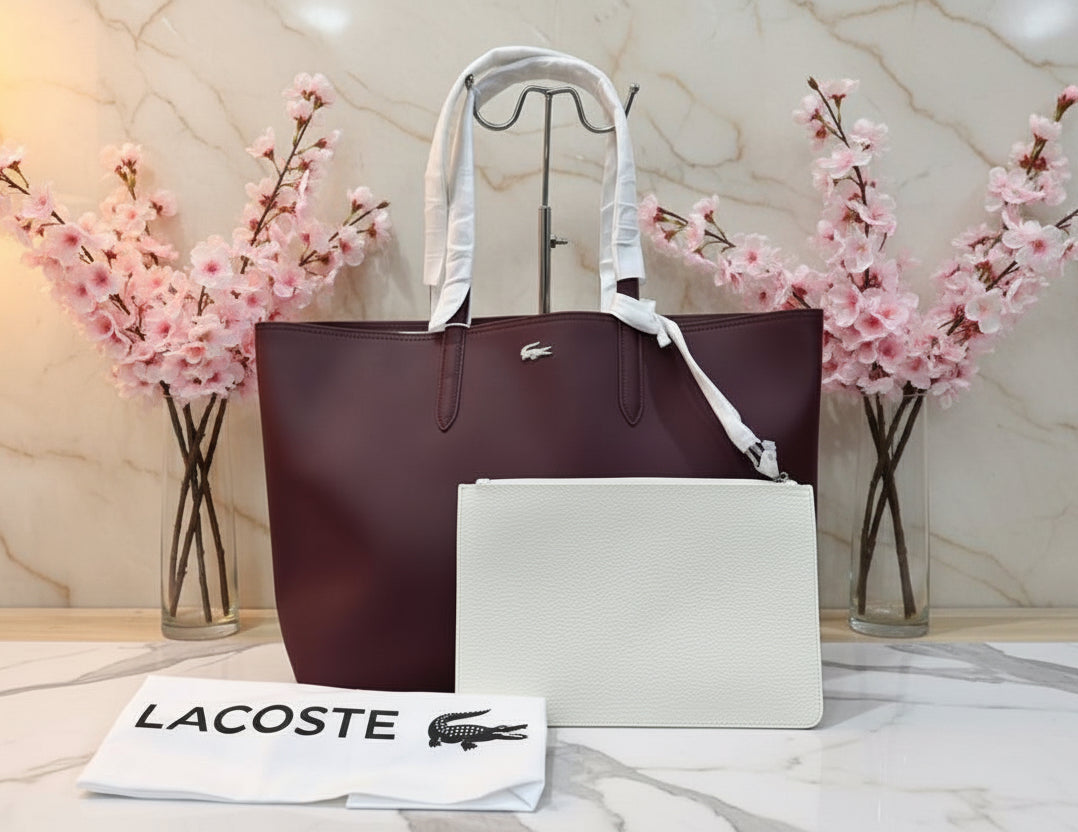 حقيبة لاكوست كبيرة مفتوحة مع جيب كبير - لون عنابي - قابلة للعكس