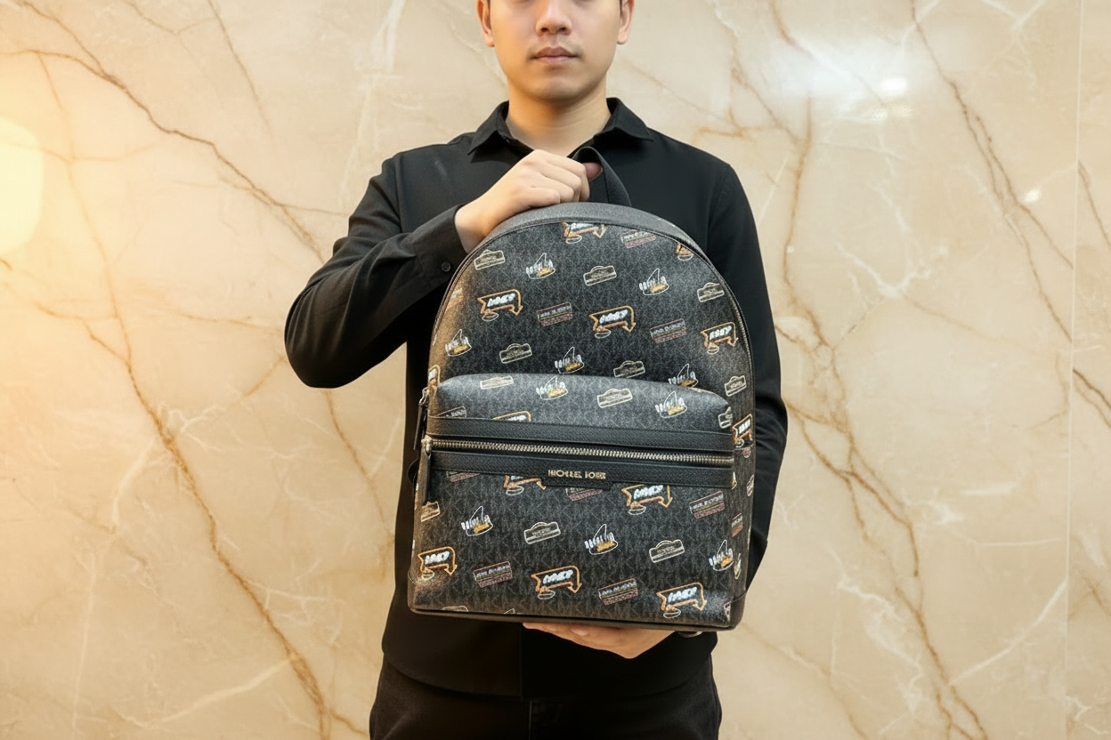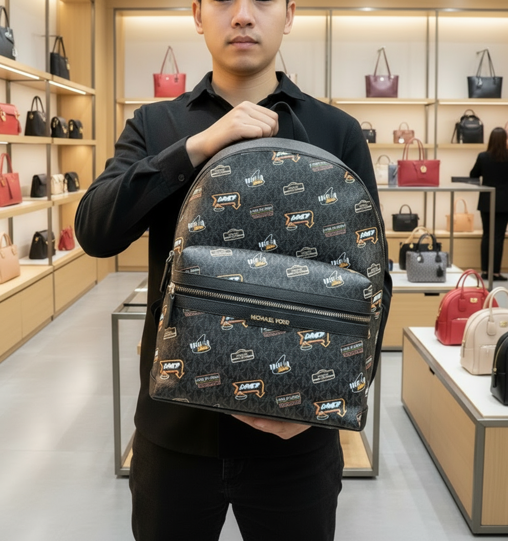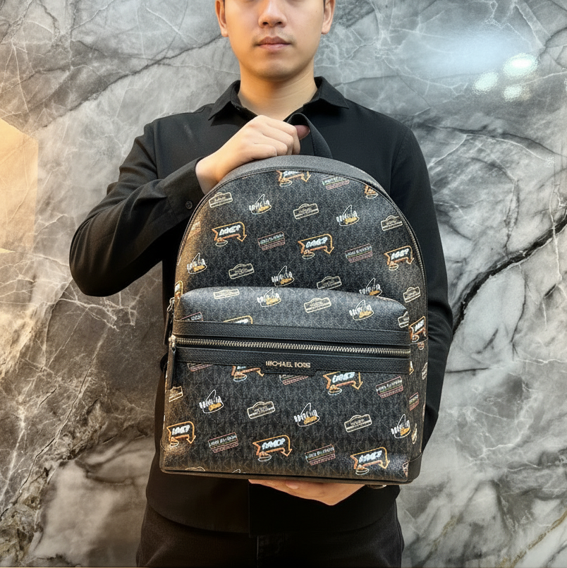 حقيبة ظهر مايكل كورس كوبر مزينة بشعار العلامة التجارية - أسود