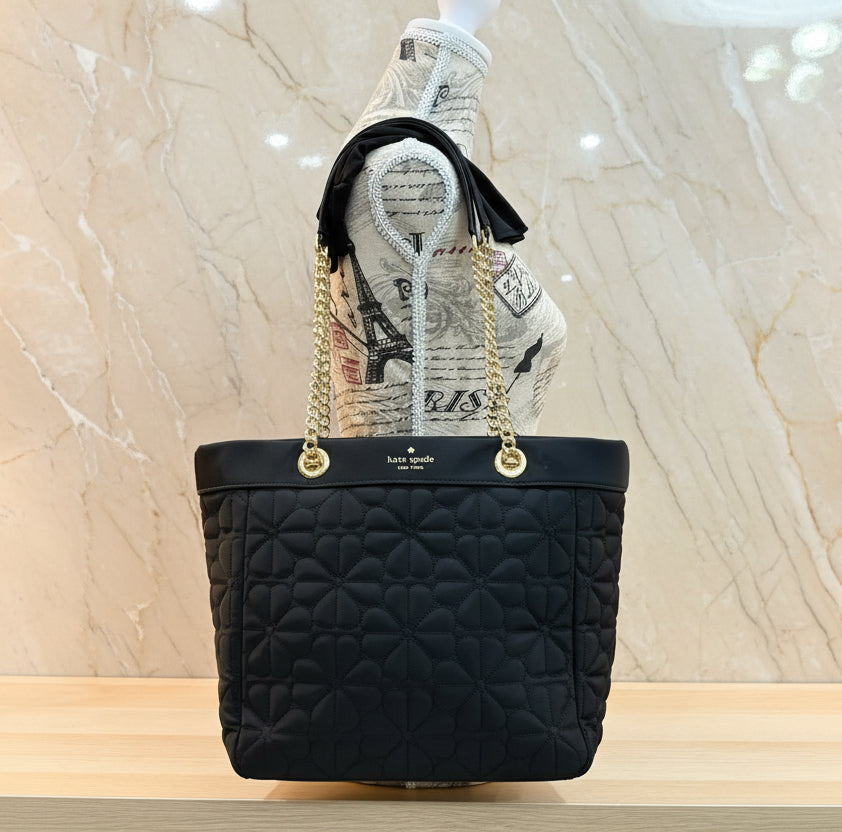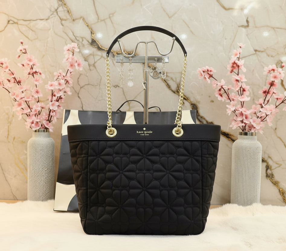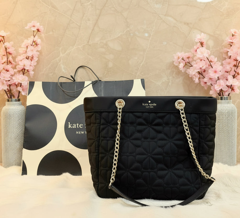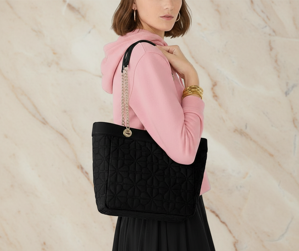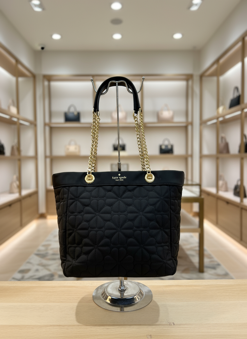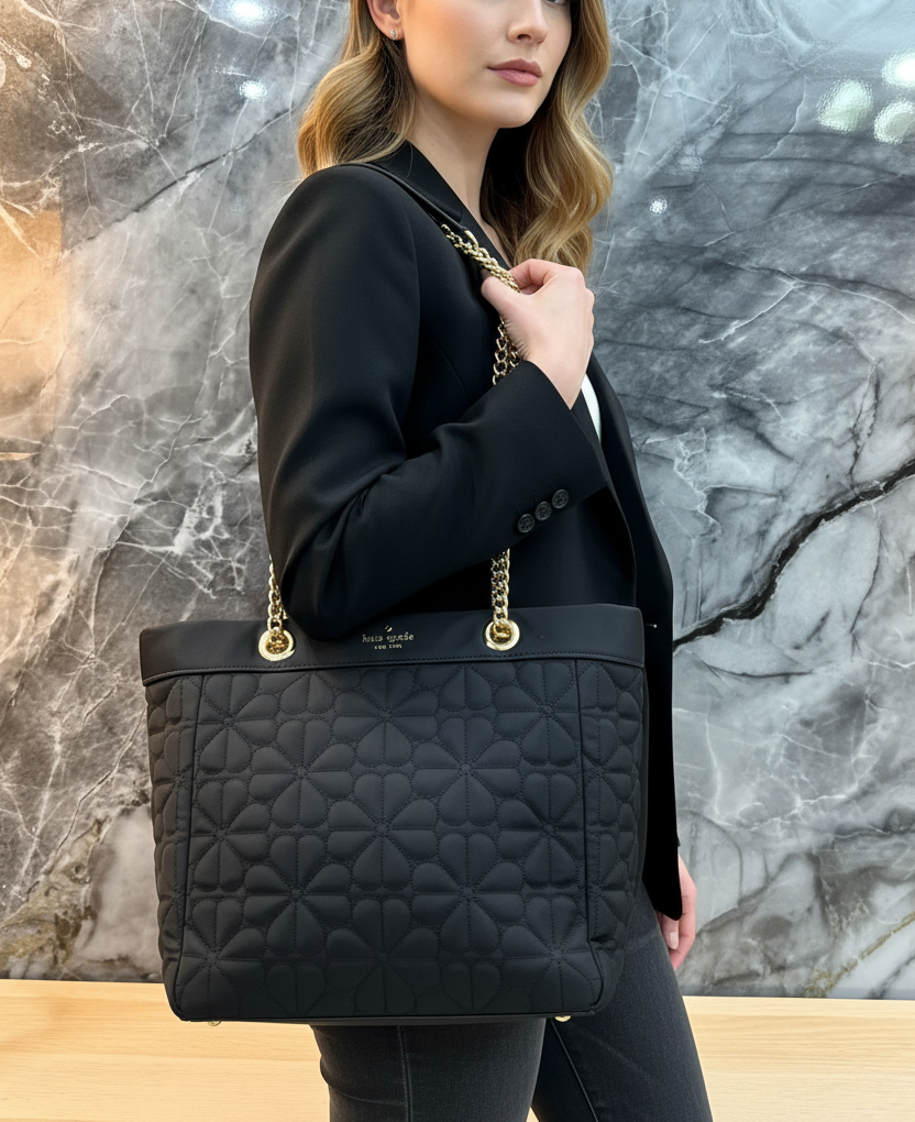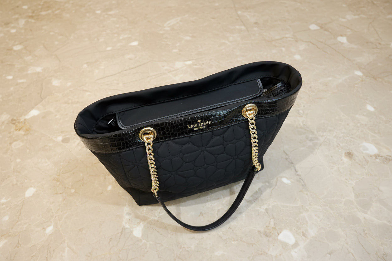 حقيبة كيت سبيد المبطنة والمزينة بالزهور - متوسطة الحجم - سوداء
