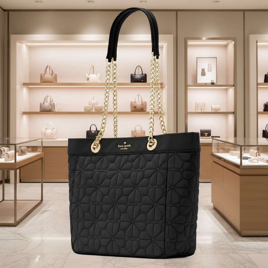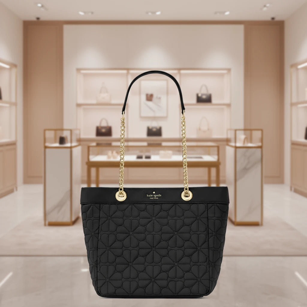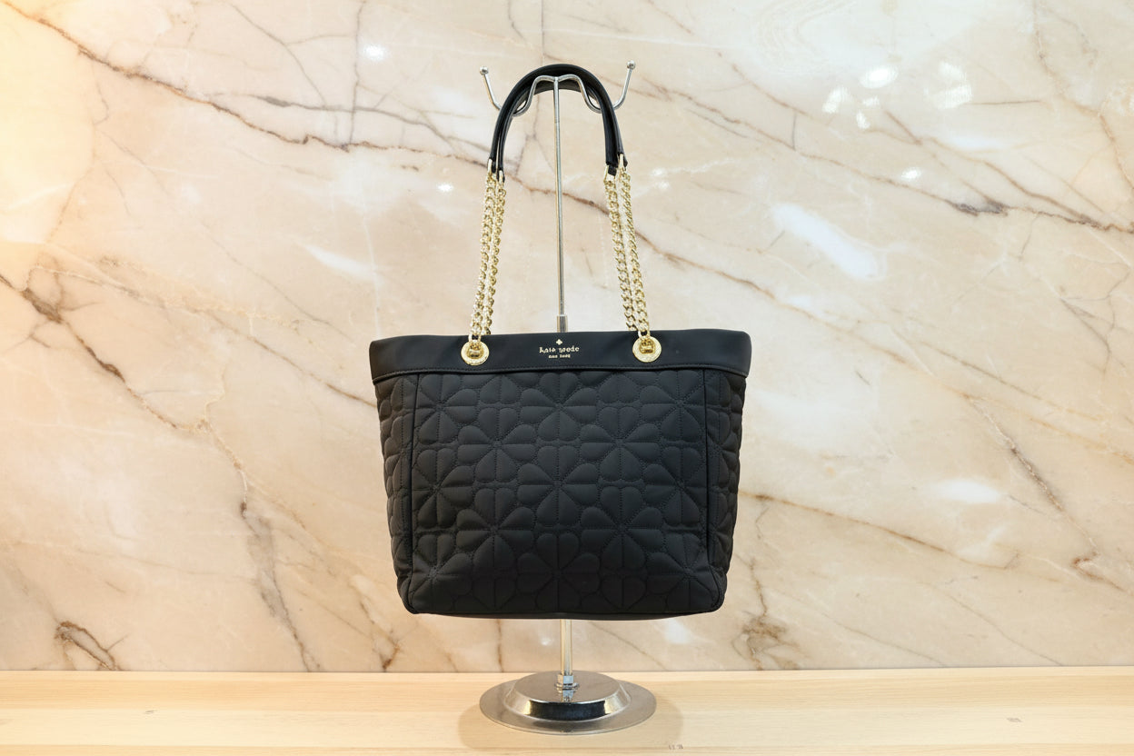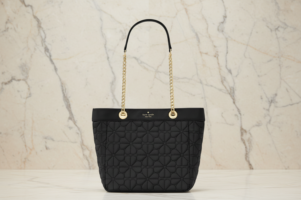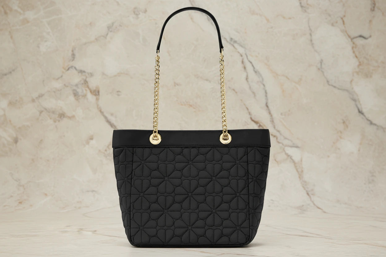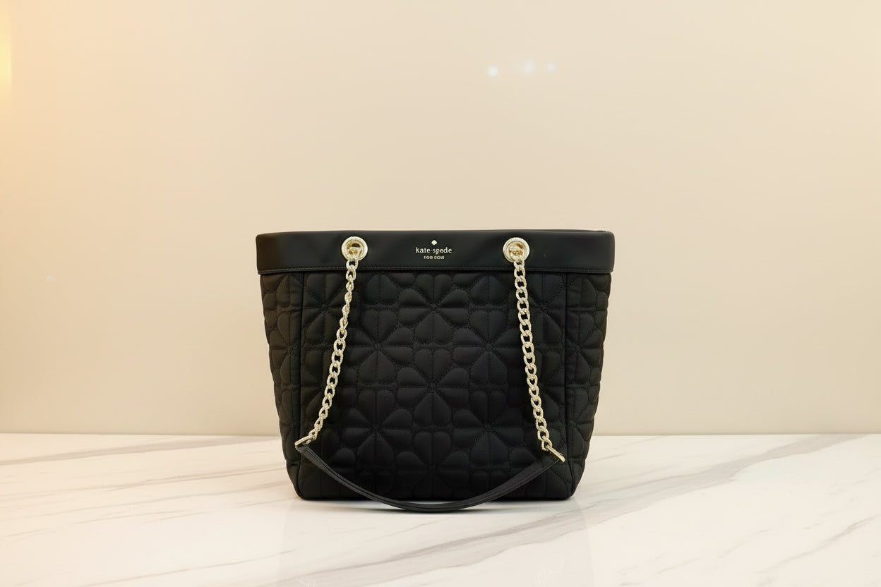 حقيبة كيت سبيد المبطنة والمزينة بالزهور - متوسطة الحجم - سوداء