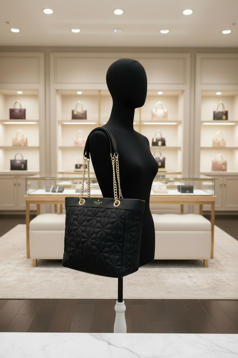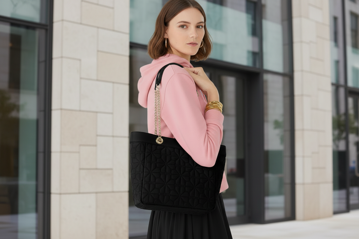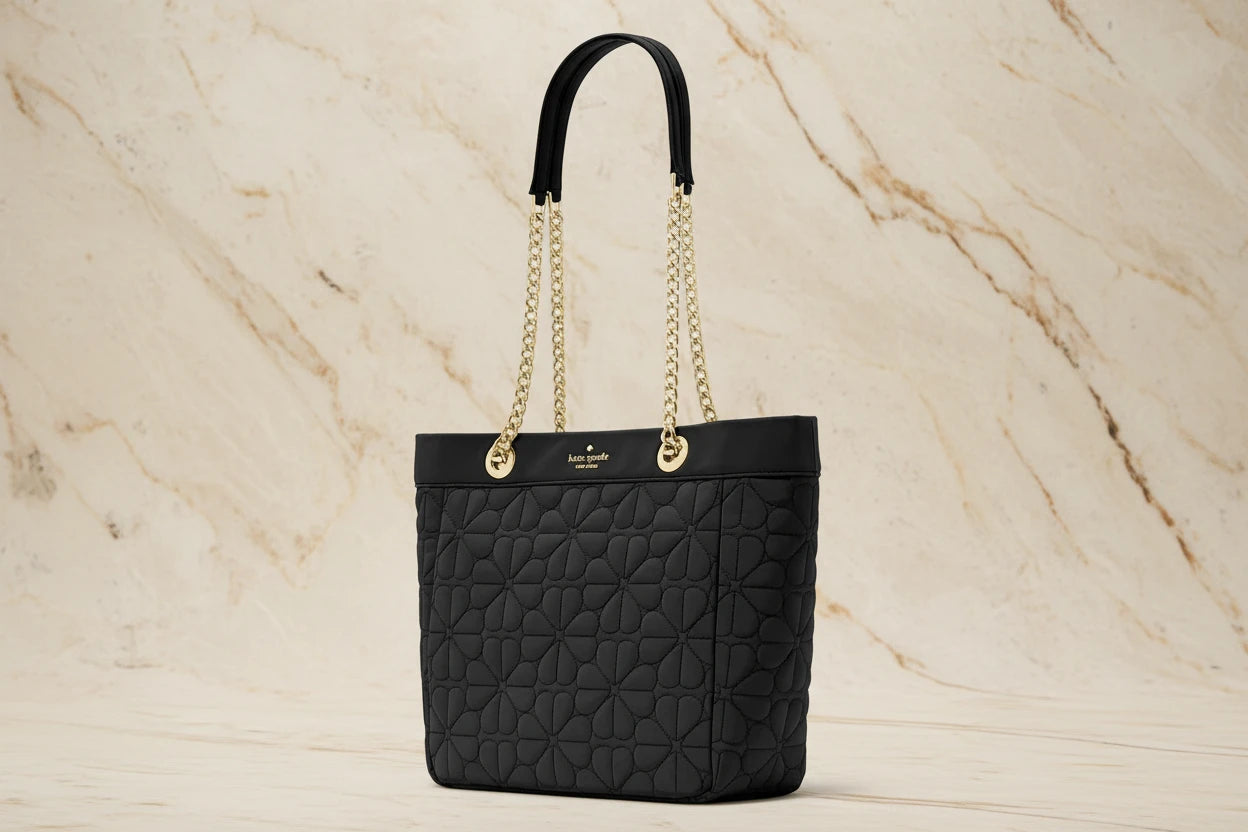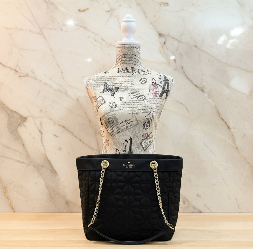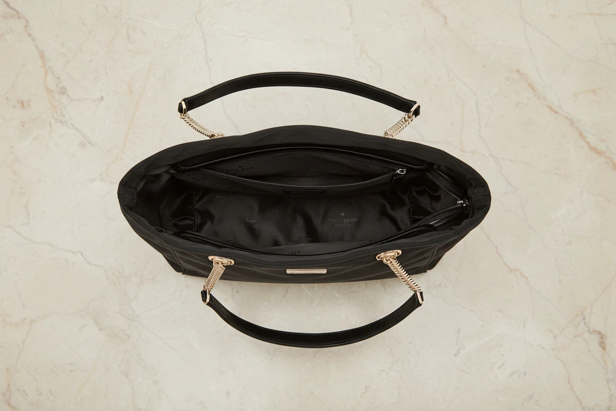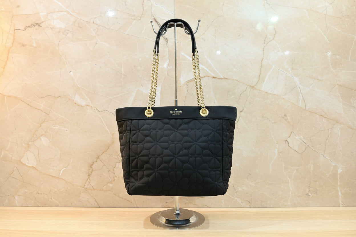 حقيبة كيت سبيد المبطنة والمزينة بالزهور - متوسطة الحجم - سوداء