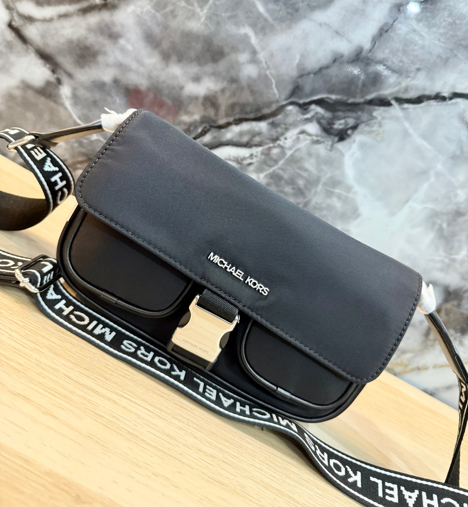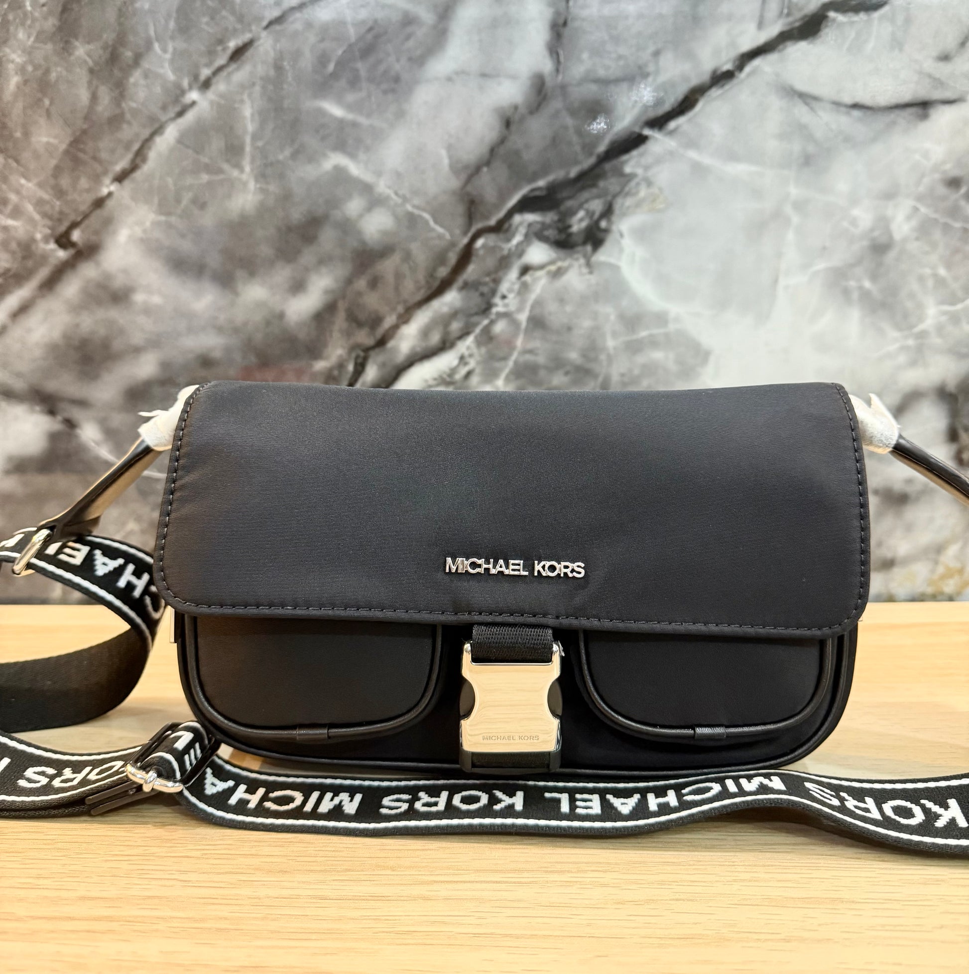 حقيبة مايكل كورس كاي متوسطة الحجم بجيبين وغطاء قلاب