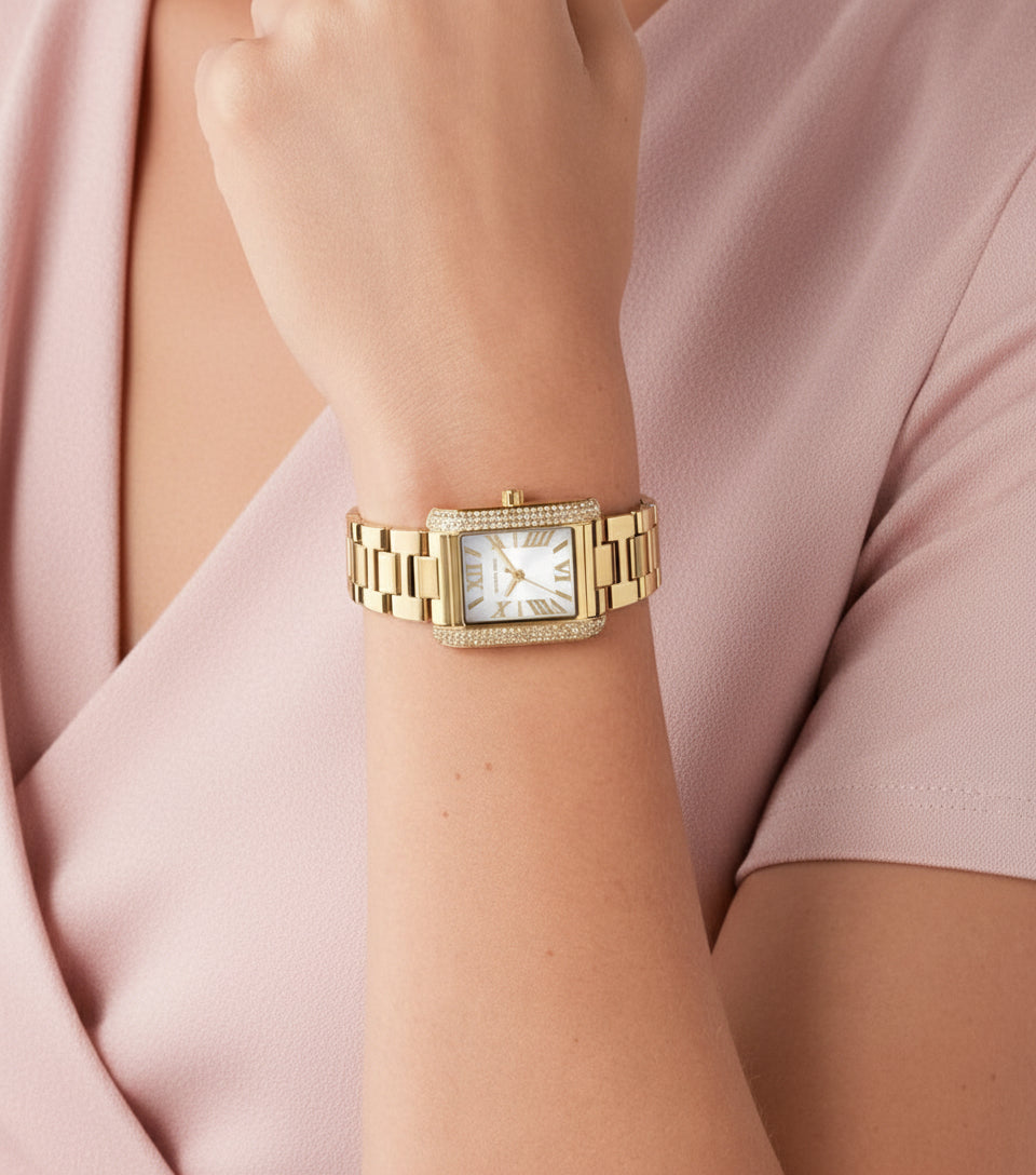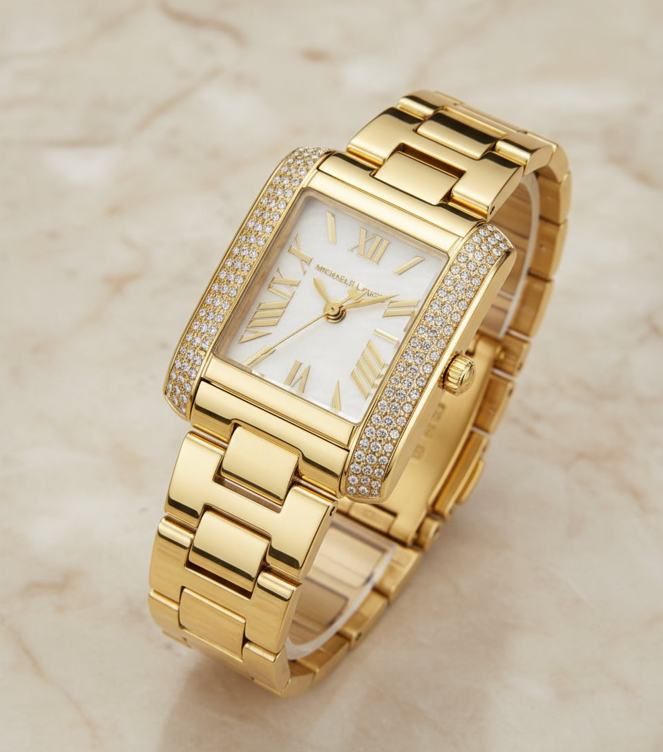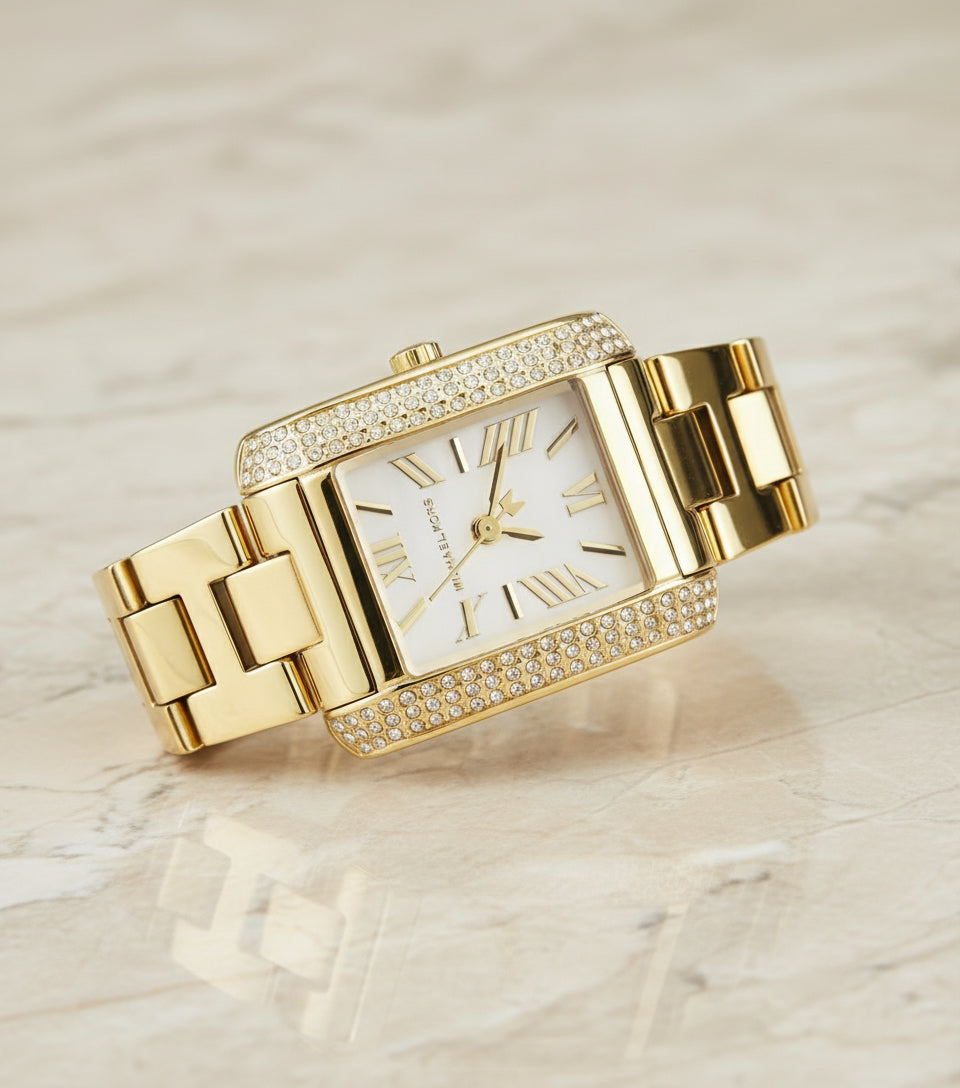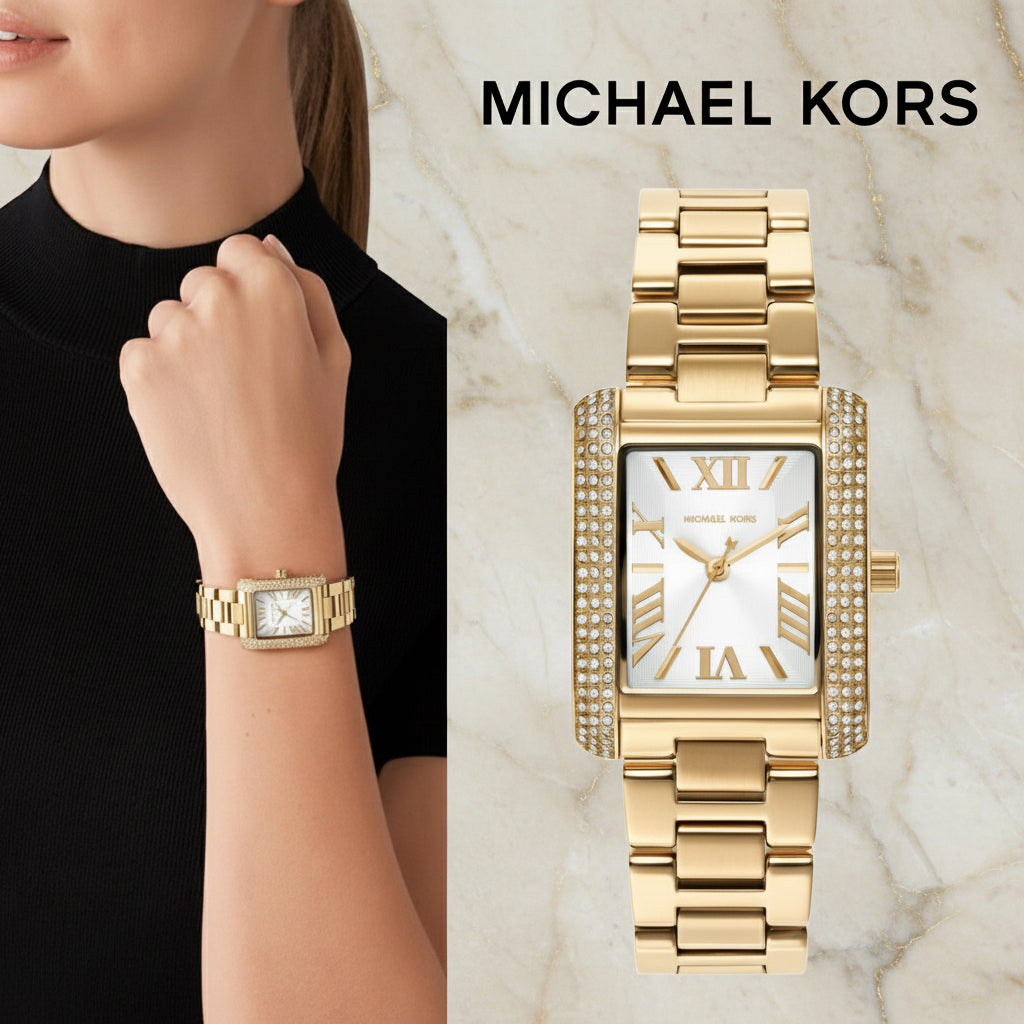 ساعة مايكل كورس إيمري ذهبية اللون - صغيرة مستطيلة