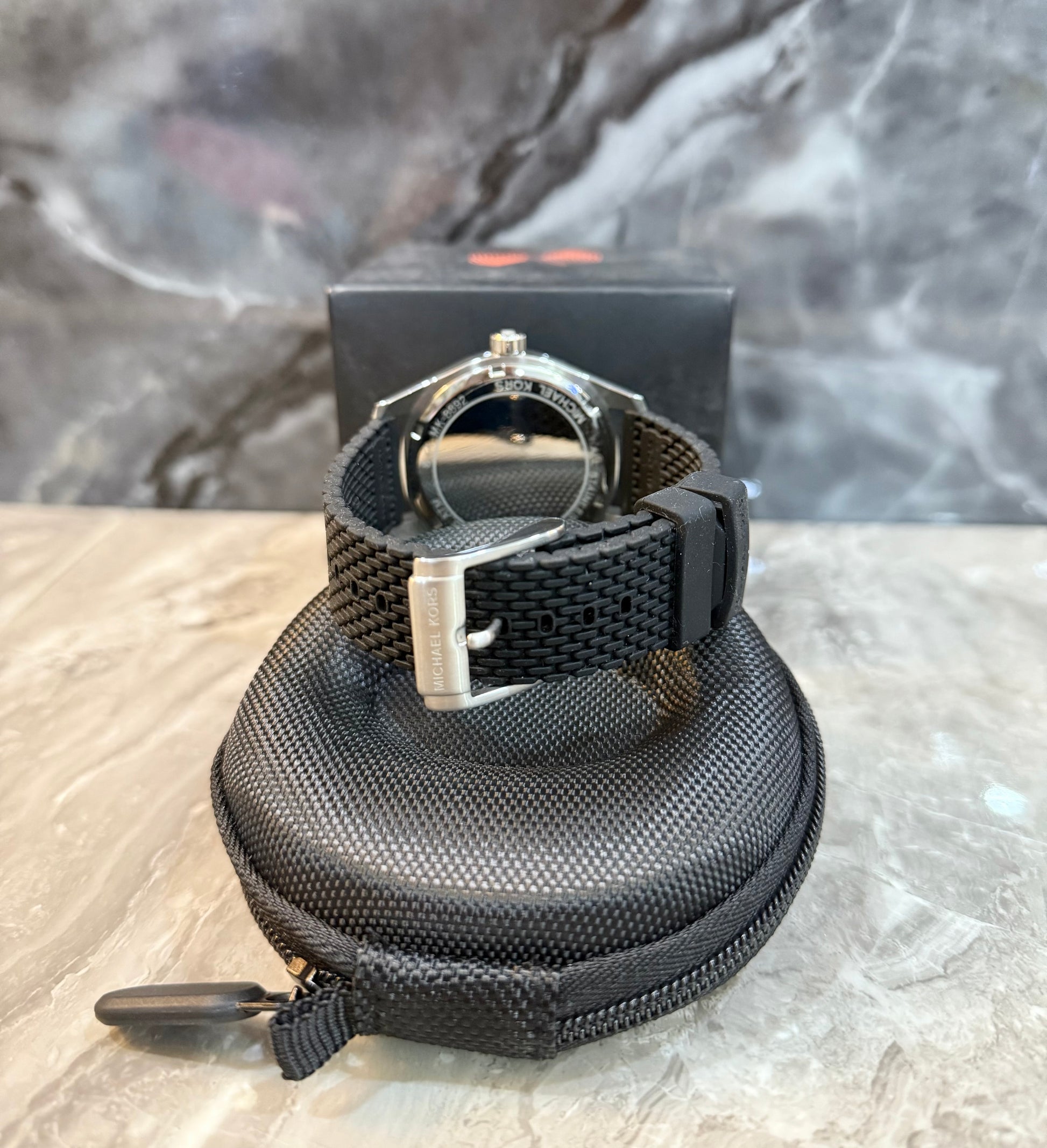 ساعة مايكل كورس لايتون الرجالية المصنوعة من السيليكون الأسود