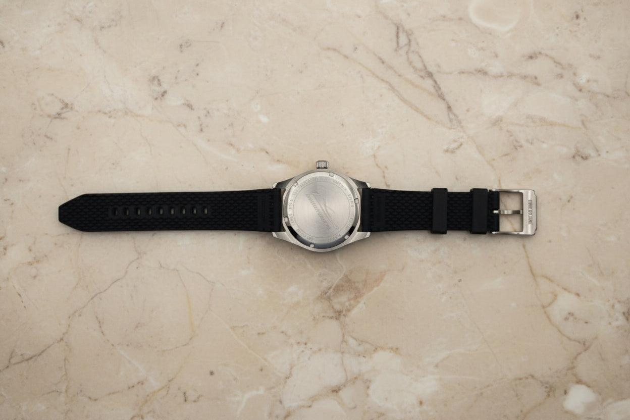 - حزام مريح : يأتي مع حزام سيليكون أسود، بعرض 22 مم، مثبت بإبزيم حزام ذي شوكة واحدة، مما يوفر الراحة والملاءمة الآمنة.