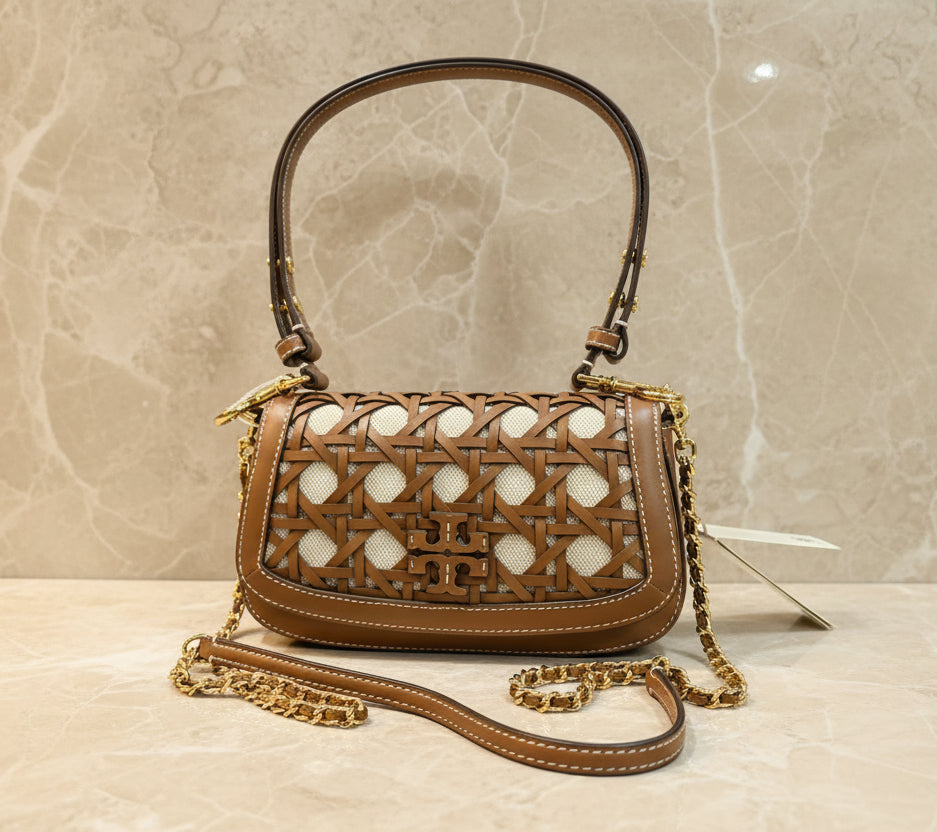 حقيبة كتف/حقيبة يد قابلة للتحويل من قماش بريتن المنسوج من توري بورش - لون موس