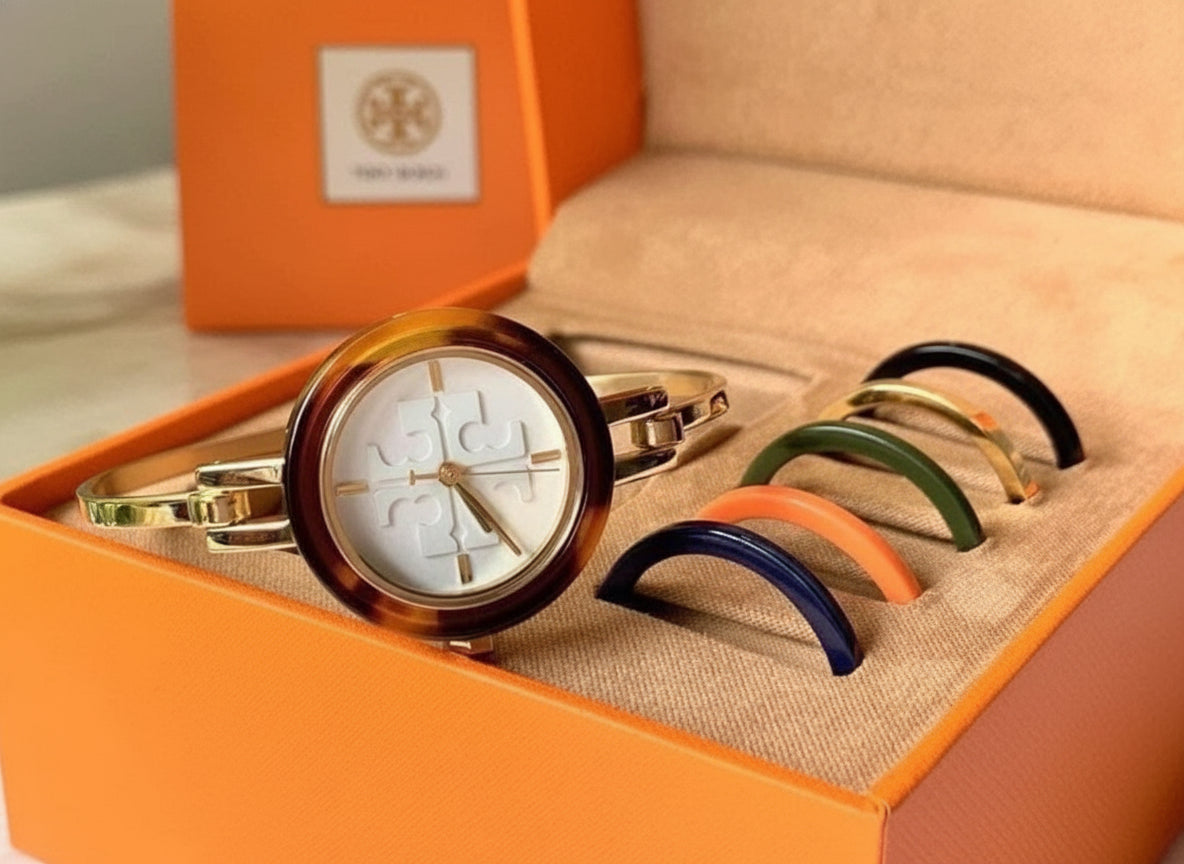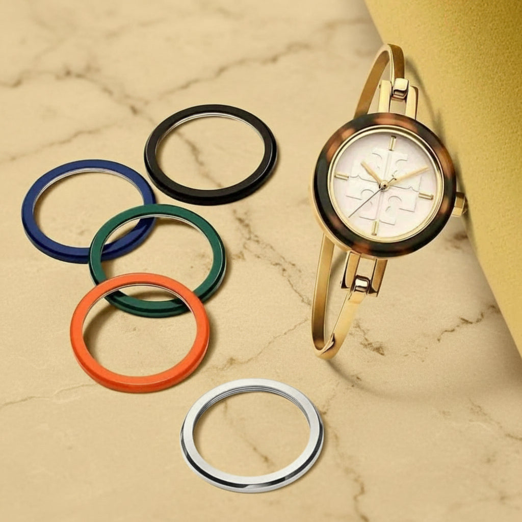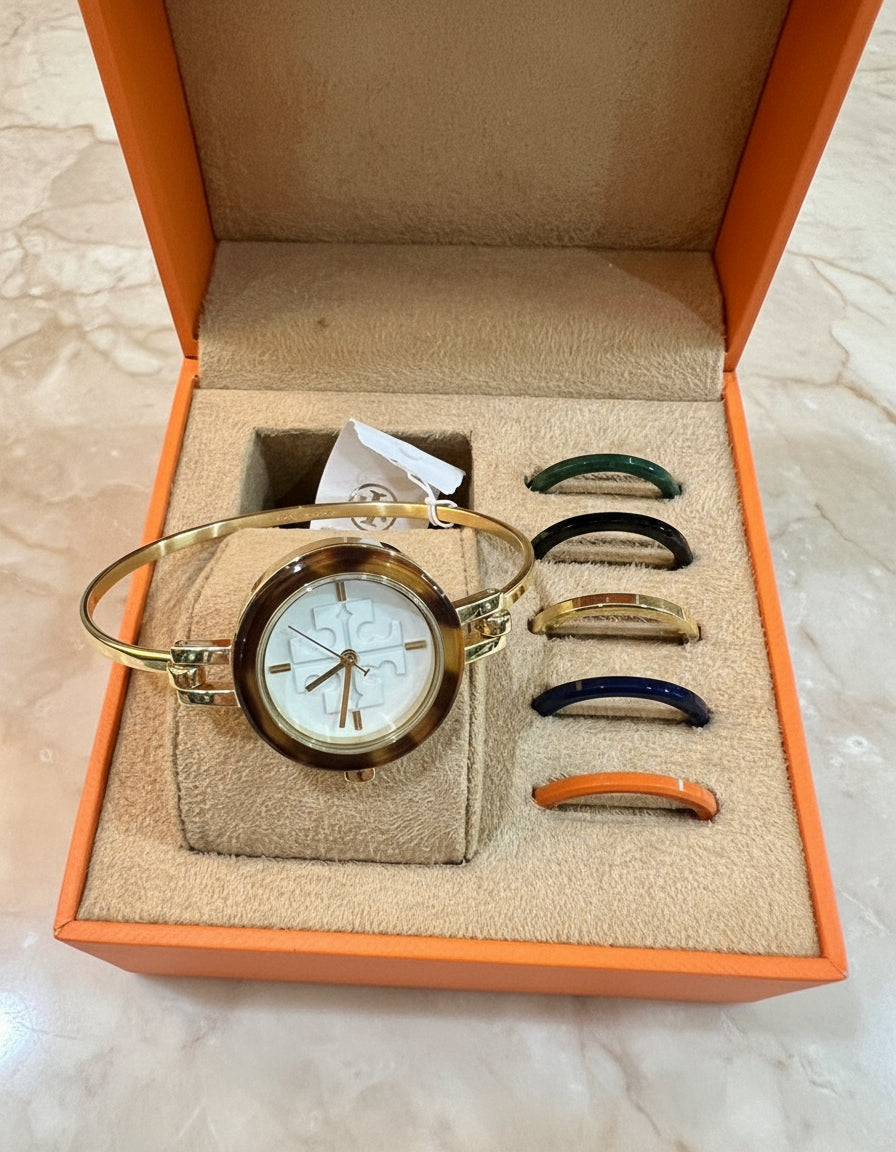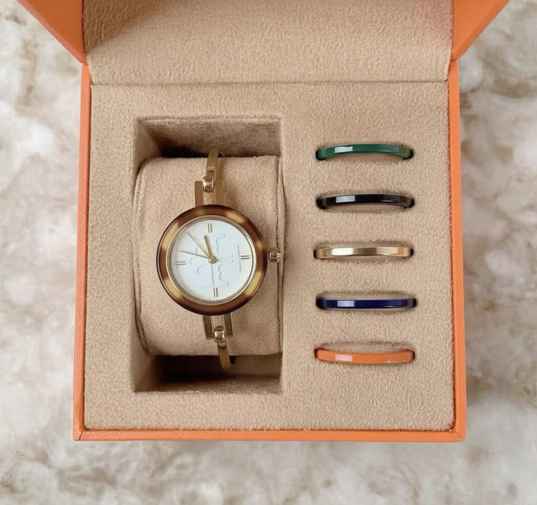 تتضمن هذه الساعة الأنيقة من توري بورش 6 أغطية أكريليك قابلة للتبديل بألوان وتشطيبات متنوعة. ويزين شعار العلامة التجارية ميناء الساعة الصغير. مزودة بمشبك خطافي.