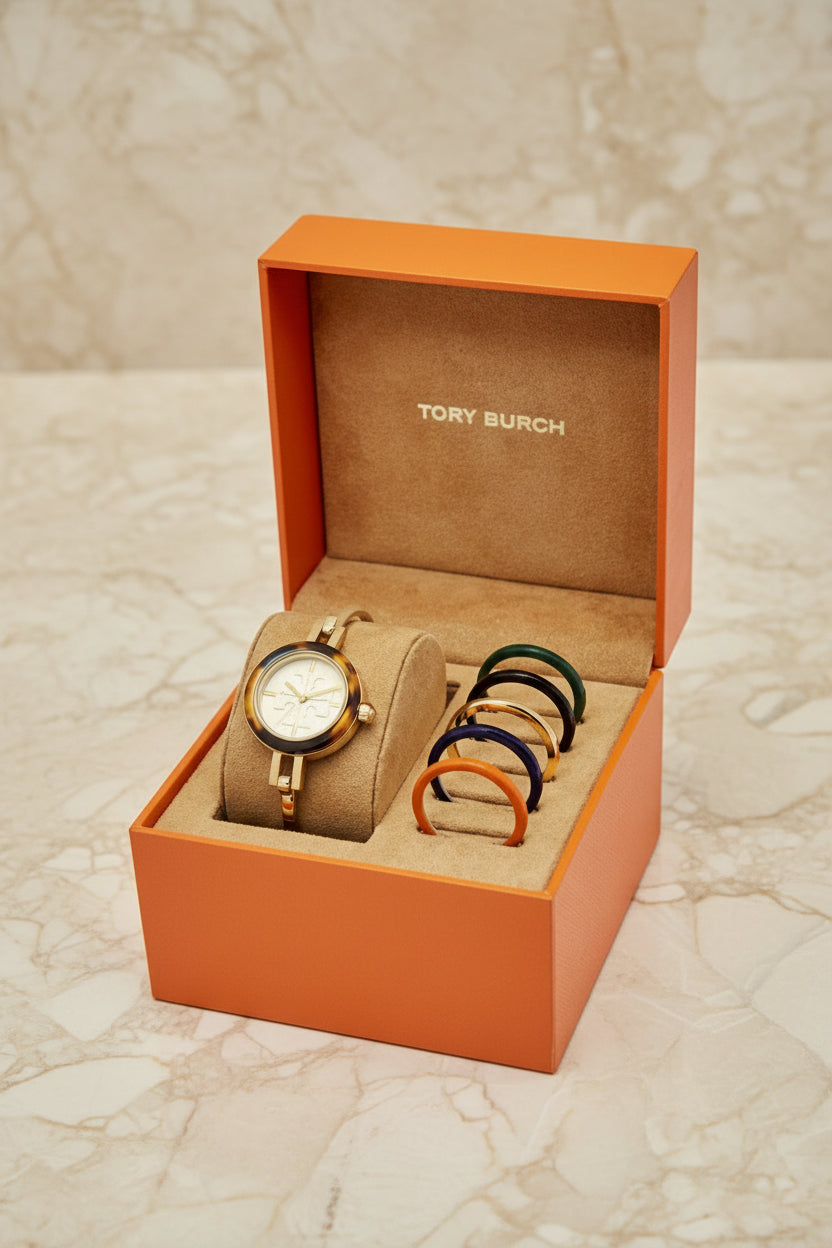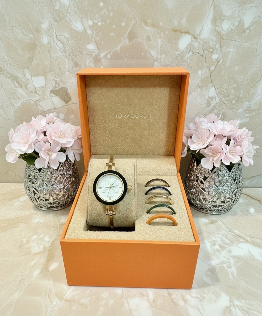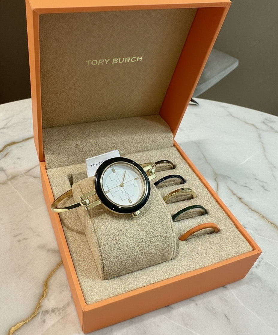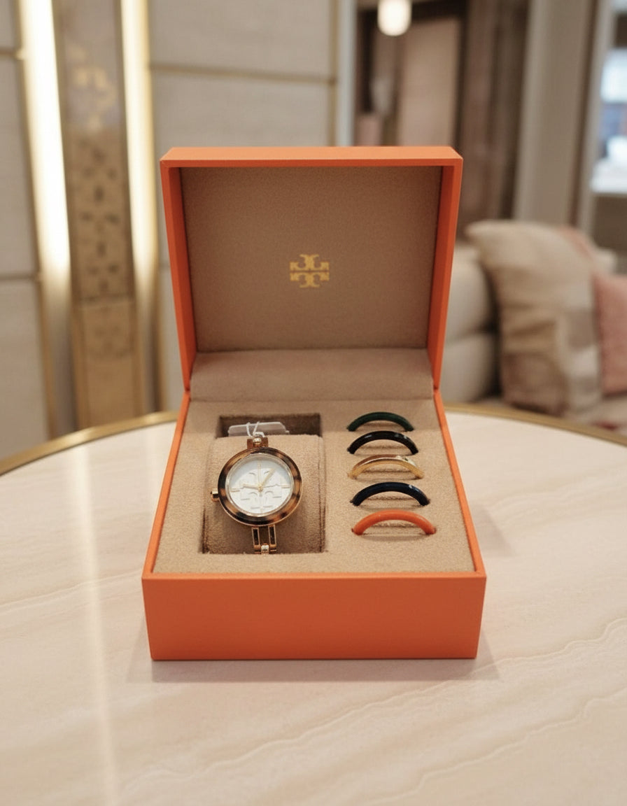 تتضمن هذه الساعة الأنيقة من توري بورش 6 أغطية أكريليك قابلة للتبديل بألوان وتشطيبات متنوعة. ويزين شعار العلامة التجارية ميناء الساعة الصغير. مزودة بمشبك خطافي.