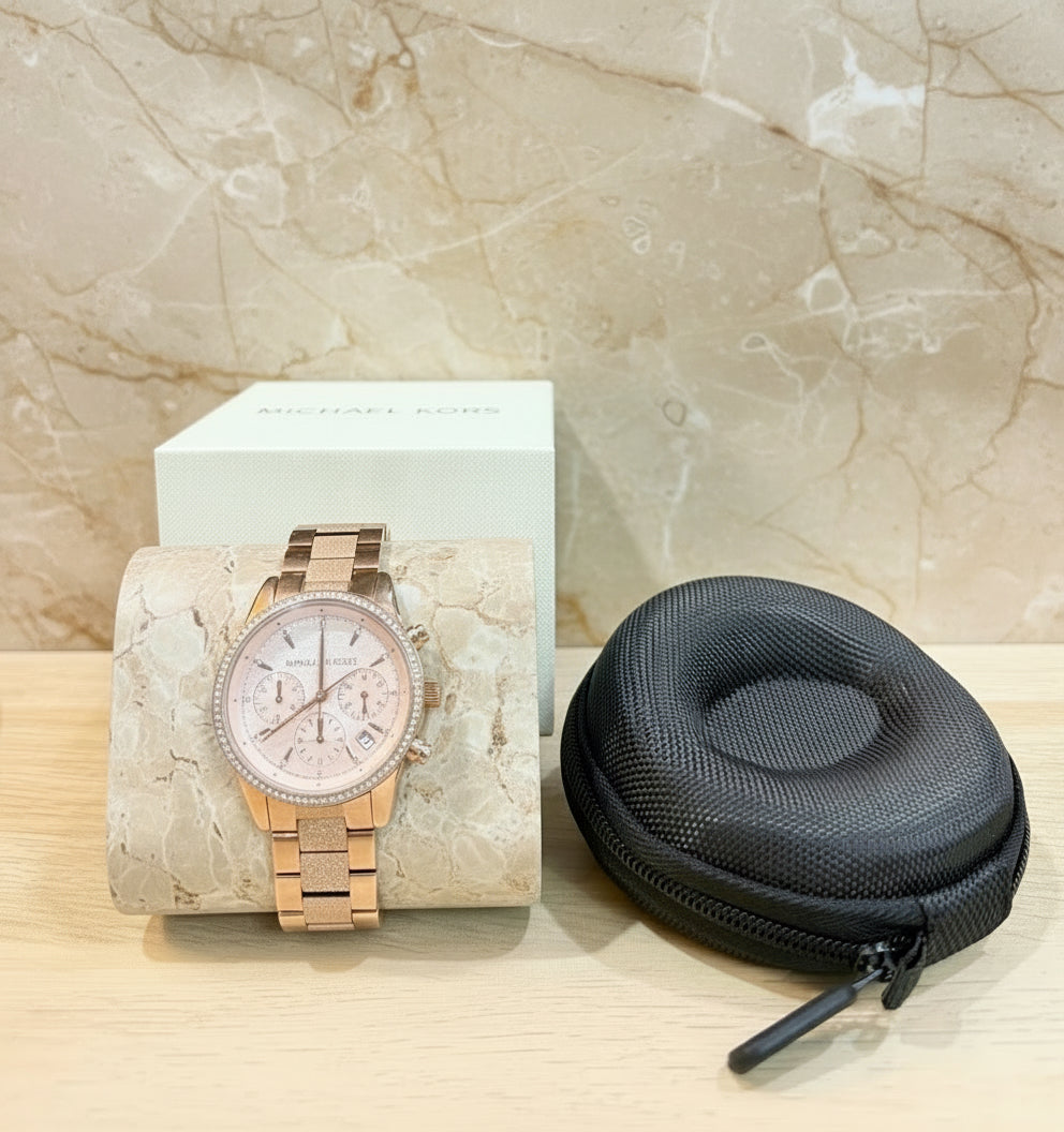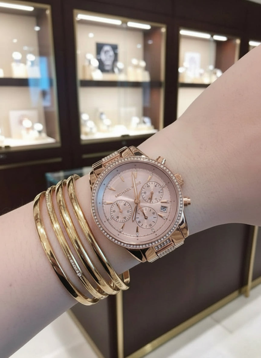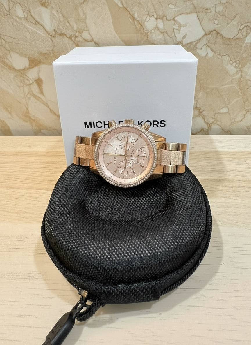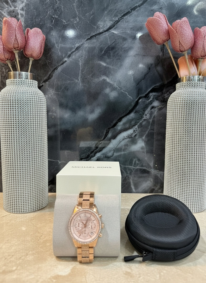 ساعة مايكل كورس متوسطة الحجم - لون ذهبي وردي - علبة ساعة مجانية