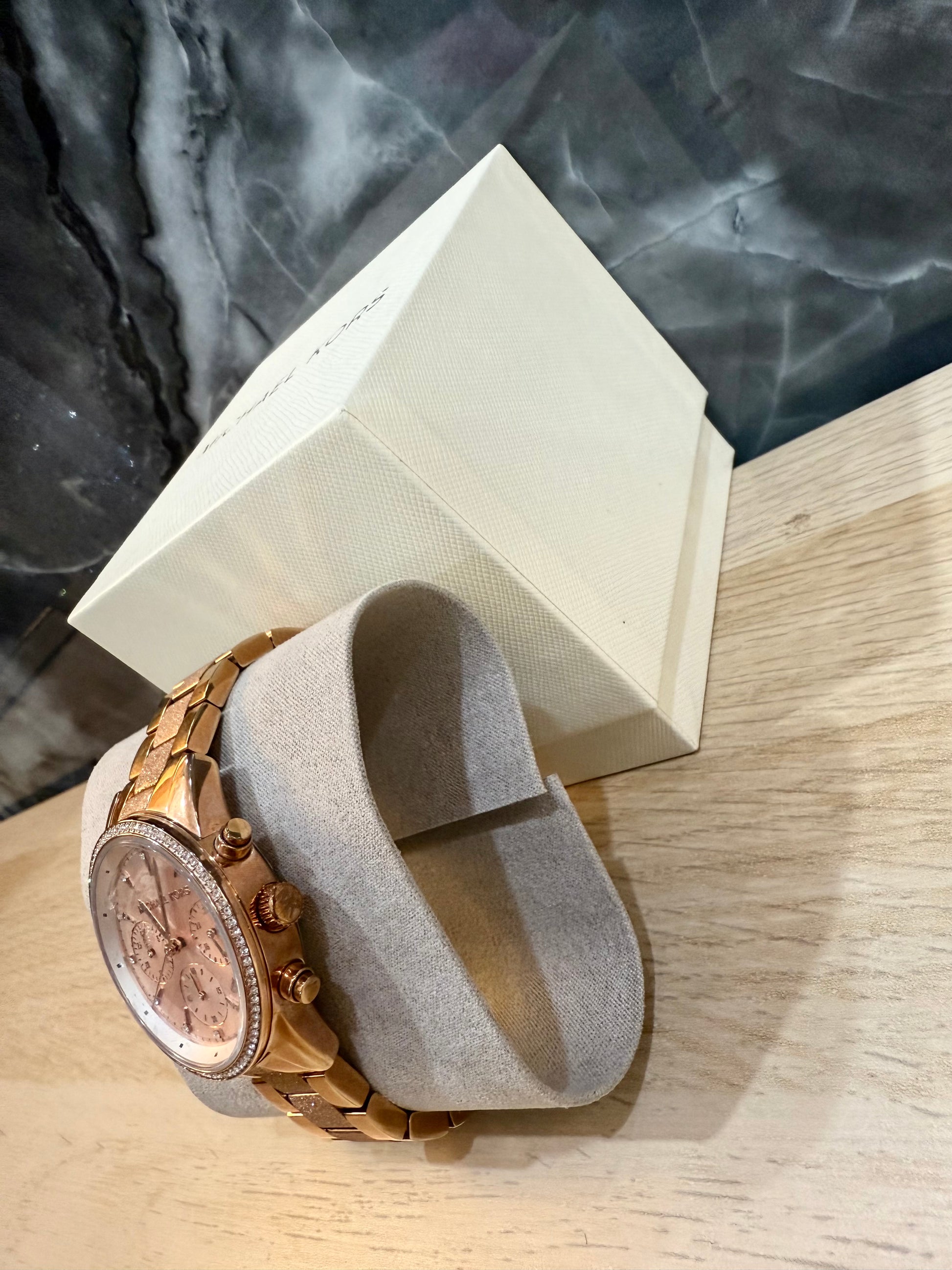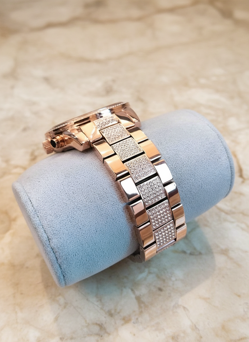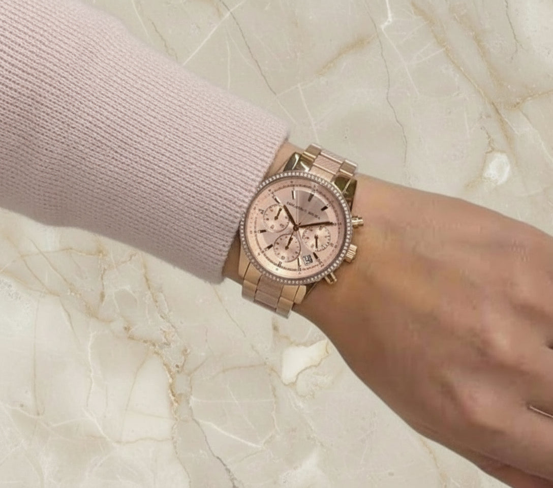 ساعة مايكل كورس متوسطة الحجم - لون ذهبي وردي - علبة ساعة مجانية