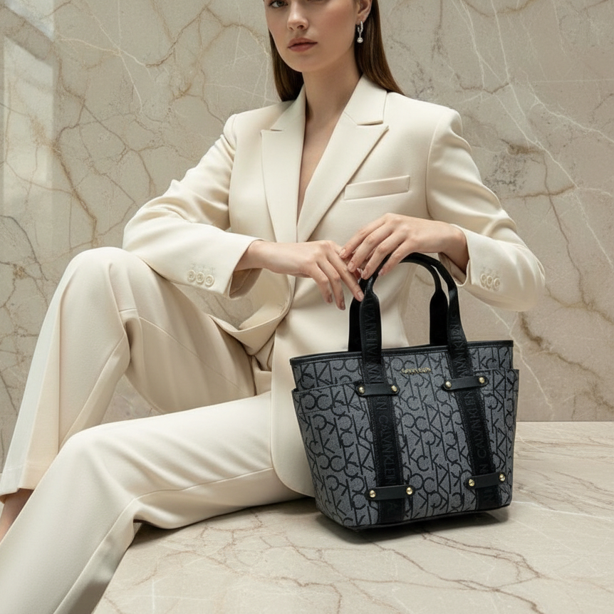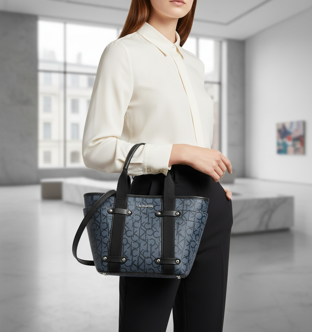 CALVIN KLEIN SATCHEL IN SIGNATURE CHARCOAL BLACK