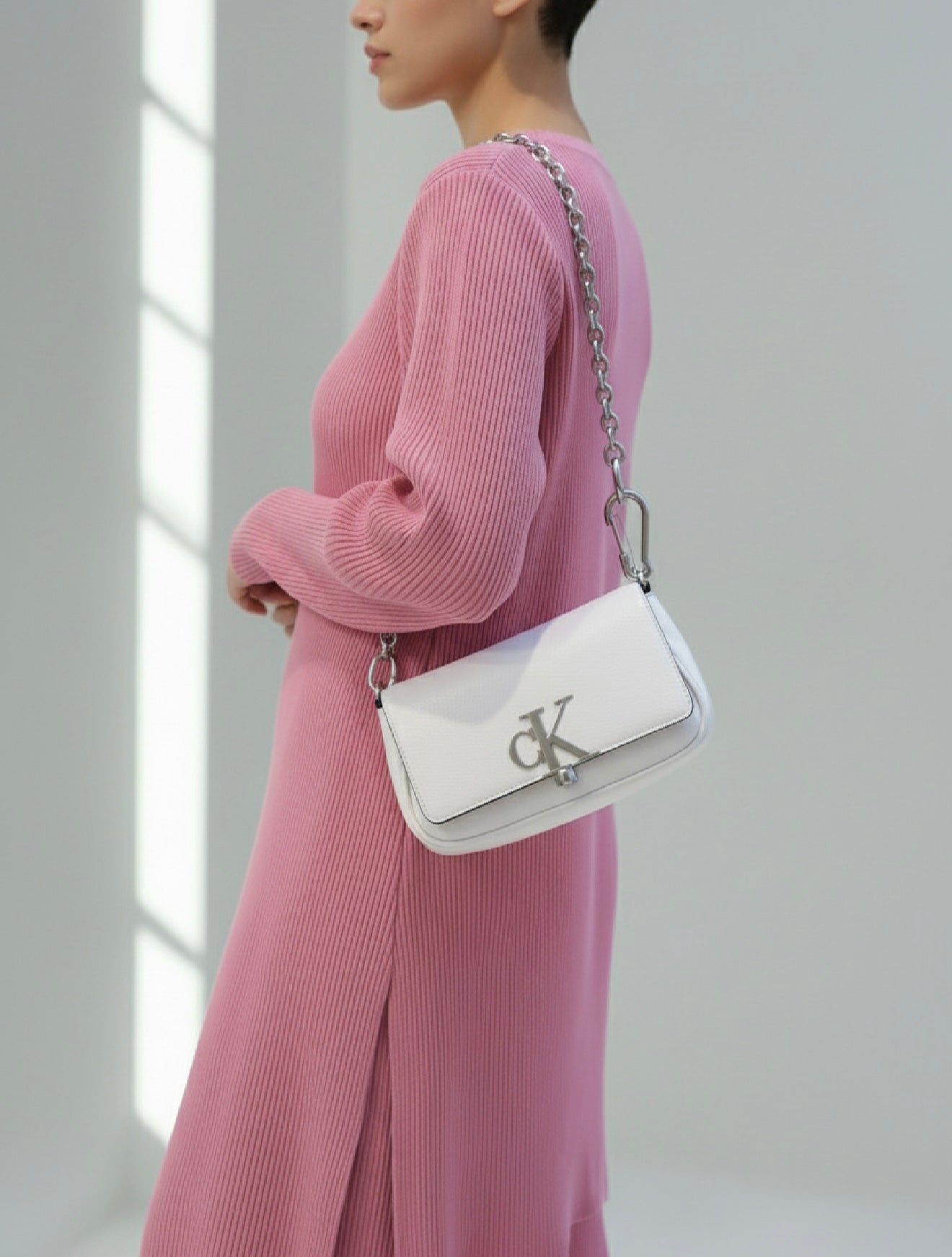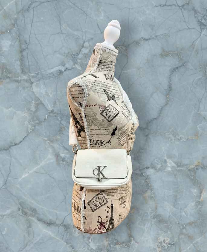 CALVIN KLEIN CHAIN CROSSBODY BAG - SILVER BIRCH