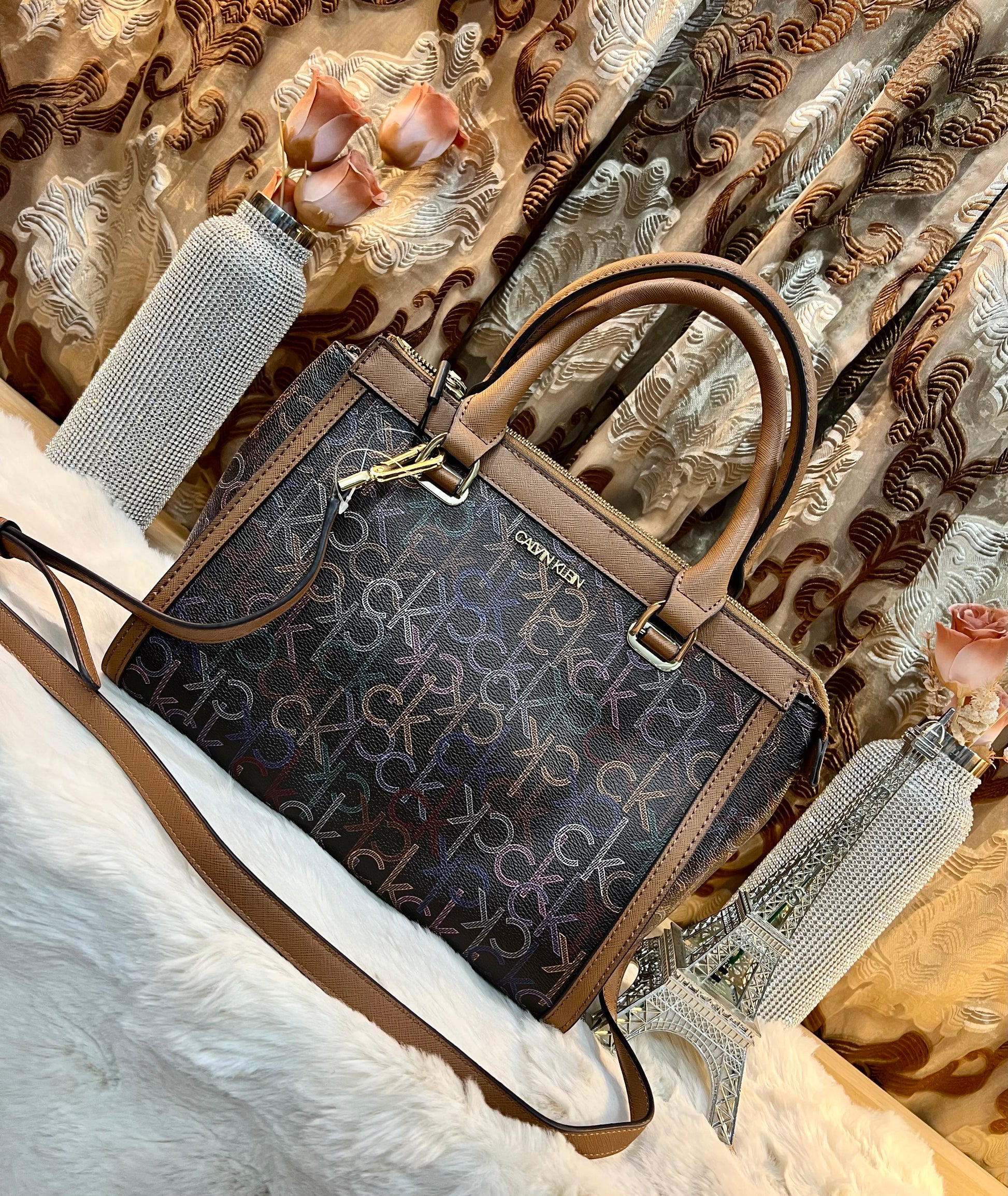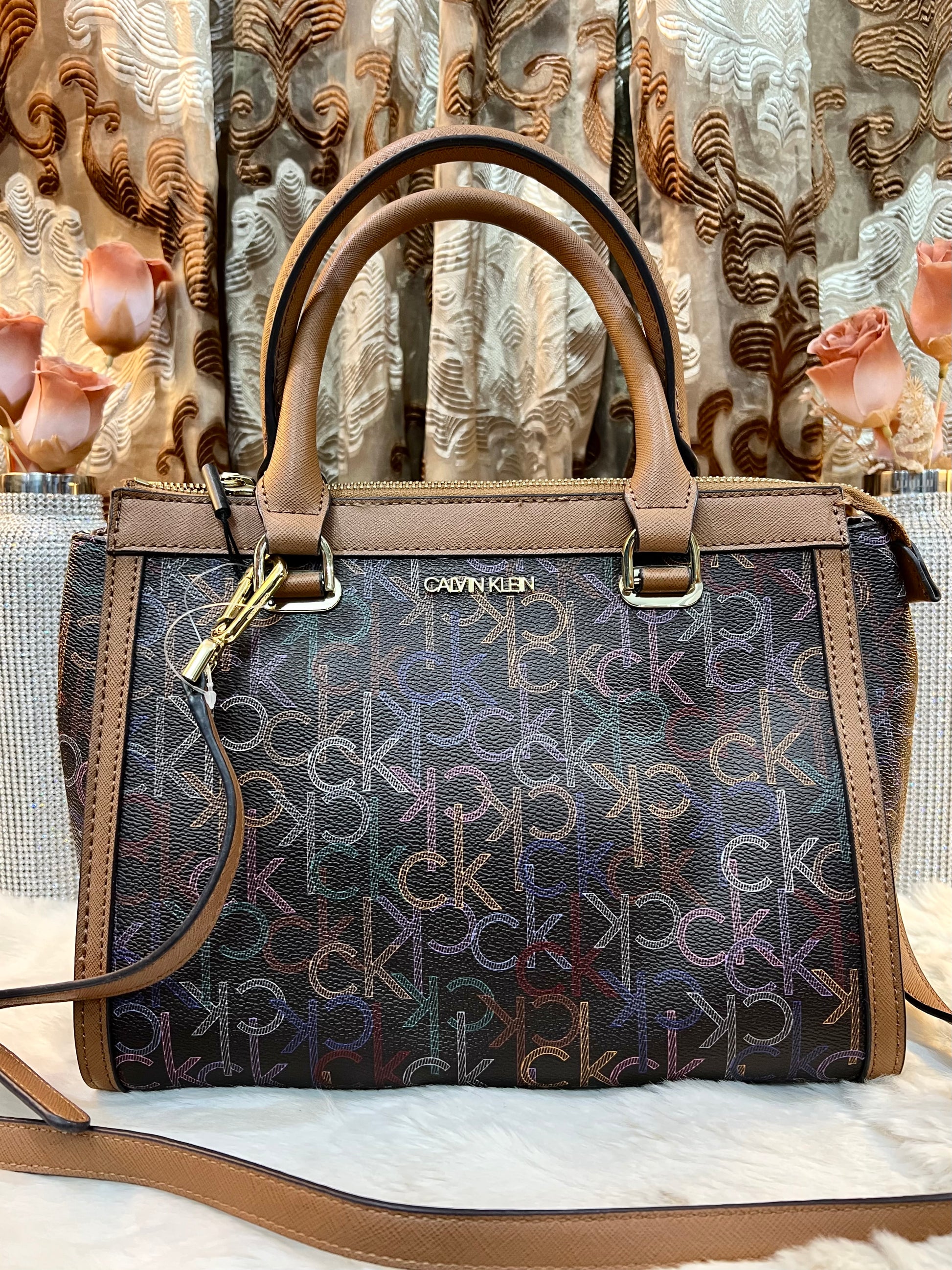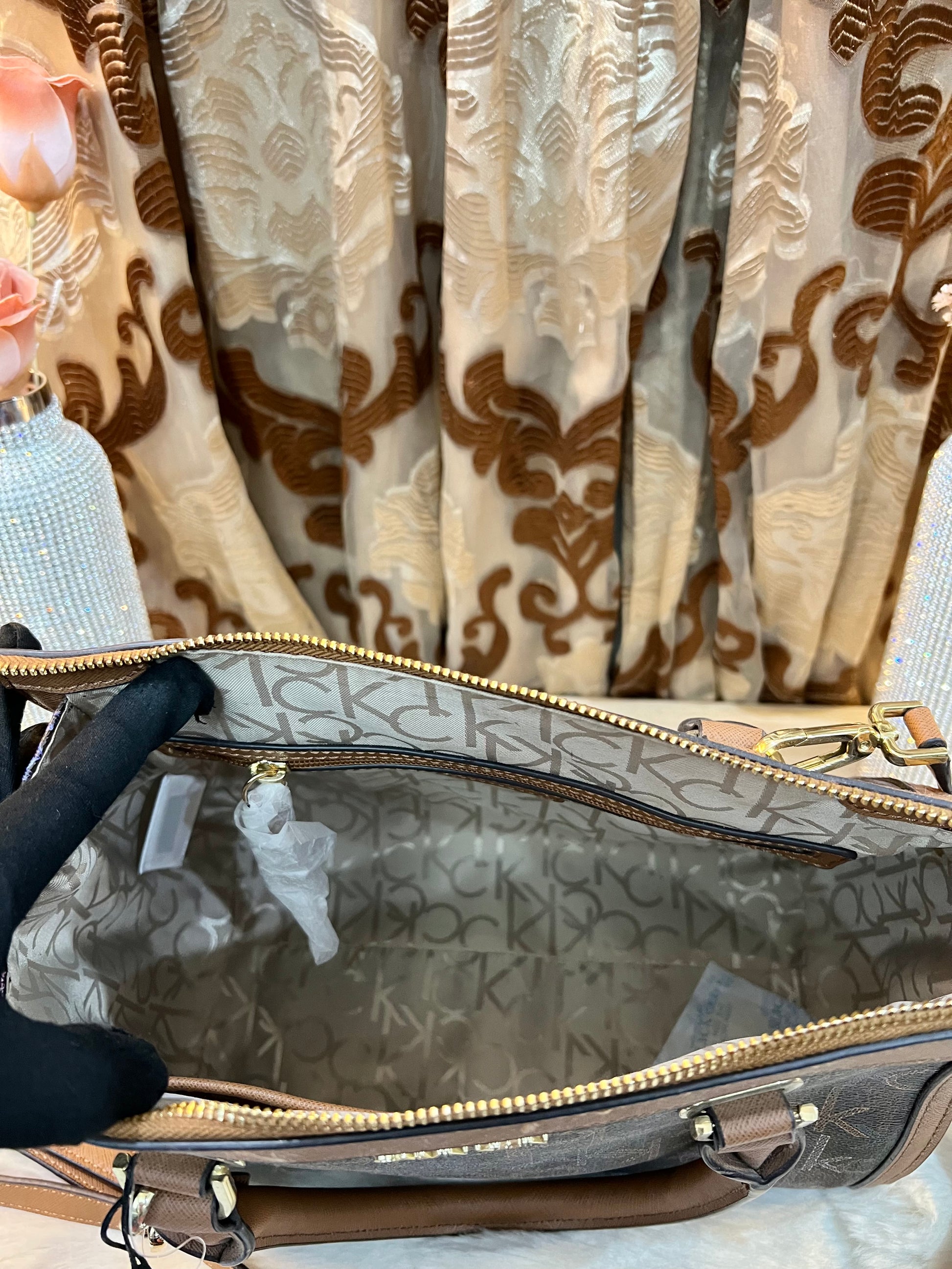 CALVIN KLEIN BUNDLE BAG & LONG WALLET JANAE SATCHEL CROSSBODY BAG IN SIGNATURE BROWN