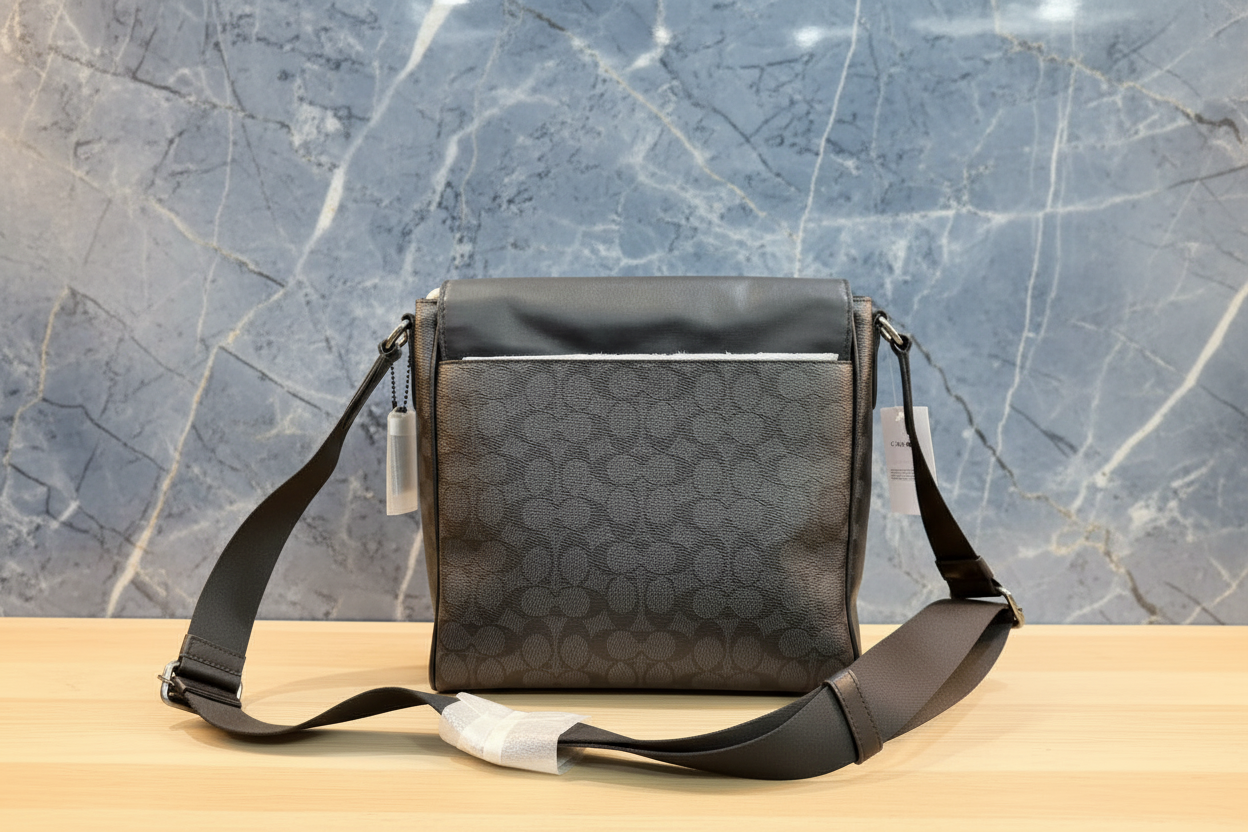 COACH HOUSTON MAP CROSSBODY BAG - SIGNATURE COATED CANVAS & REFINED CALF LEATHER