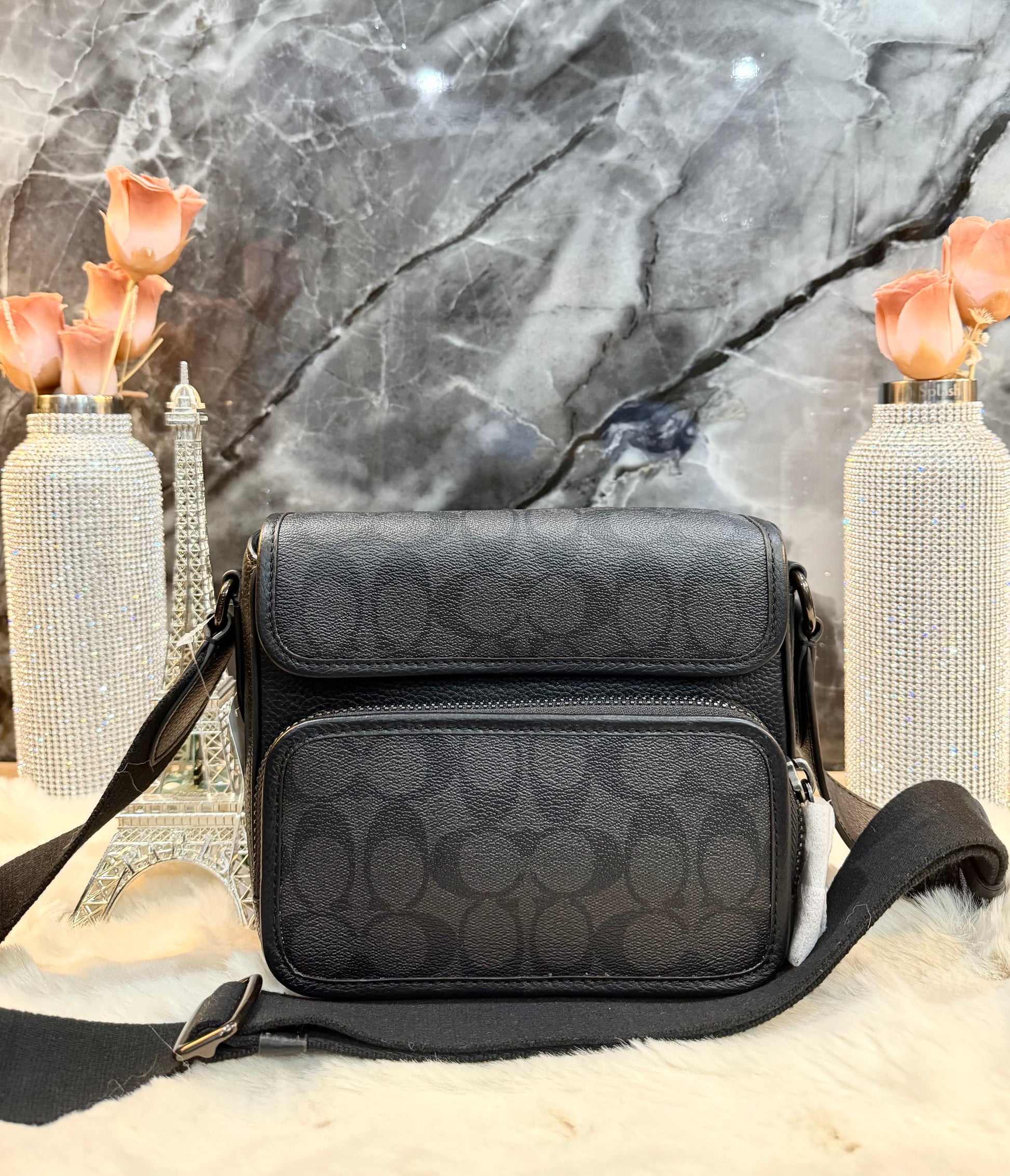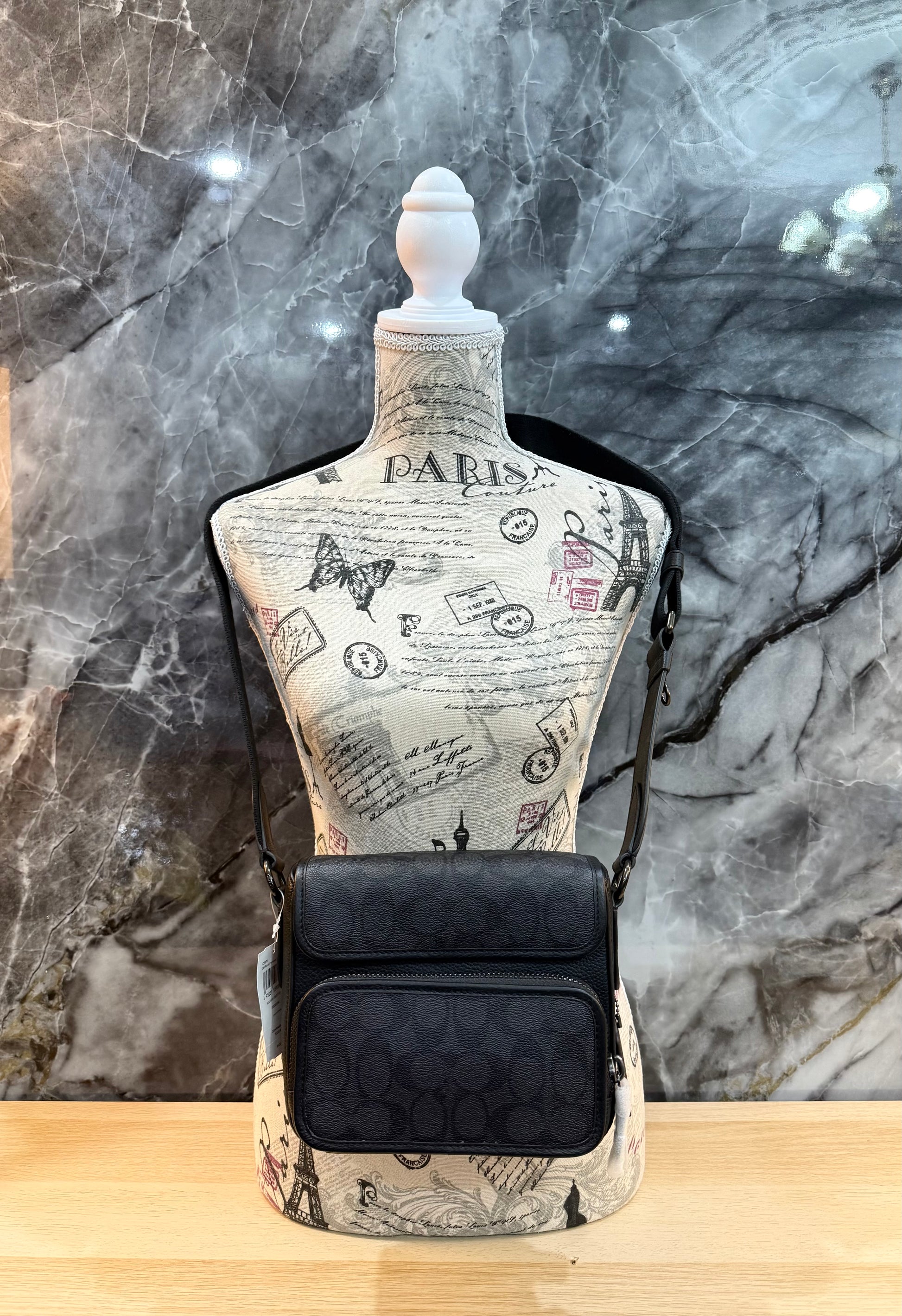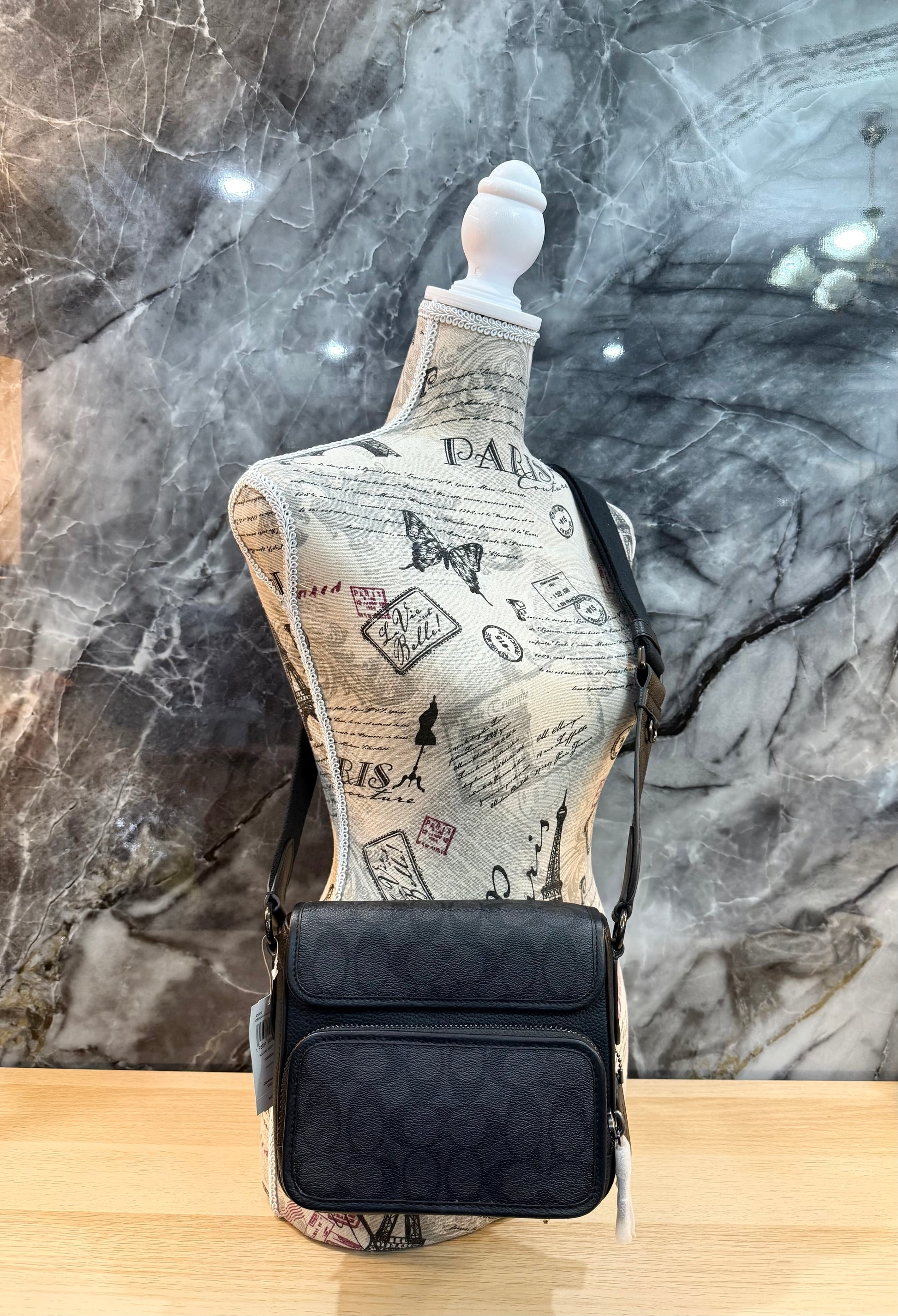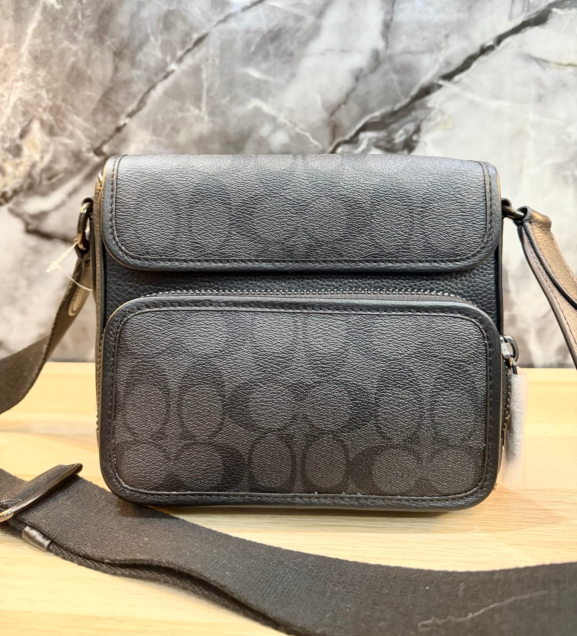 COACH SULLIVAN FLAP CROSSBODY - SIGNATURE CANVAS/CHARCOAL BLACK