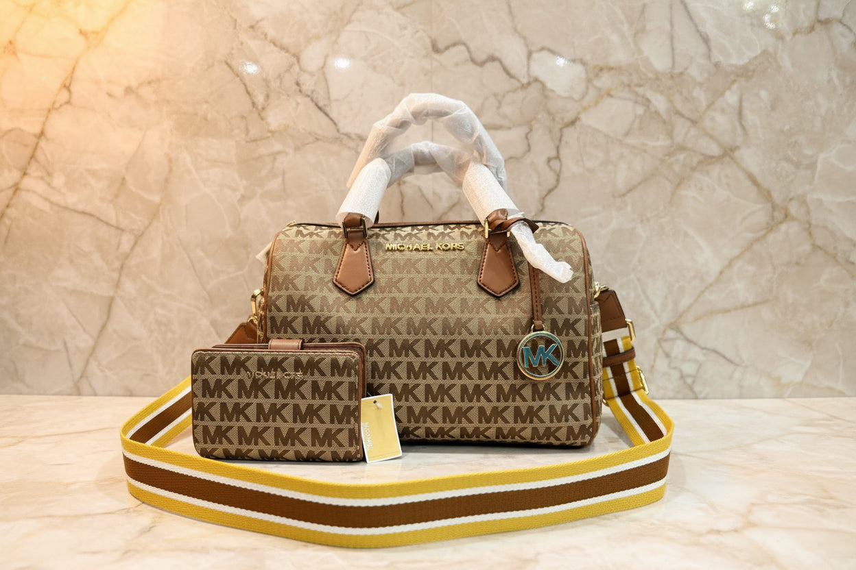 BUNDLE ‼️ MICHAEL KORS BEDFORD DUFFLE LARGE IN SIGNATURE JACQUARD & MEDIUM BIFOLD CORNER ZIP WALLETS