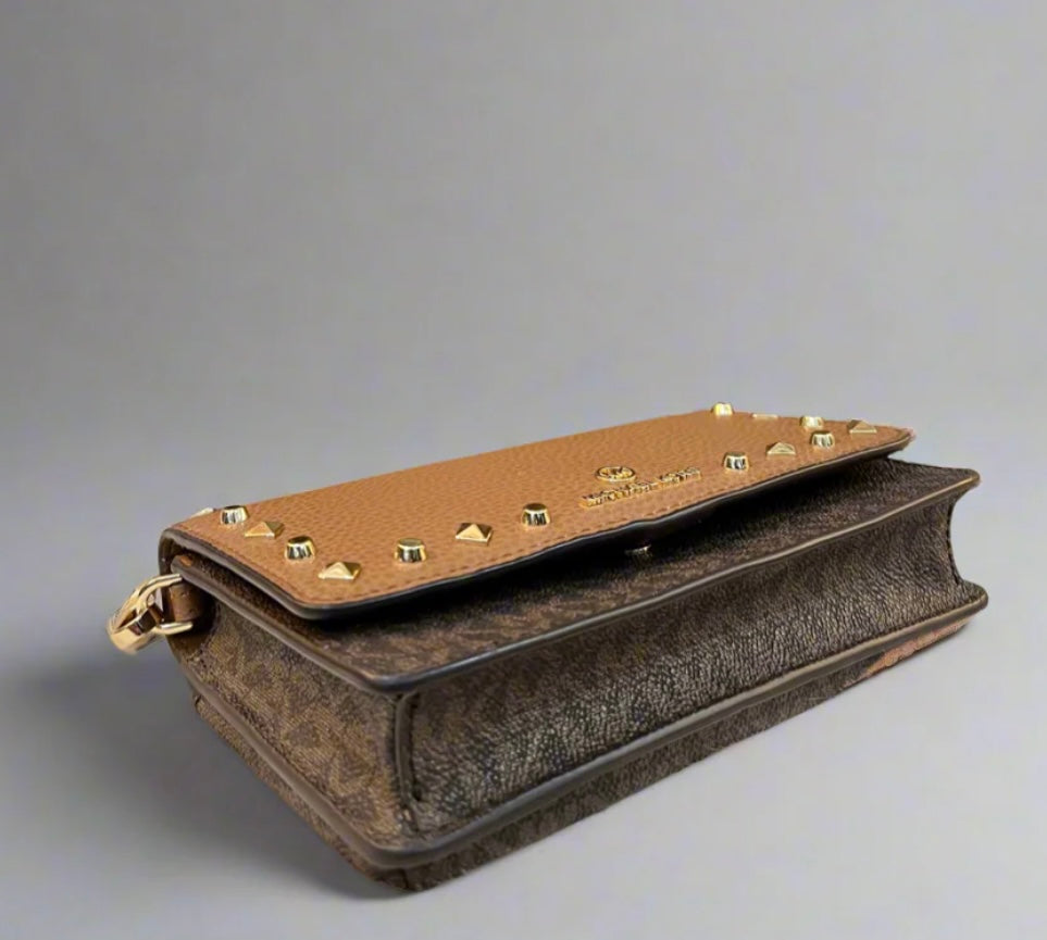 MICHAEL KORS JET SET SMALL STUDDED LOGO MOBILE CROSSBODY ( FROM BOUTIQUE STORE )
