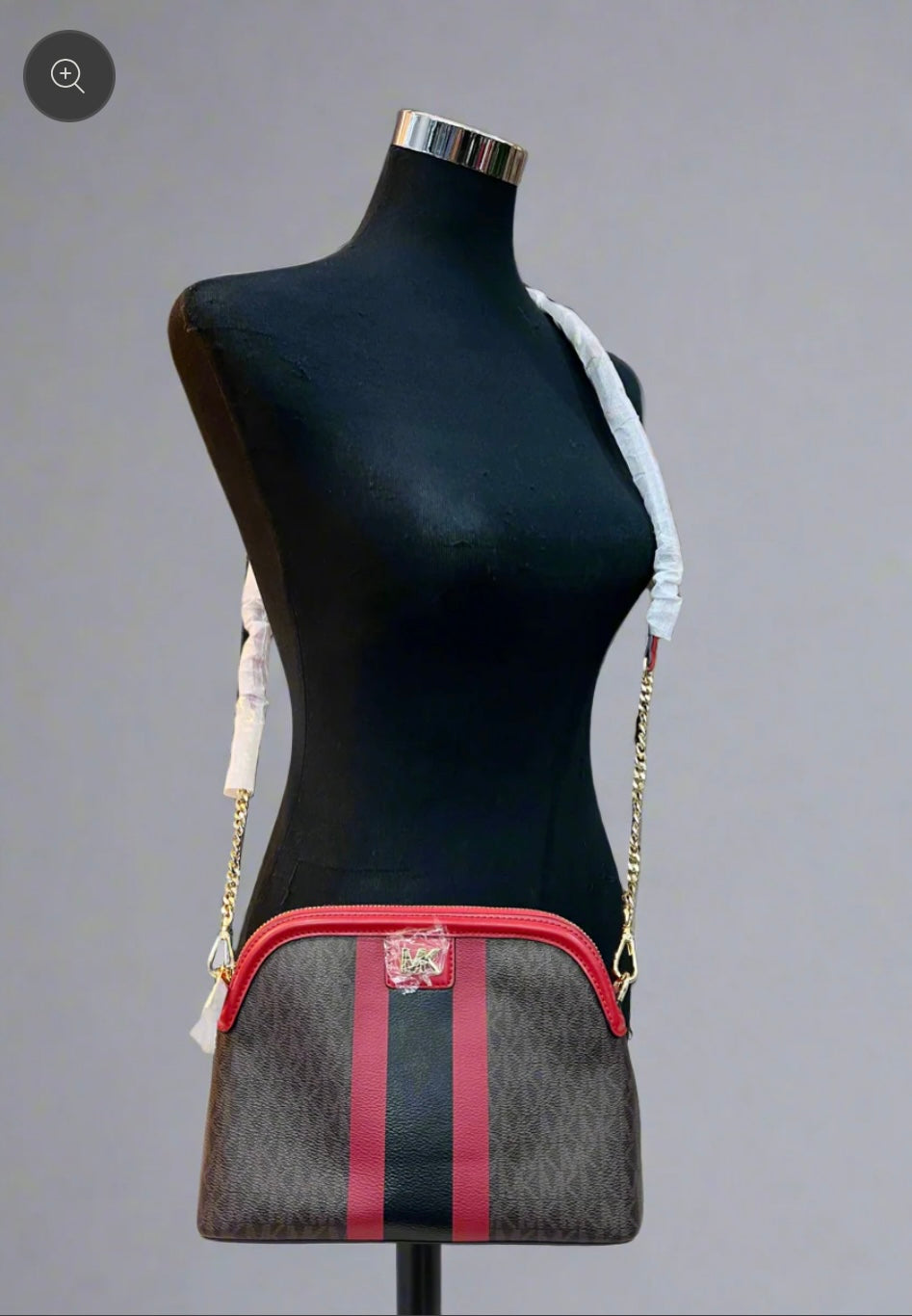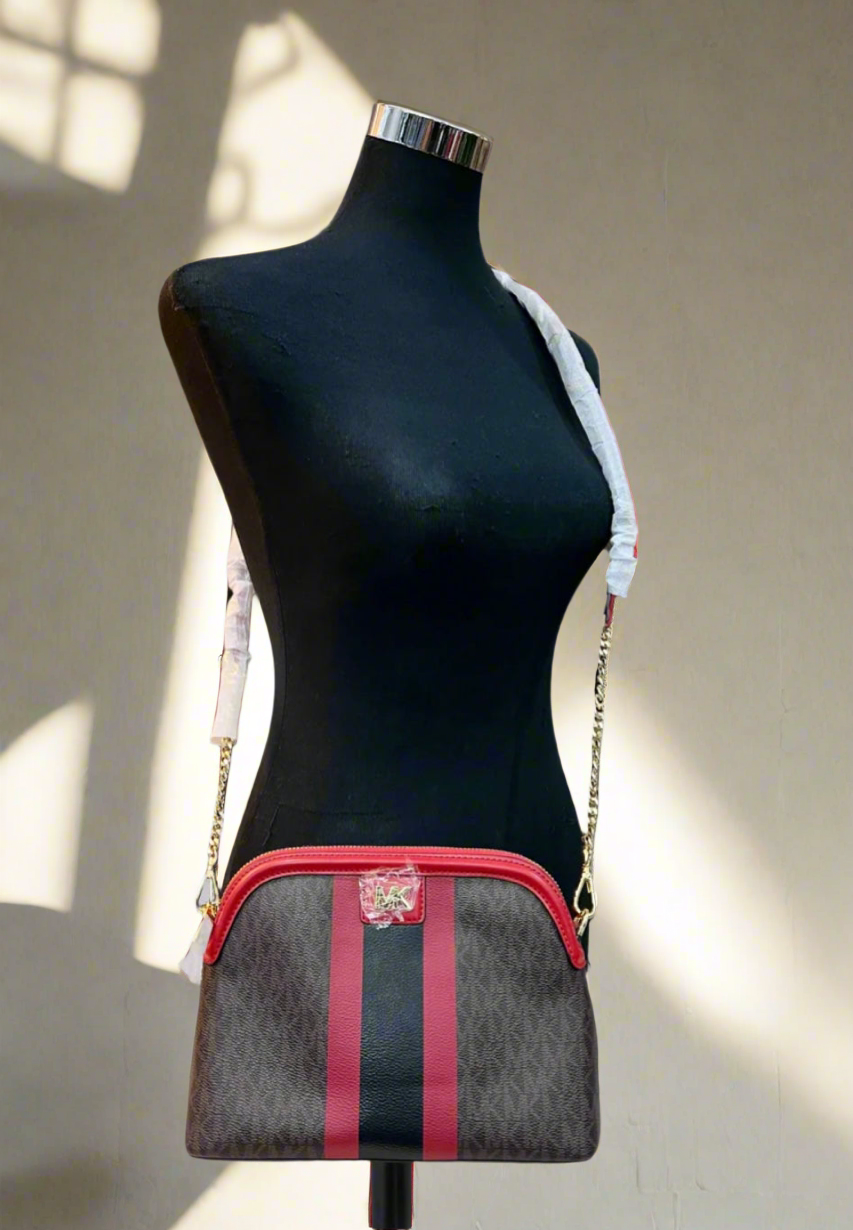MICHAEL KORS DOME LOGO CENTER STRIPE CHAIN CROSSBODY