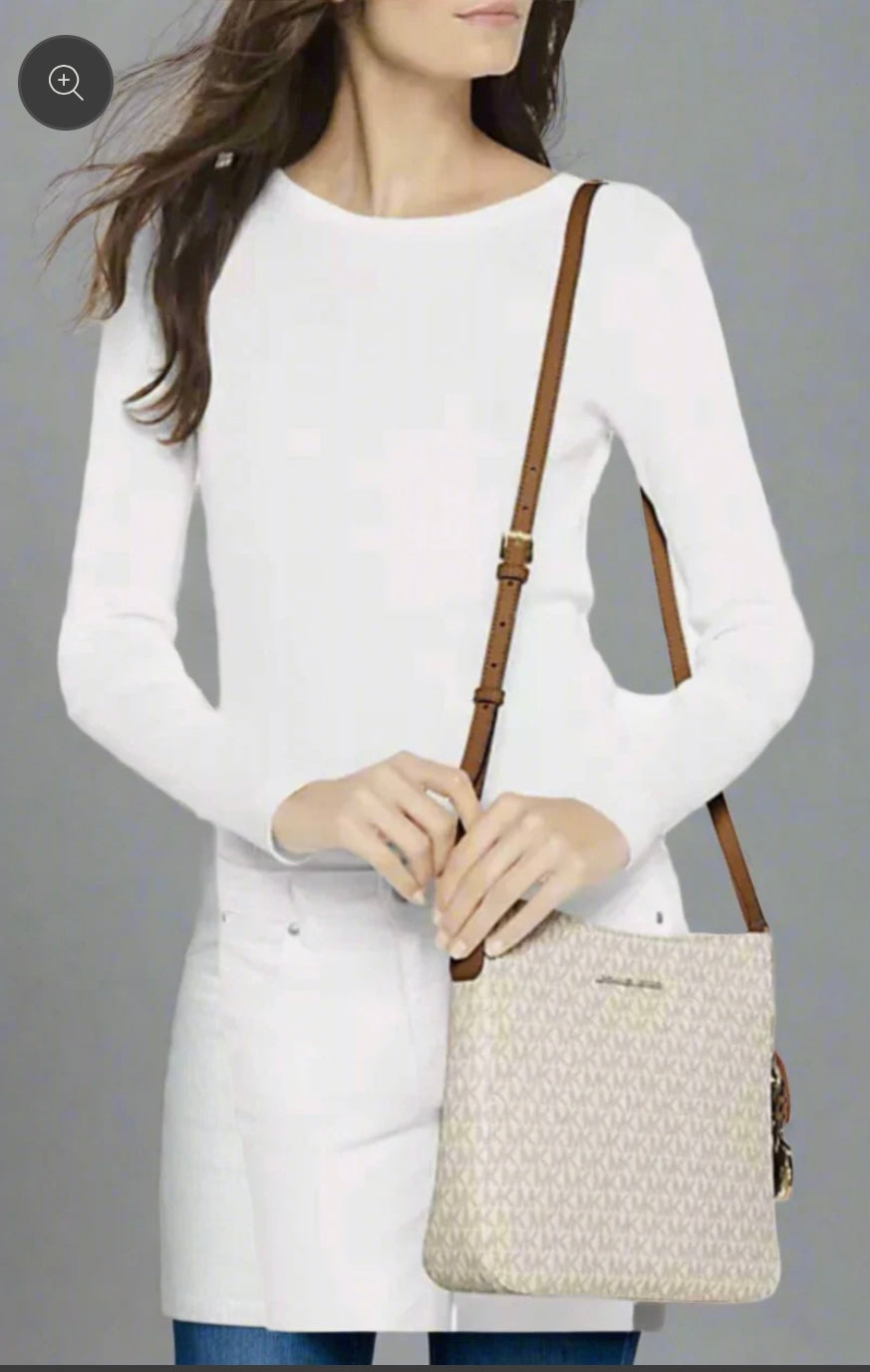 MICHAEL KORS JET SET TRAVEL LARGE MESSENGER LOGO VANILLA